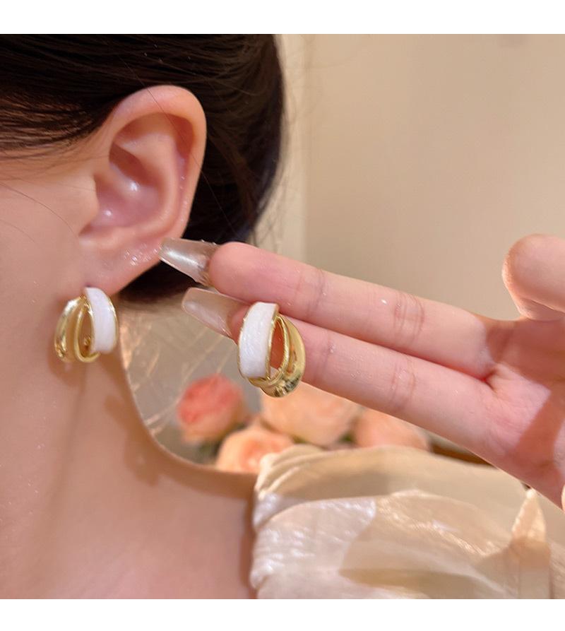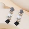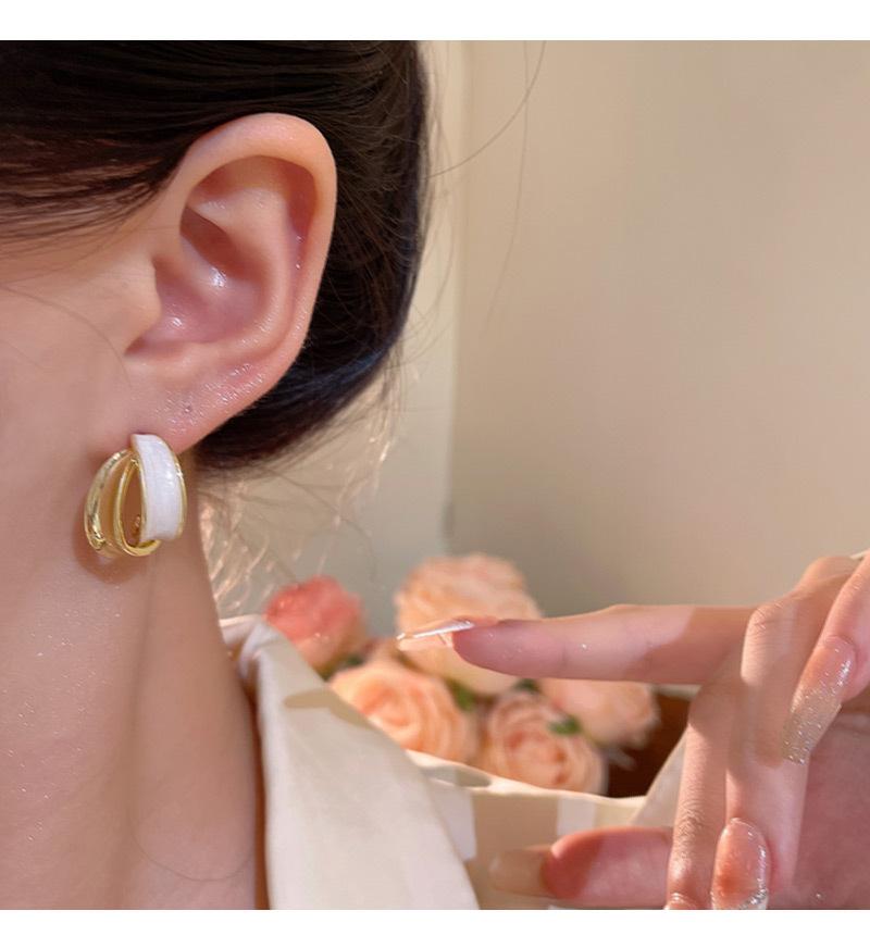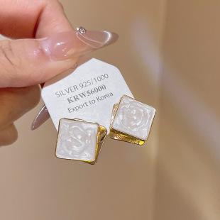 Aretes cuadrados retro franceses de doble capa de esmalte con gota de aceite 2025 nuevos aretes de alta gama para mujer aretes de lujo ligero que combinan con todo