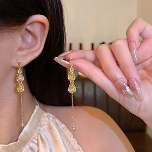 Aretes coreanos exquisitos de diamantes en forma de gota de agua con borla larga para mujer, diseño de nicho, personalidad única, aretes de alta gama