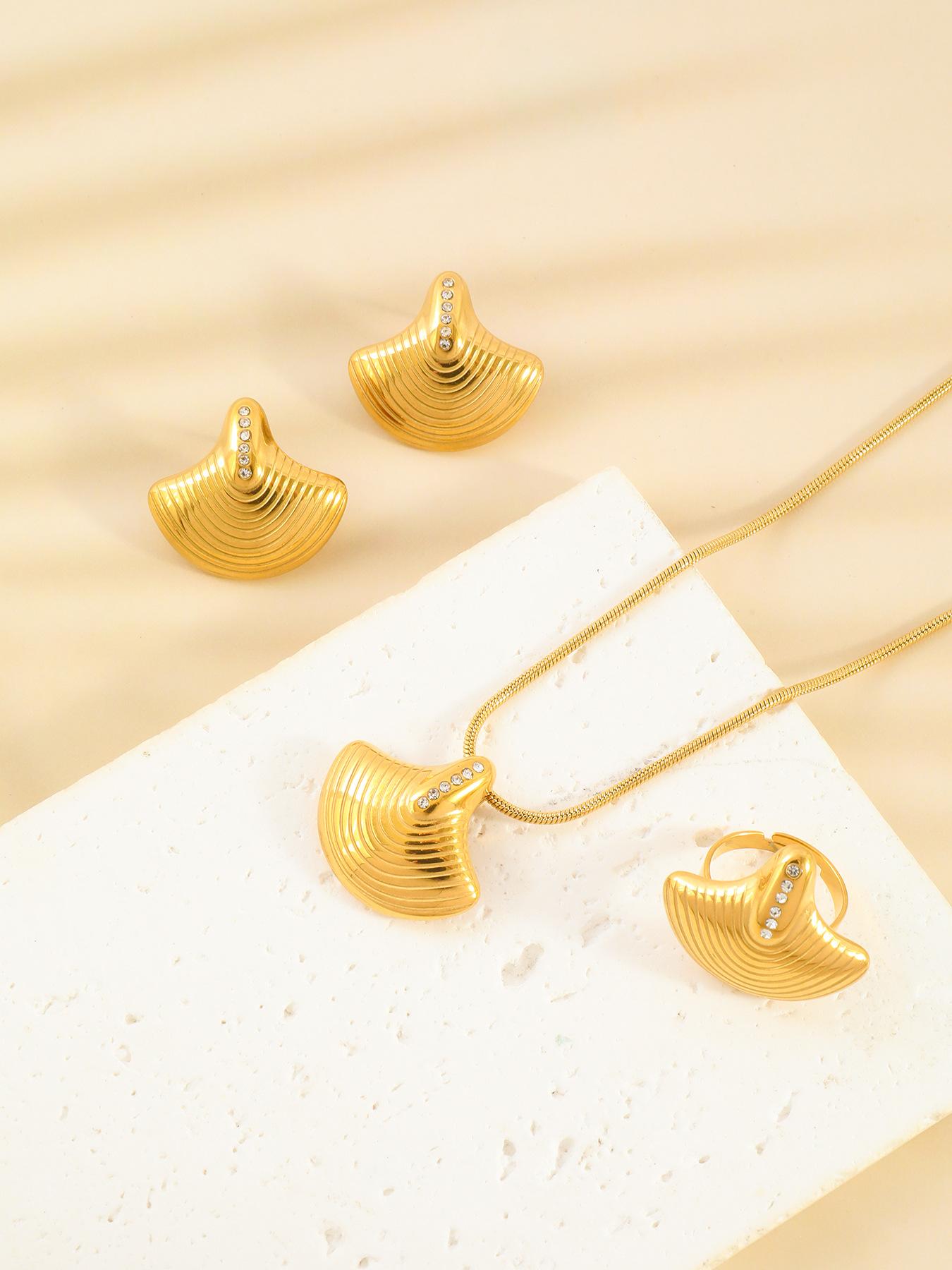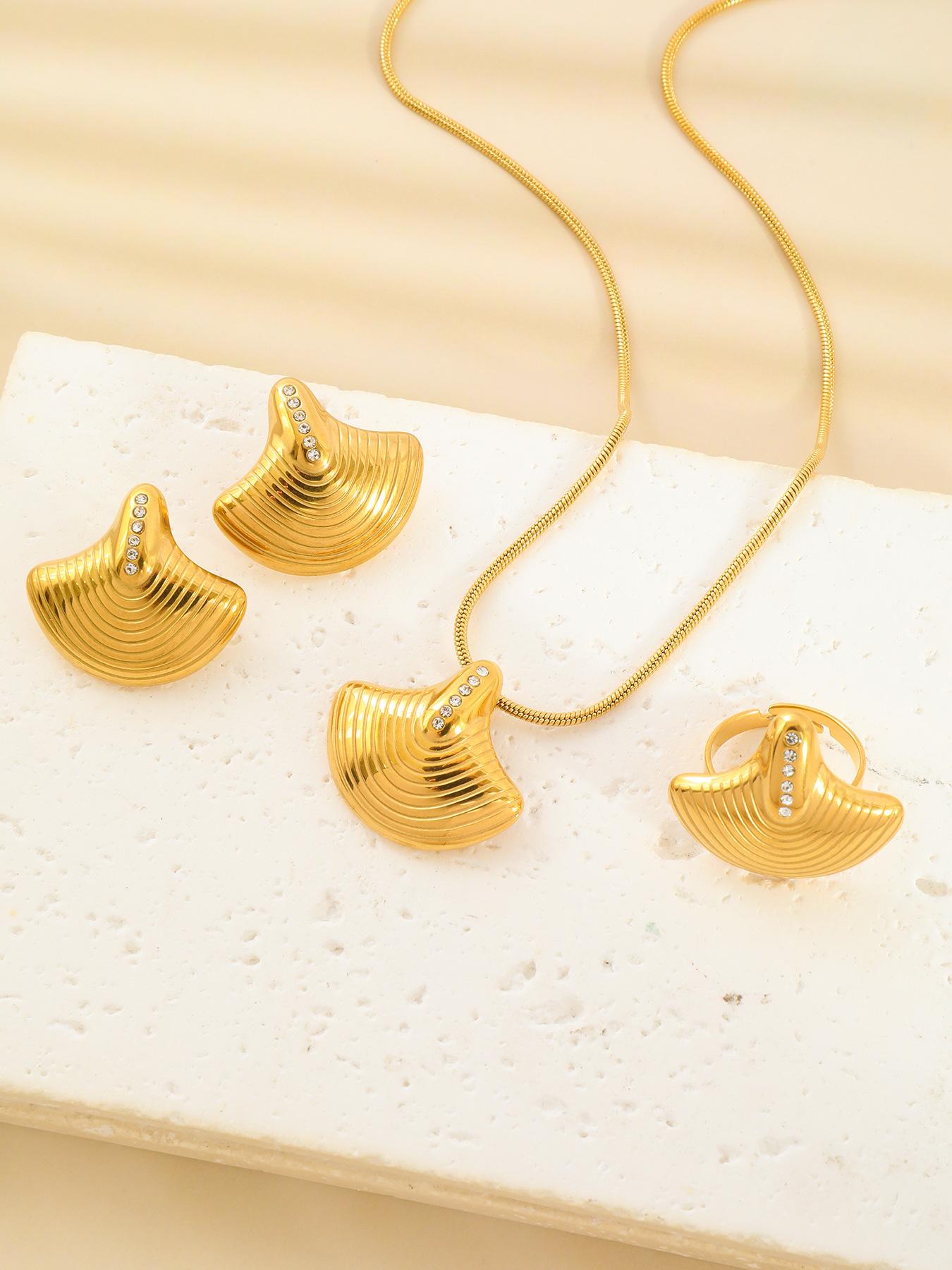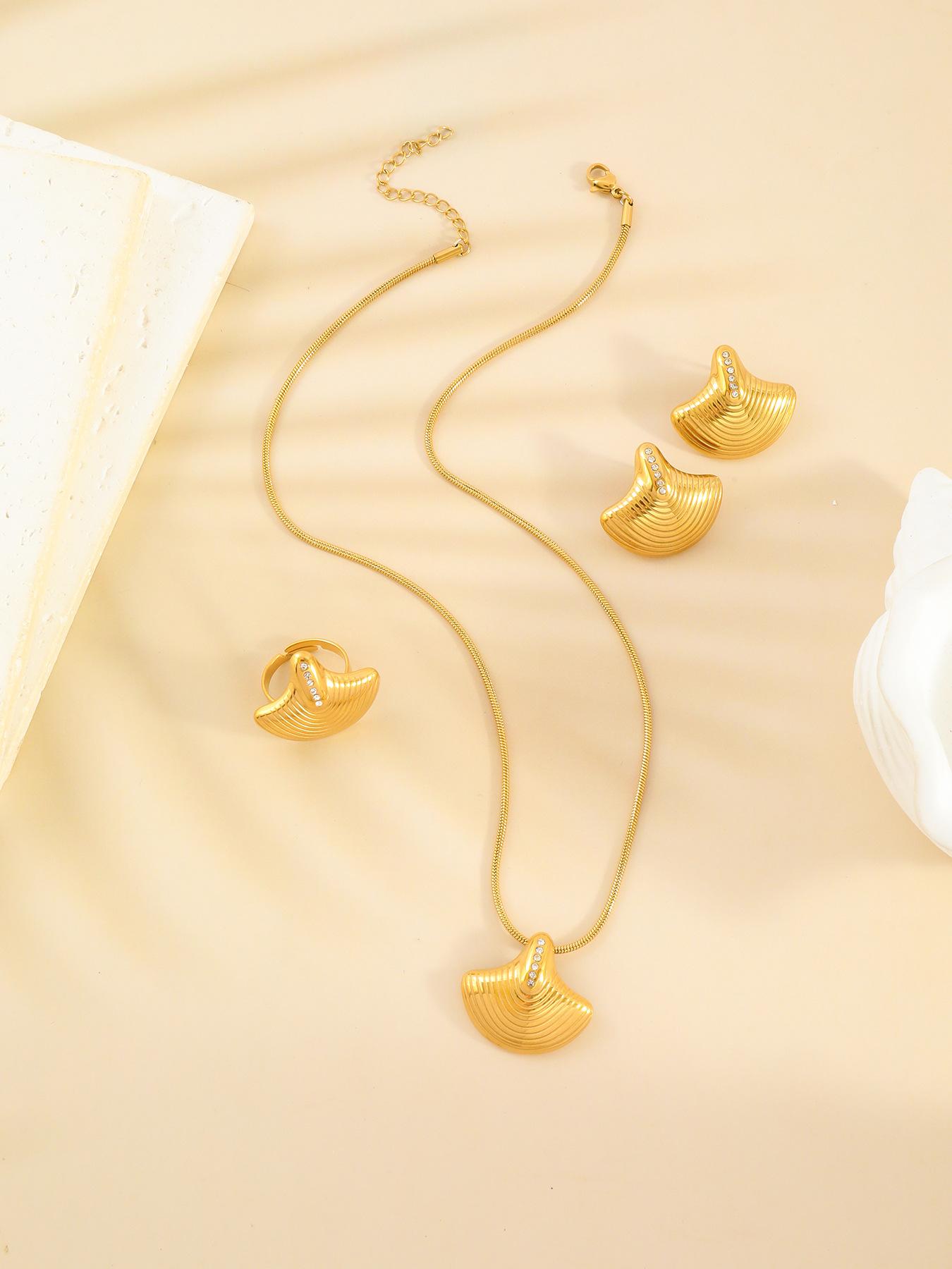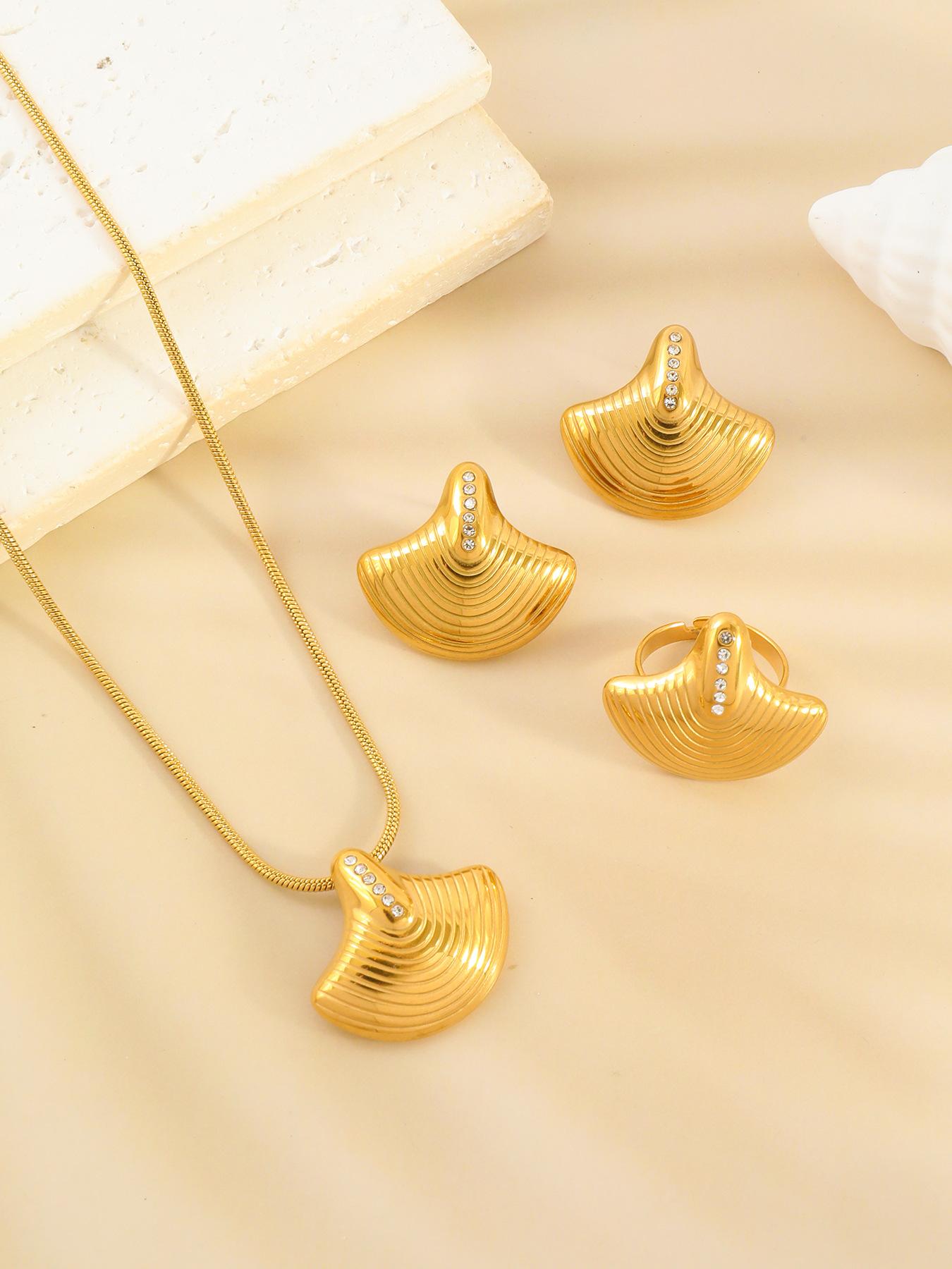 Diseño en Espiral Europeo y Americano Transfronterizo Moda Ins Collar Aretes Anillo Acero Inoxidable Juego de Tres Piezas Venta al por Mayor