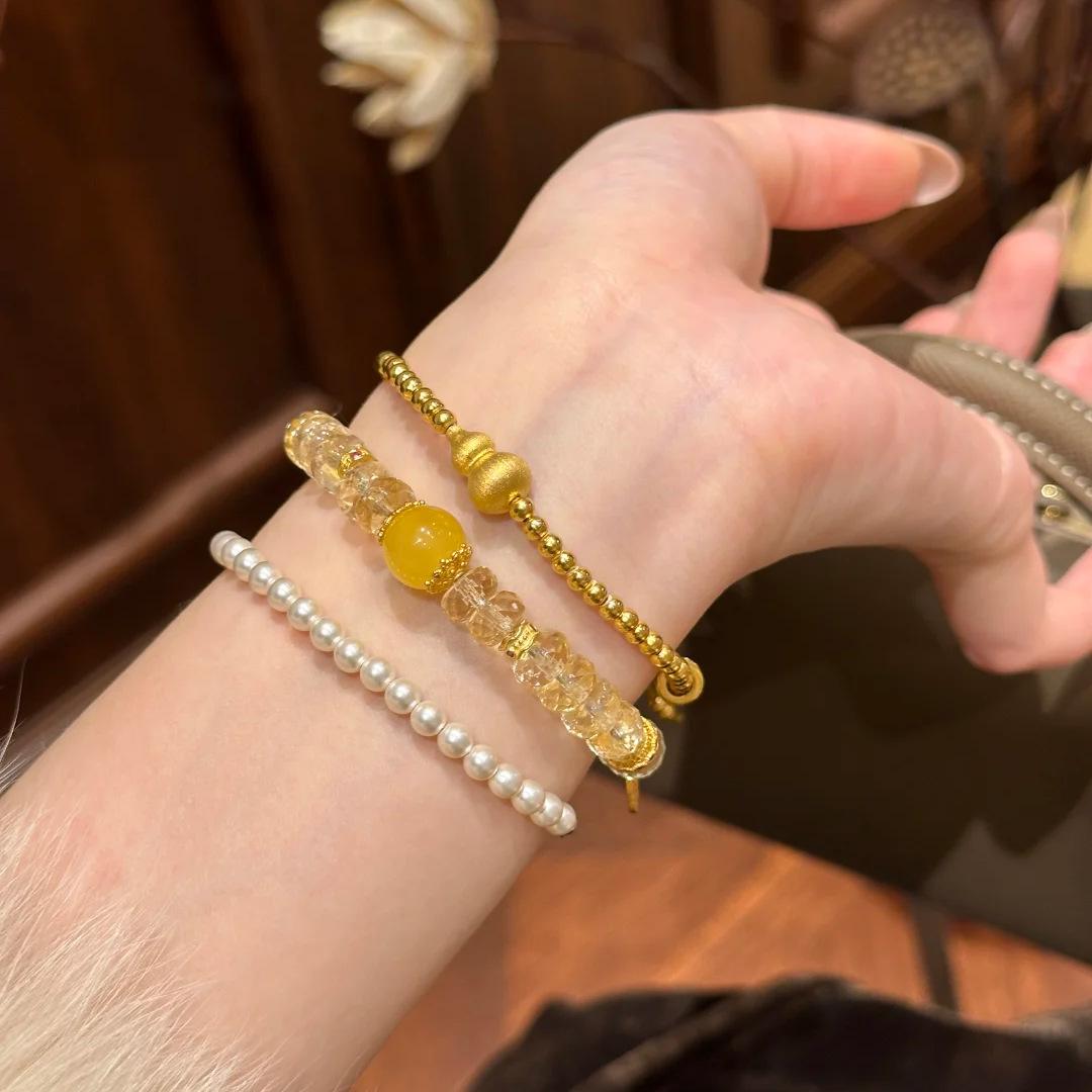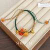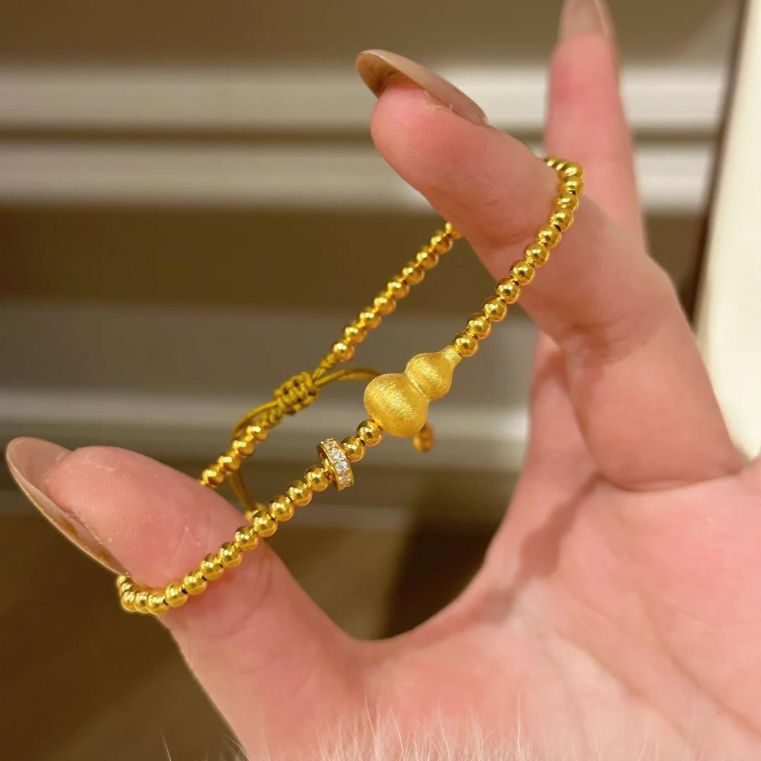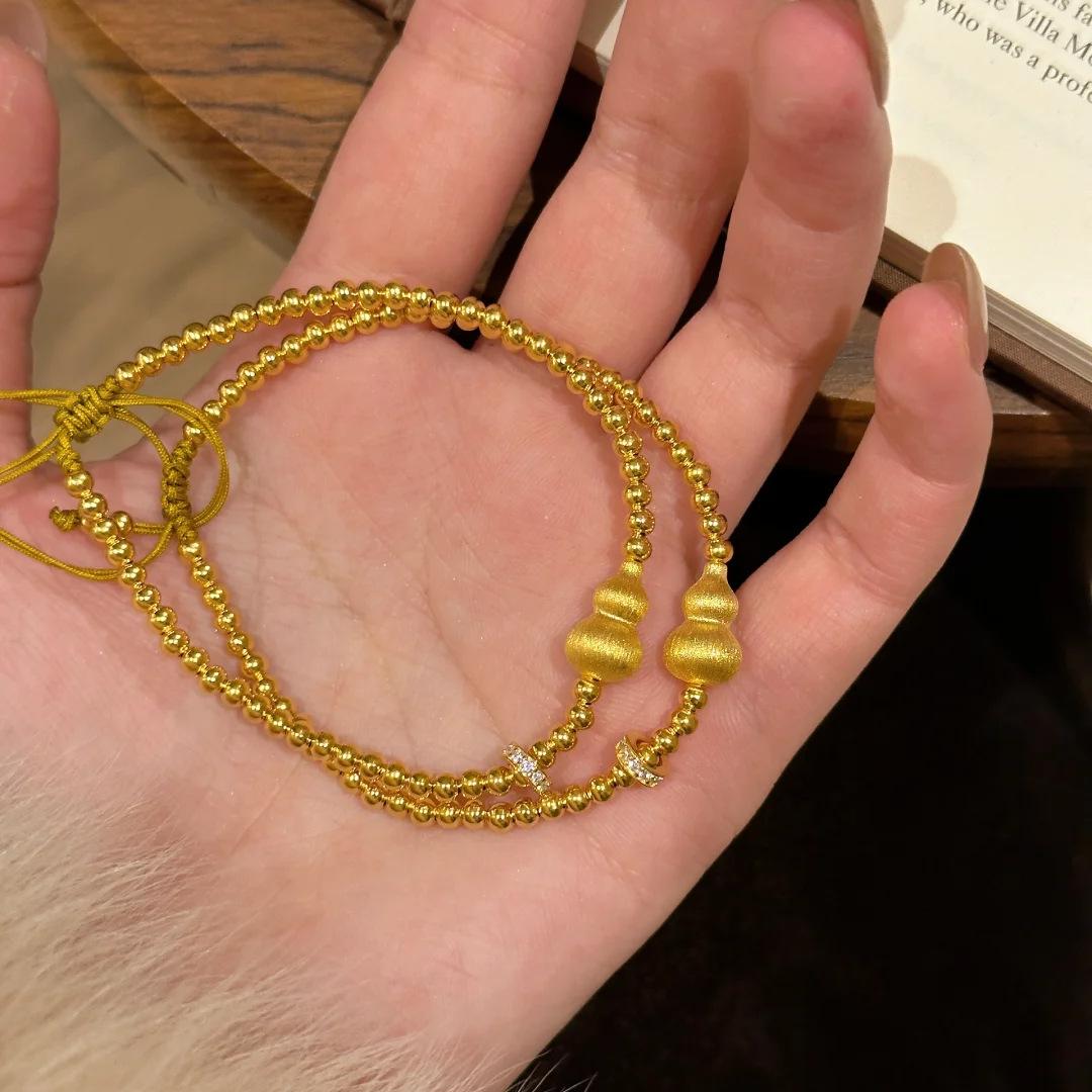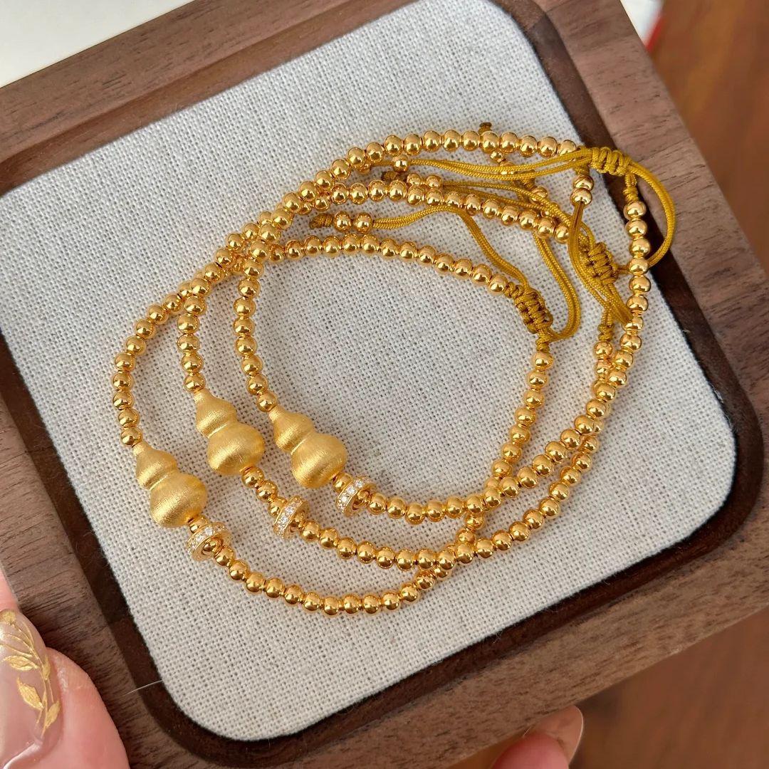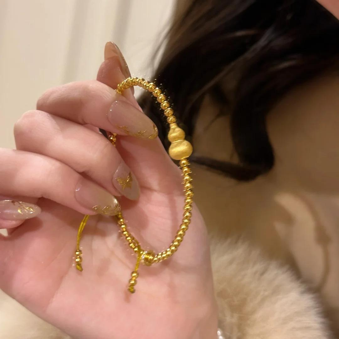 Pulsera de Calabaza Cepillada de Estilo Nacional Chino Nuevo Pulsera de Cuerda Tejida a Mano de Alta Gama con Cuentas de Luz Pulsera Ajustable de Tirar Pulsera para Mujer