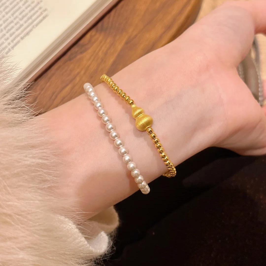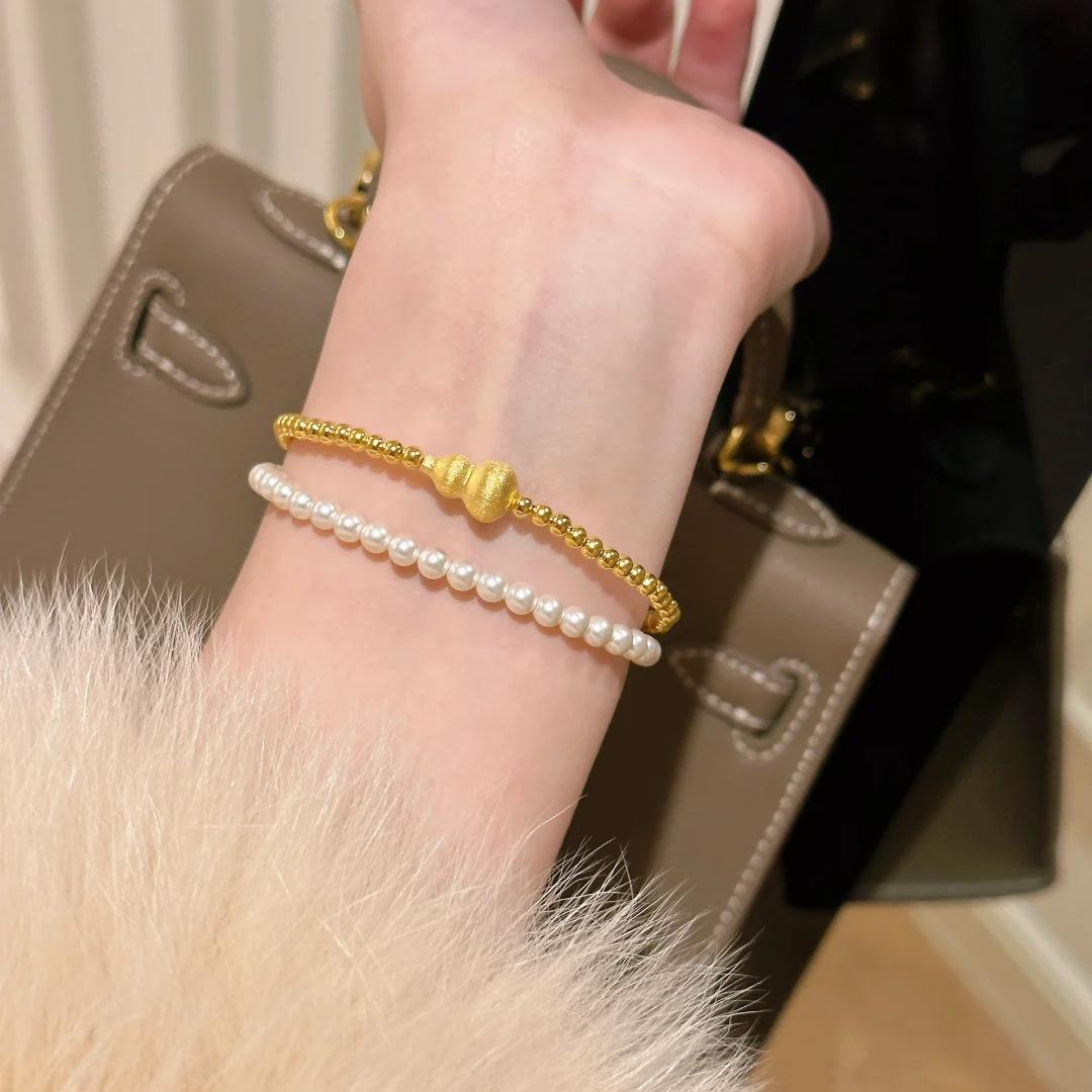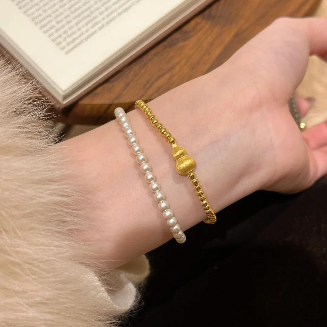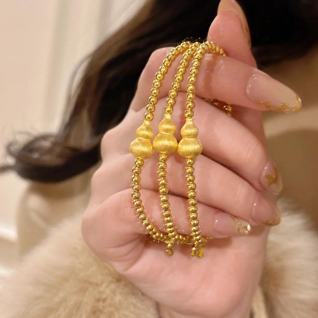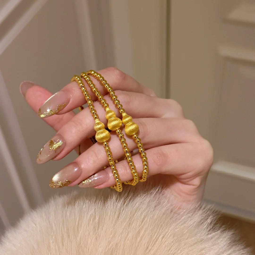 Pulsera de Calabaza Cepillada de Estilo Nacional Chino Nuevo Pulsera de Cuerda Tejida a Mano de Alta Gama con Cuentas de Luz Pulsera Ajustable de Tirar Pulsera para Mujer