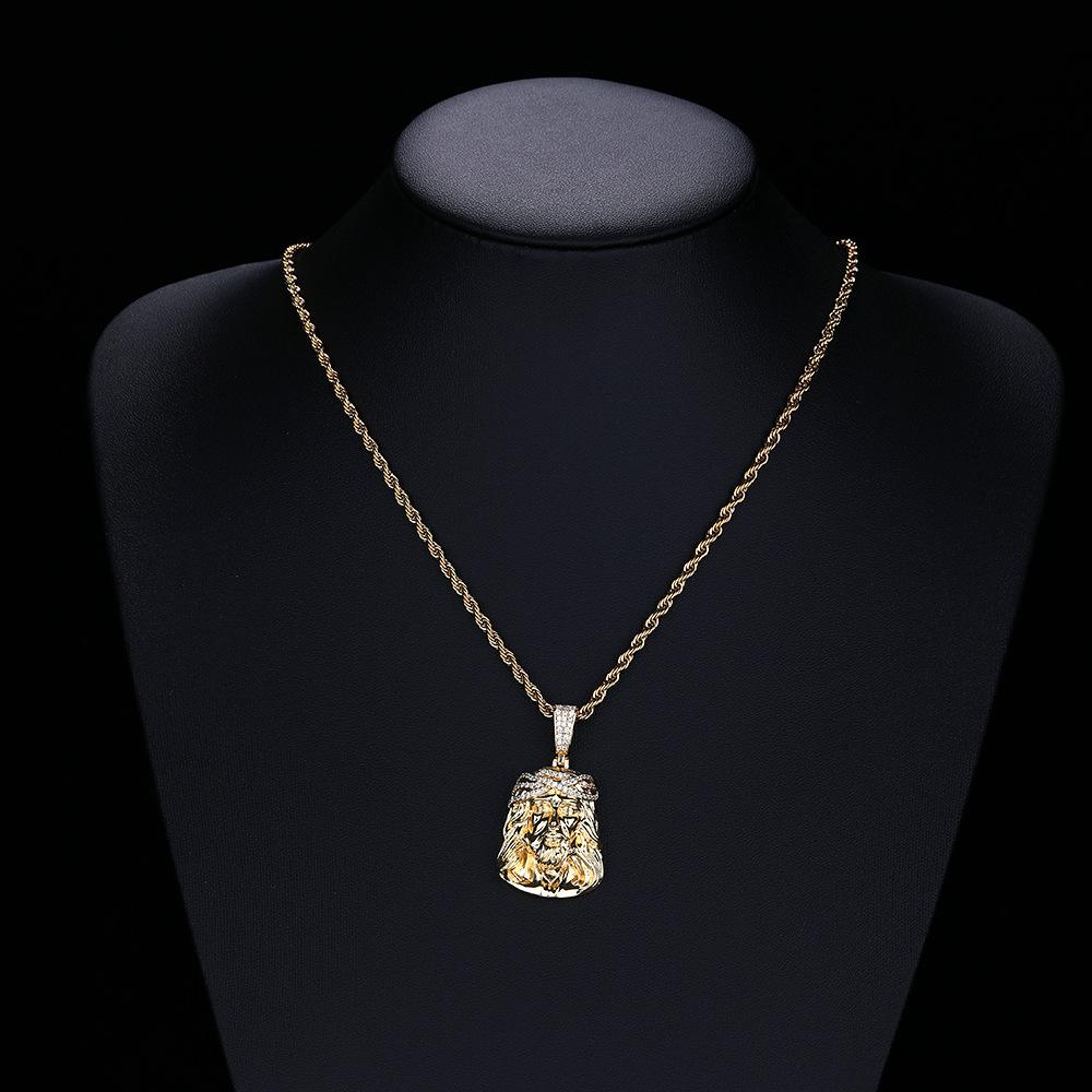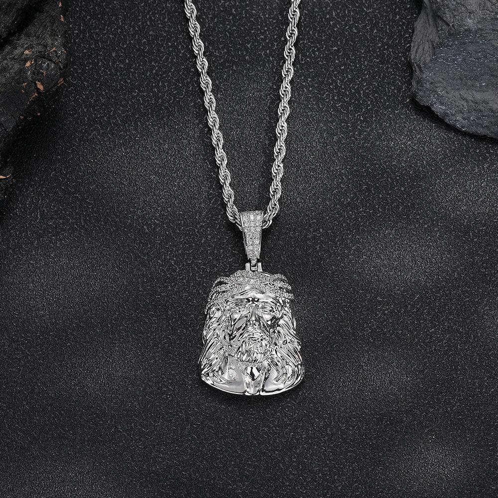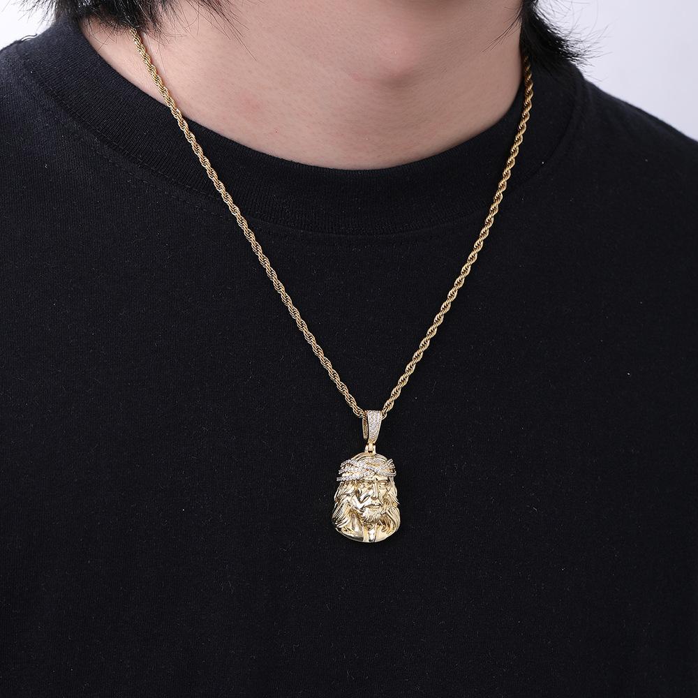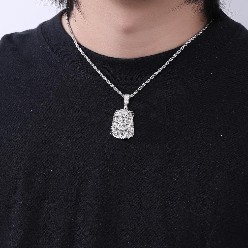 Collar Europeo y Americano para Hombre Retro Transfronterizo Colgante Cabeza Humana Colgante de Circonita Micropavé Mini Joyería Hip Hop