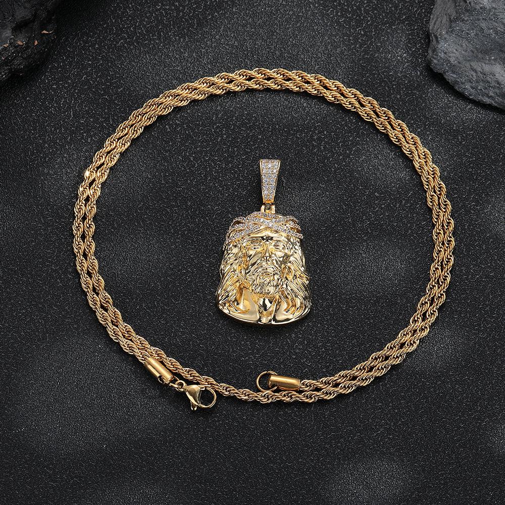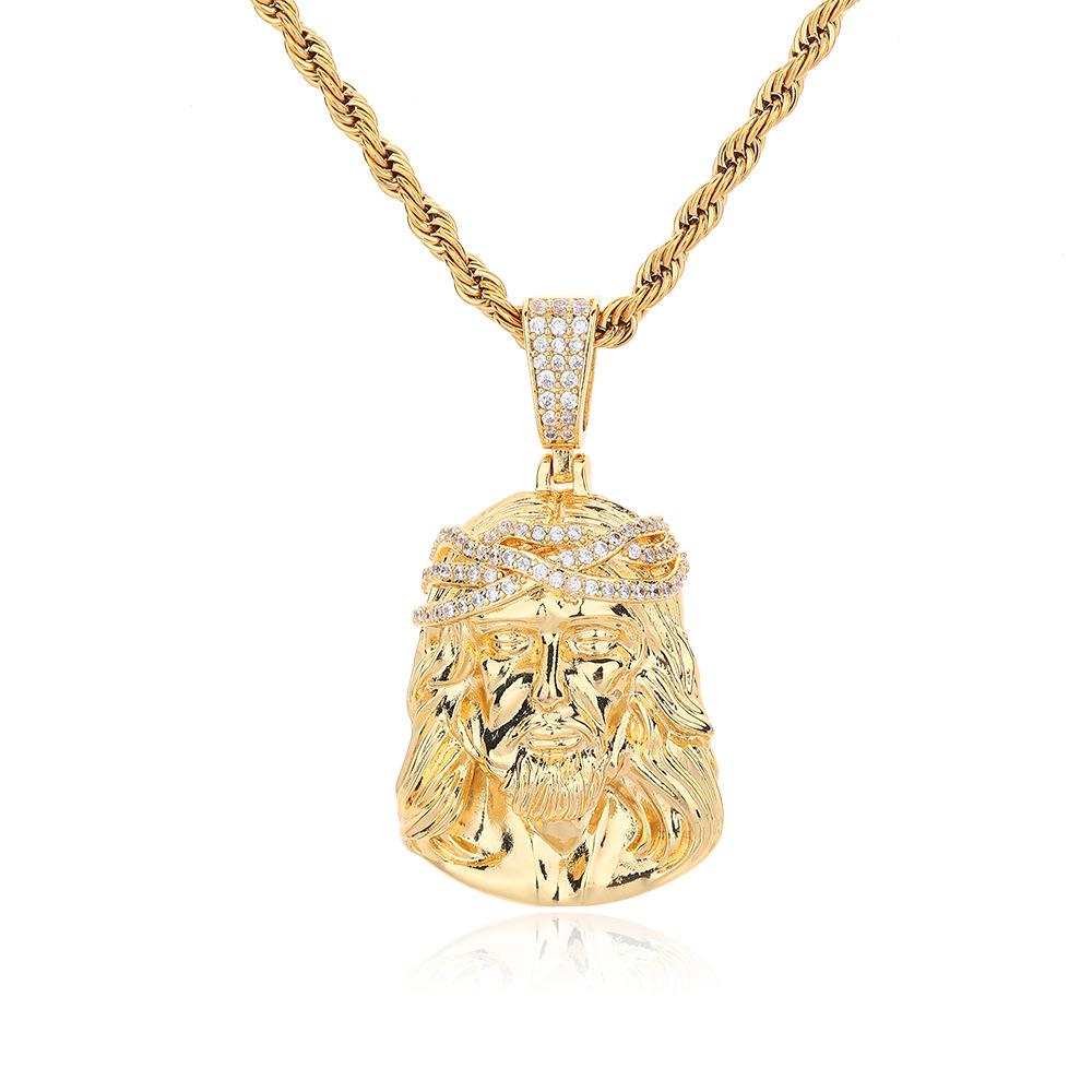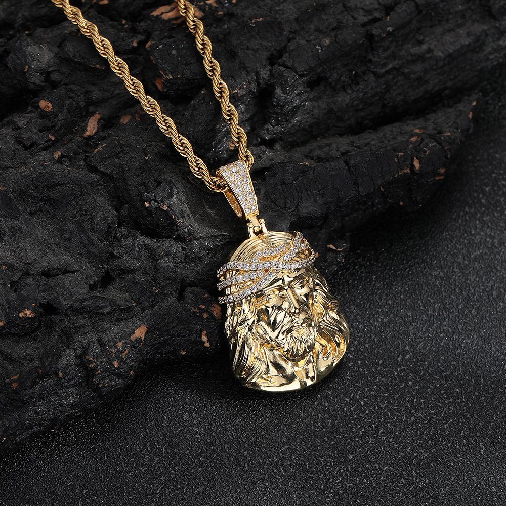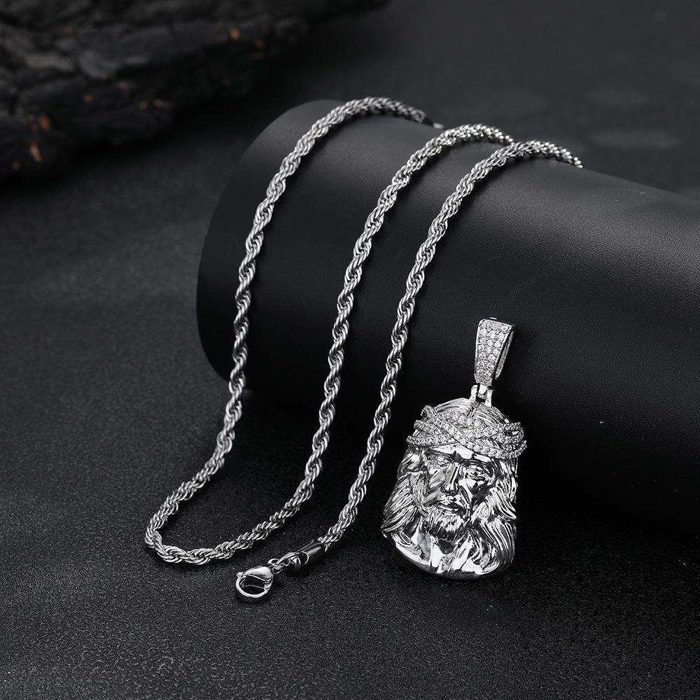 Collar Europeo y Americano para Hombre Retro Transfronterizo Colgante Cabeza Humana Colgante de Circonita Micropavé Mini Joyería Hip Hop