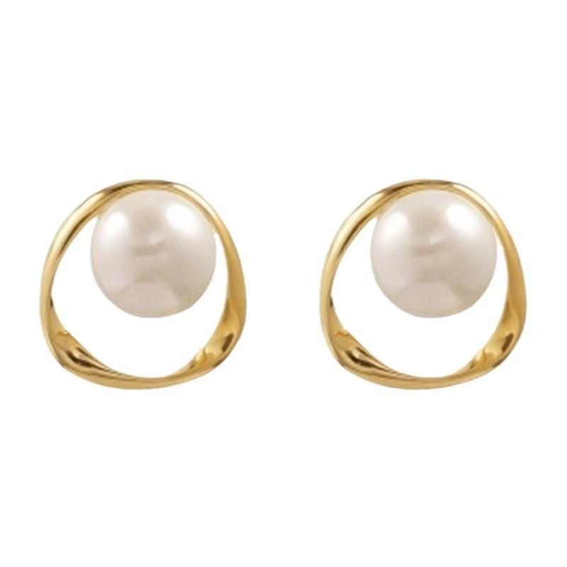 Aretes Retro de Perlas Circulares para Mujer Niche Francés Diseño de Gama Alta Aretes de Botón Temperamento Lujo Ligero Aretes de Verano Únicos