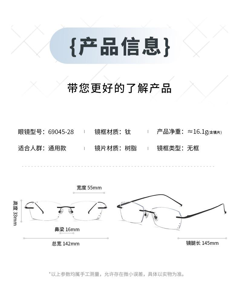 Nuevos Armazones para Lentes para Hombre sin Montura Hombres Ultraligeros Medio Titanio Armazones para Lentes para Miopía Luz Anti-Azul Negocios Casual 69045-28