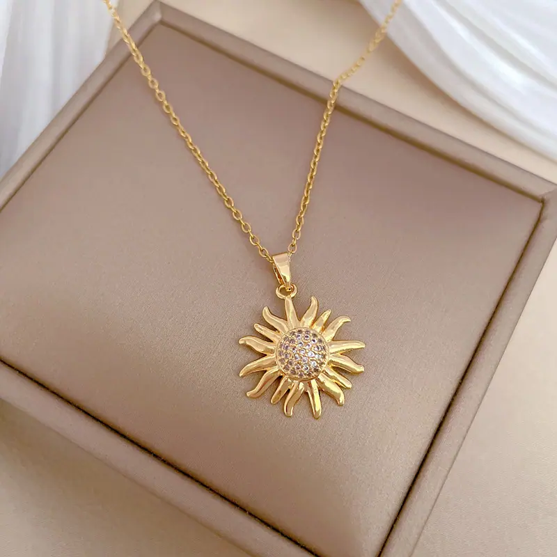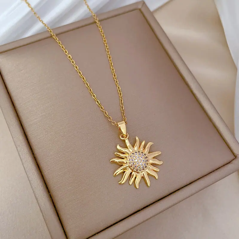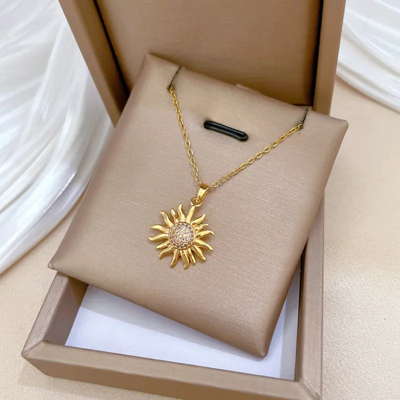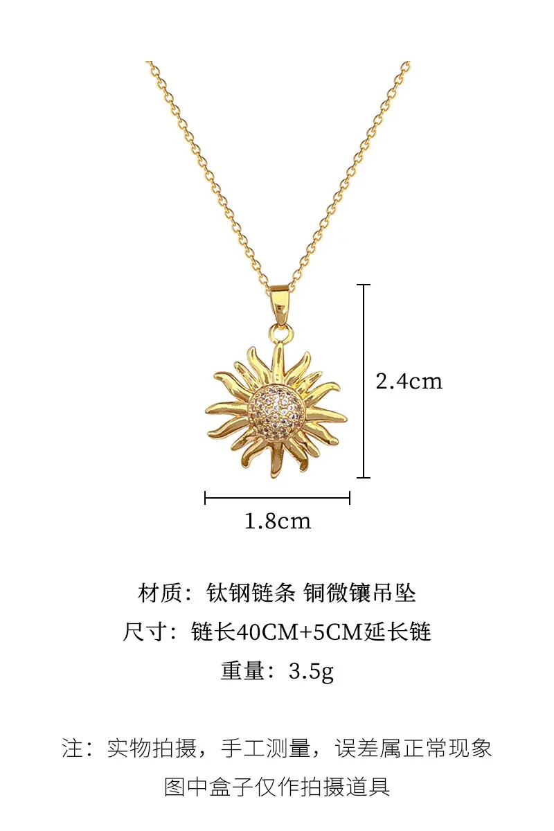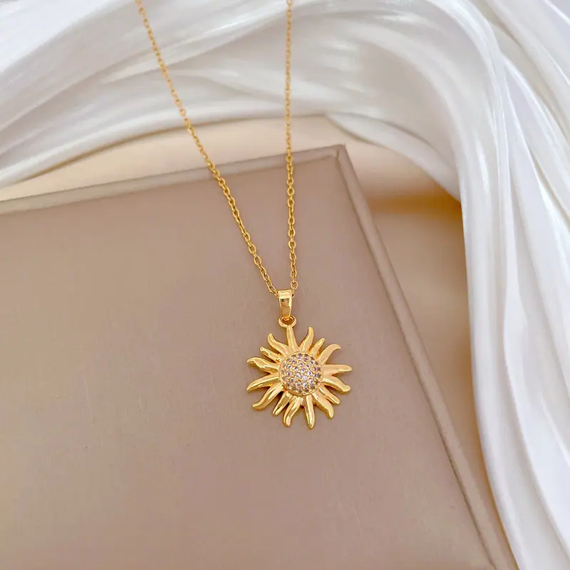 [Acero de titanio] Collar de diamantes elegante y lujoso con diseño de girasoles y cadena de clavícula para mujer, de acero de titanio.