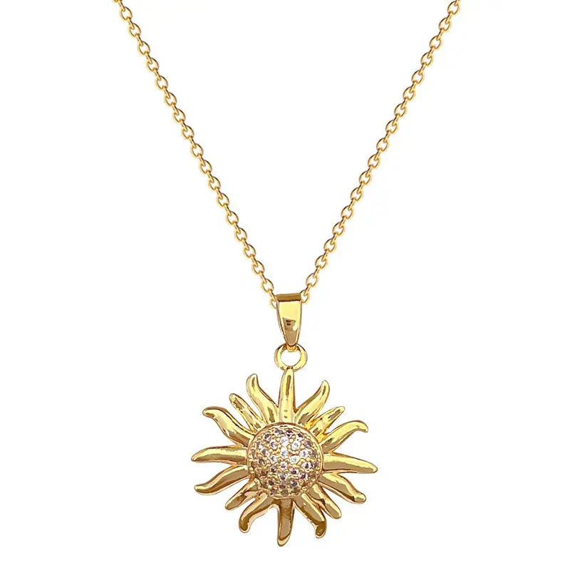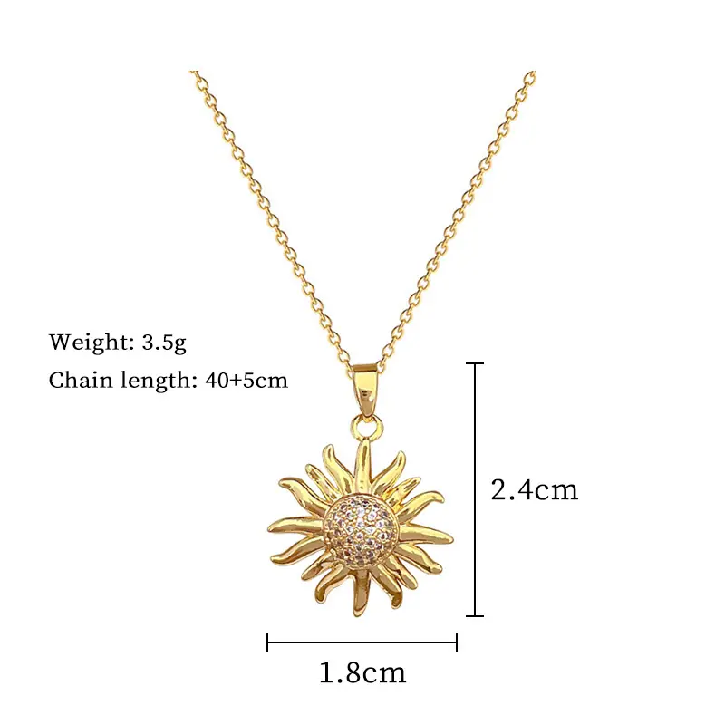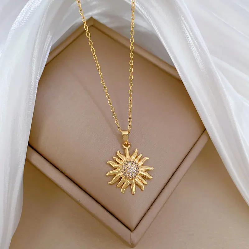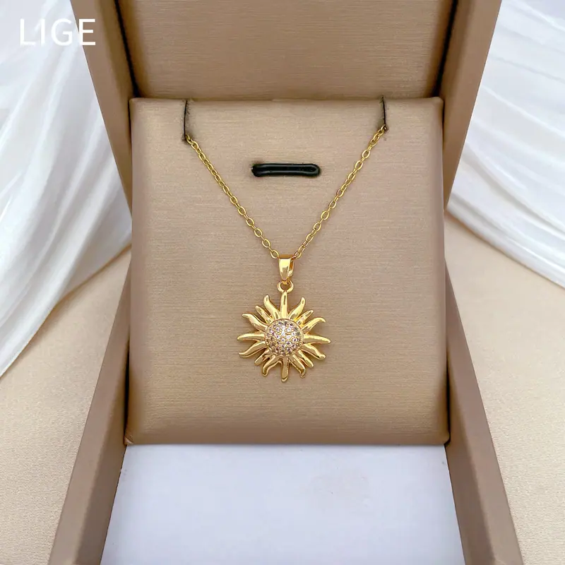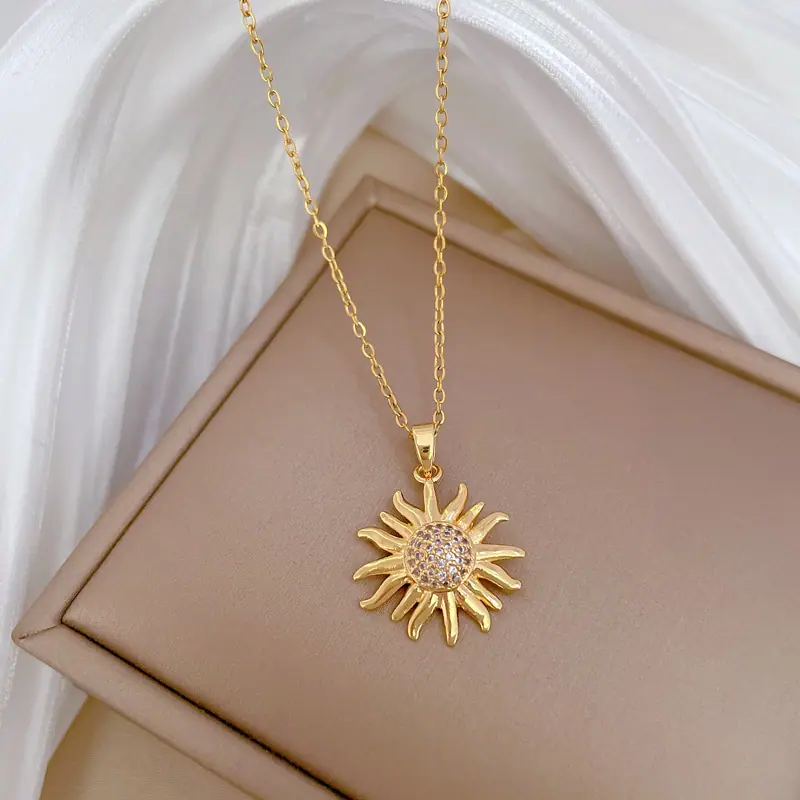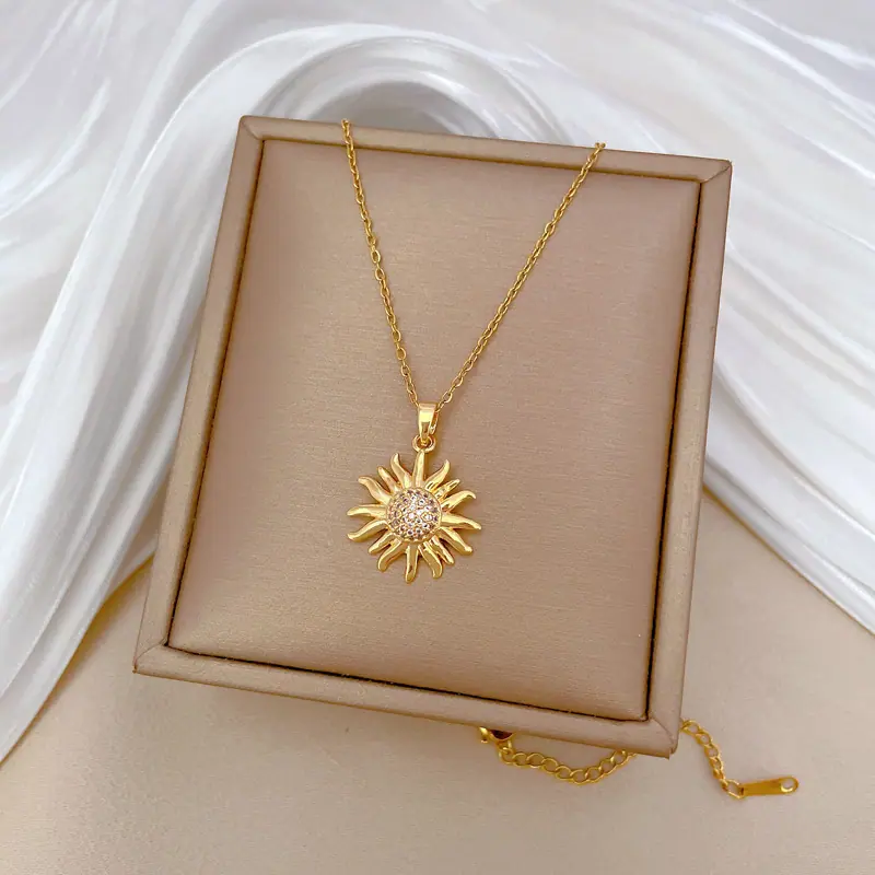 [Acero de titanio] Collar de diamantes elegante y lujoso con diseño de girasoles y cadena de clavícula para mujer, de acero de titanio.