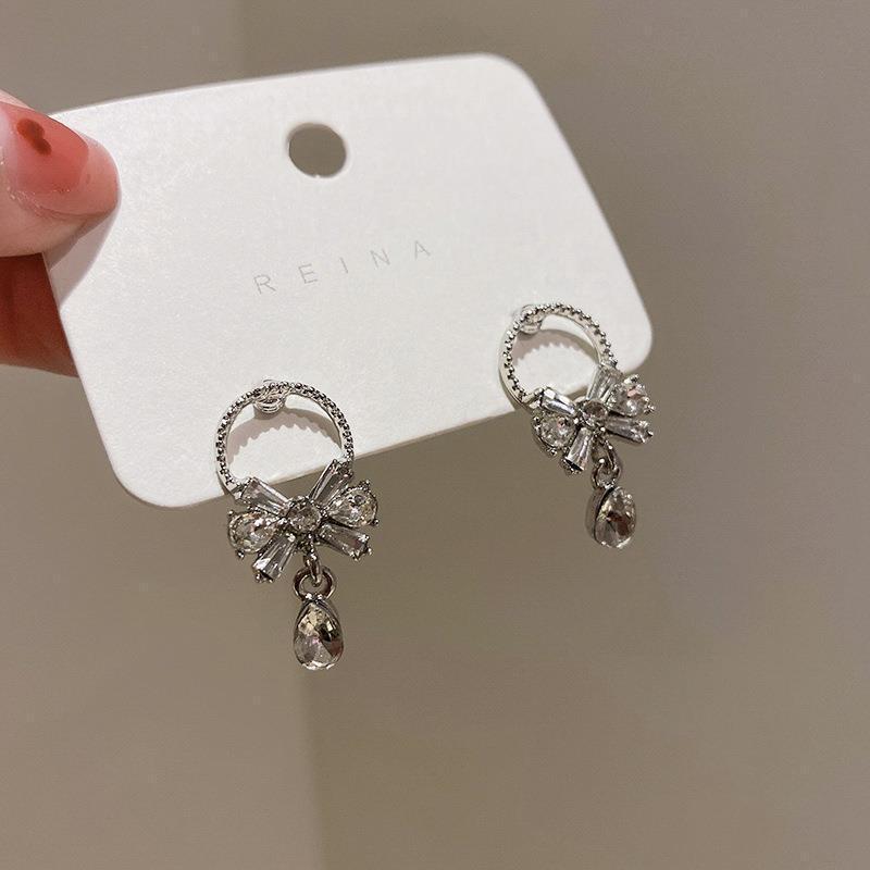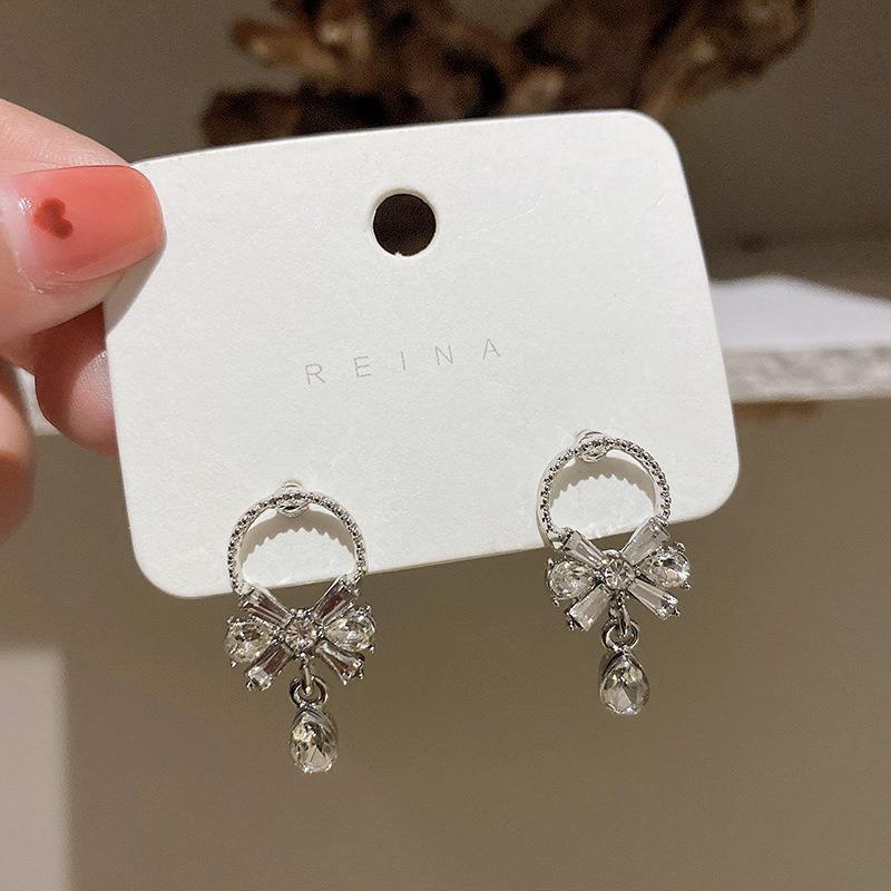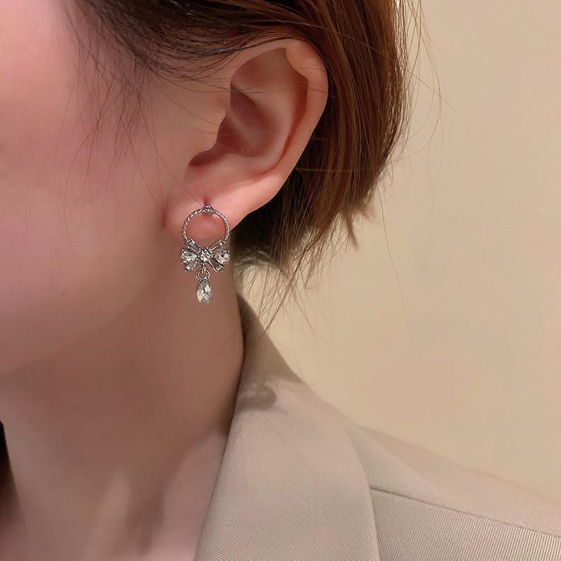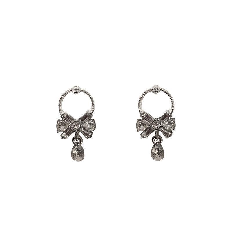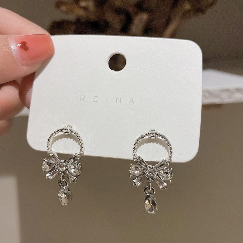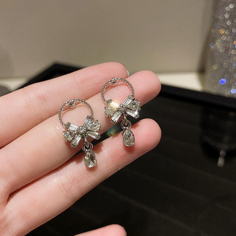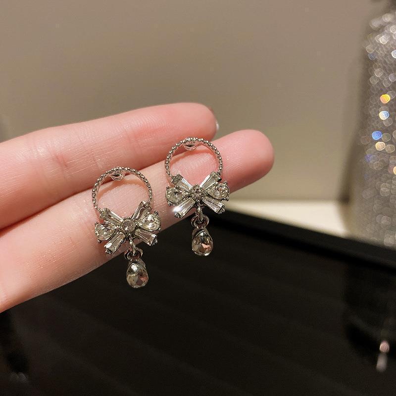 Compra Pendientes de lazo con diamantes de imitación Super Flash de estilo coreano 2024, pendientes de aguja de plata S925 con temperamento retro para mujer, joyería para las orejas al por mayor en Joom.pro