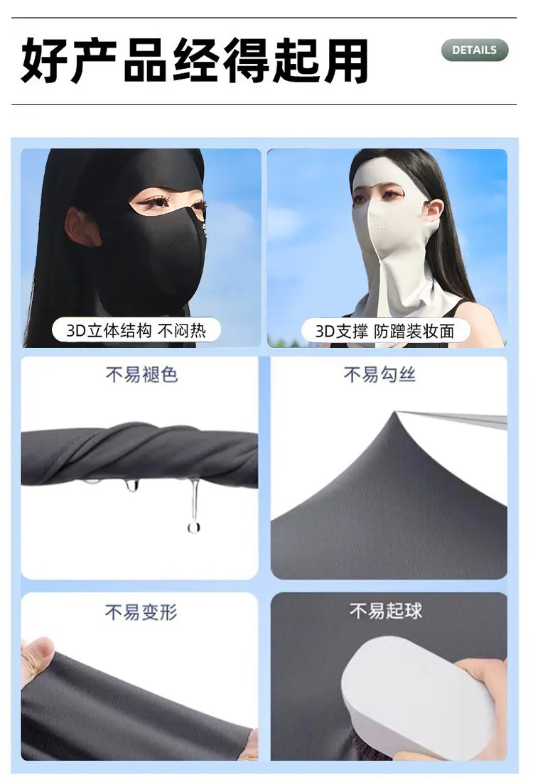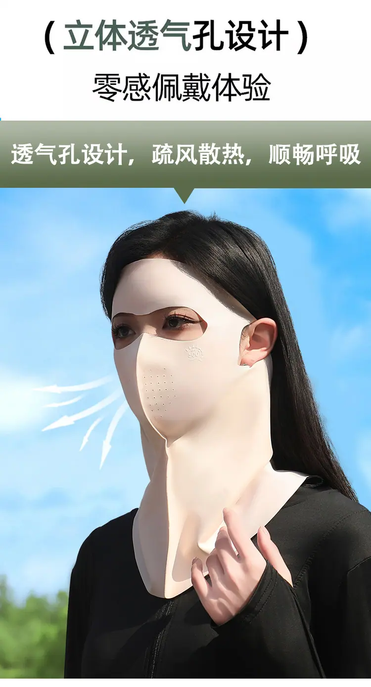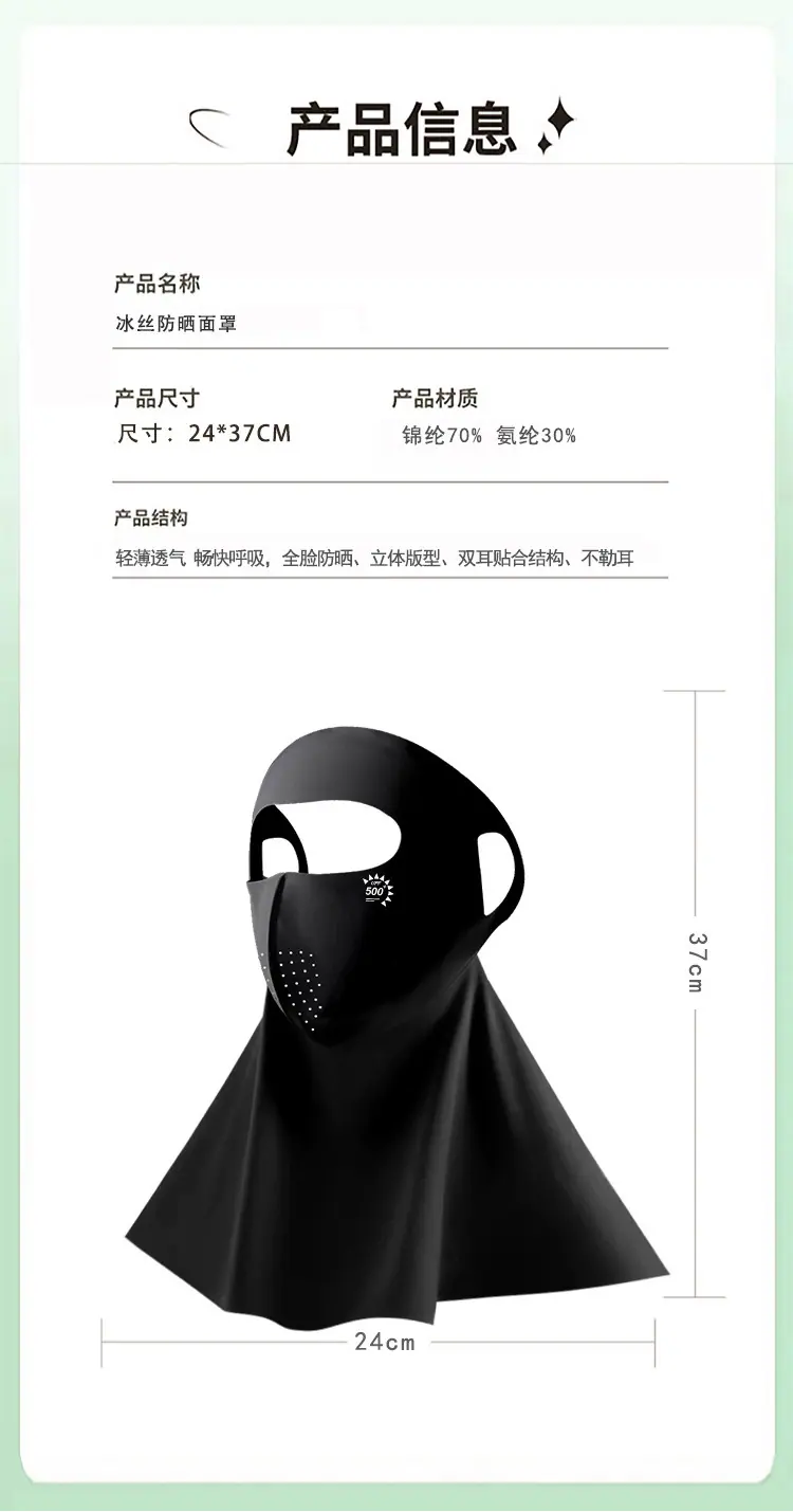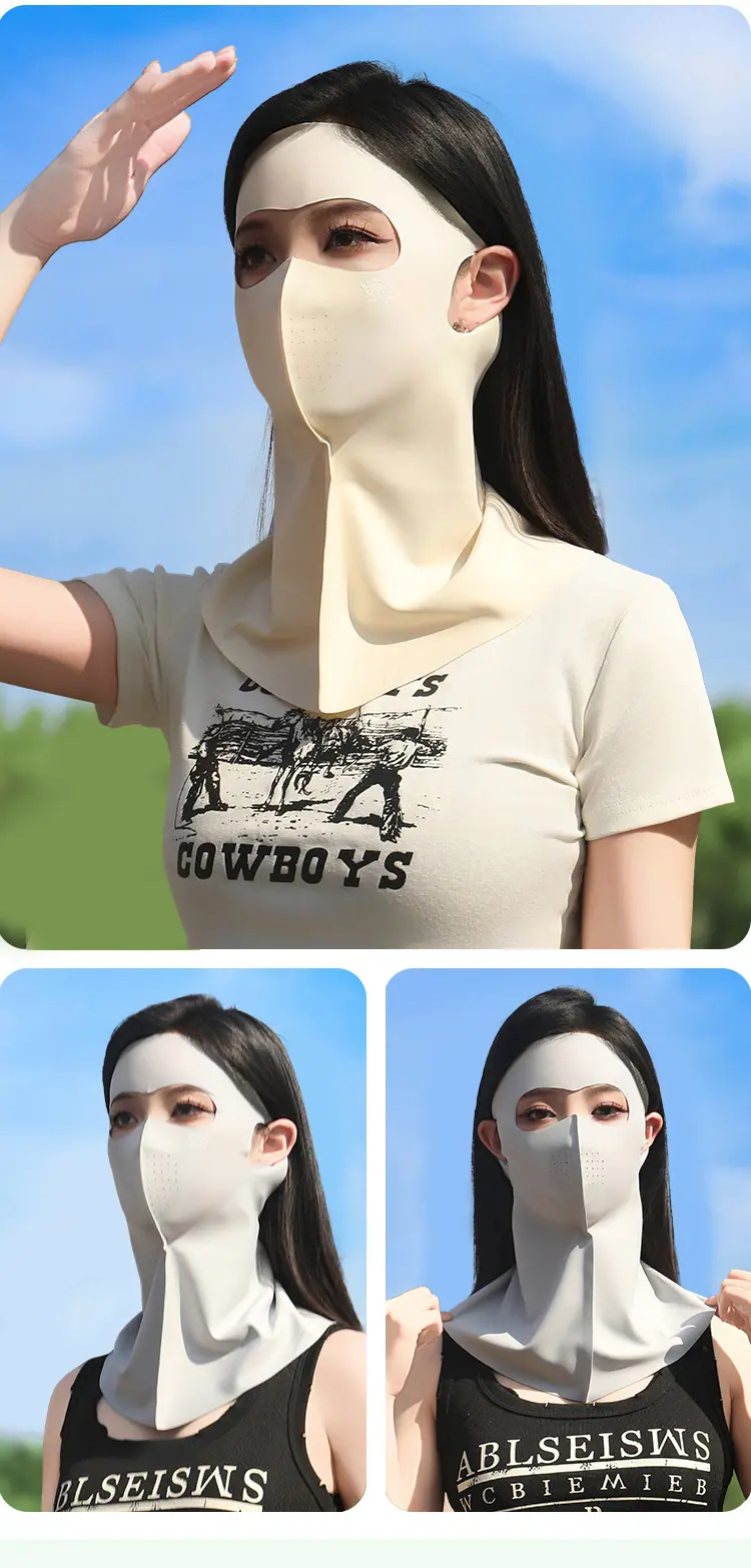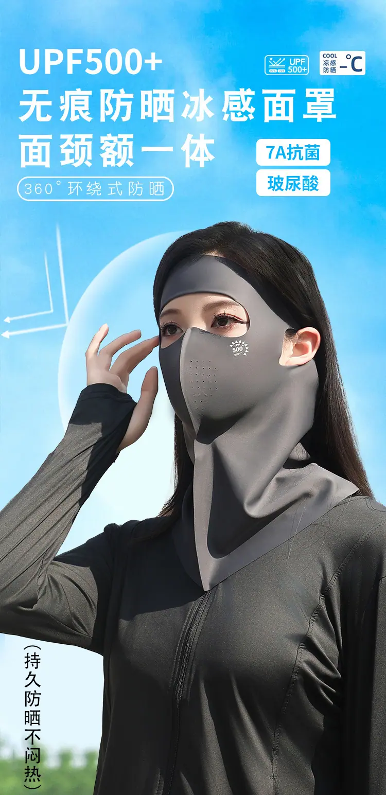 Protector Solar Facial UPF500 Mascarilla Gini Protección UV para Mujer Seda de Hielo Verano Transpirable 7A Antibacteriana Mascarilla de Ácido Hialurónico