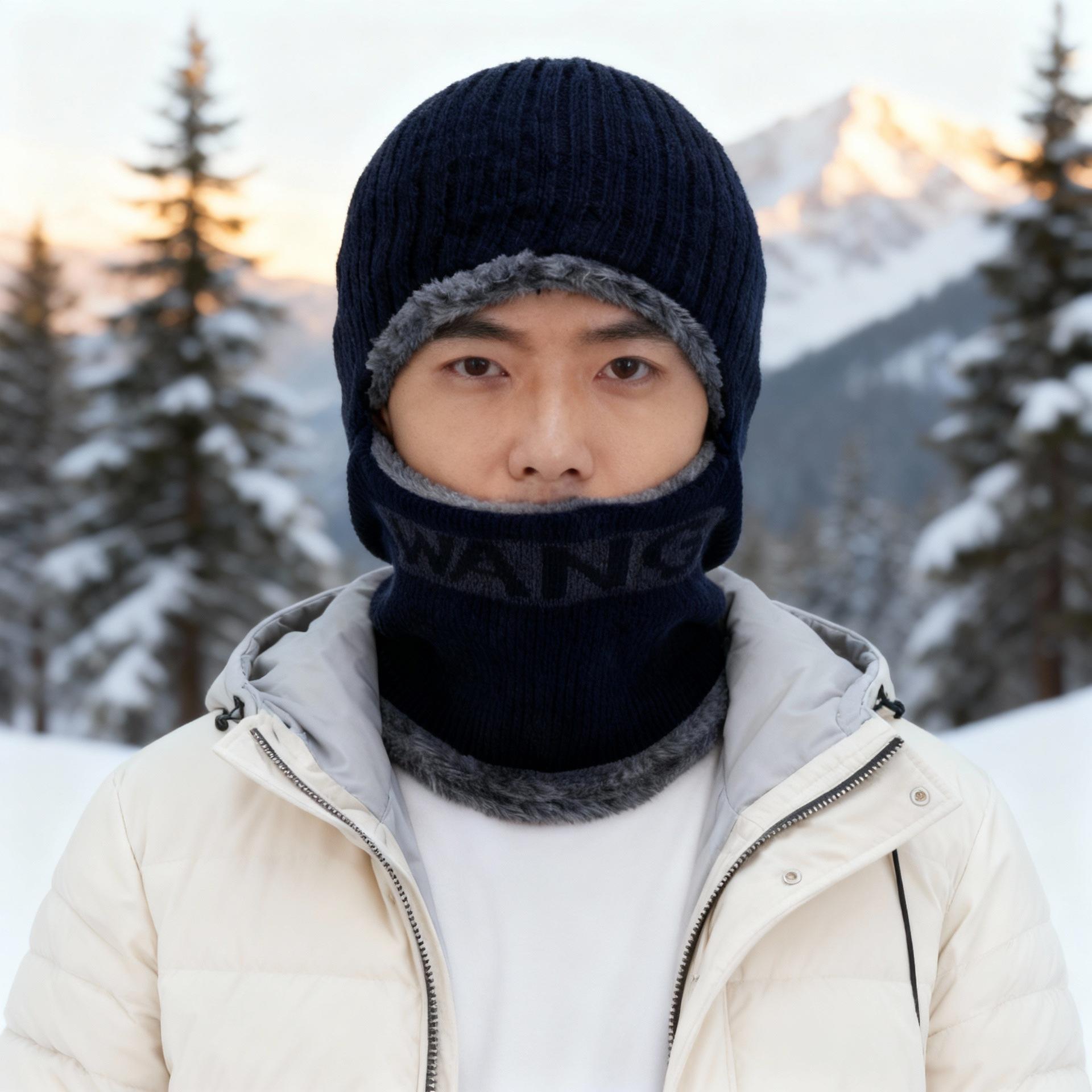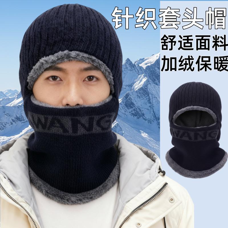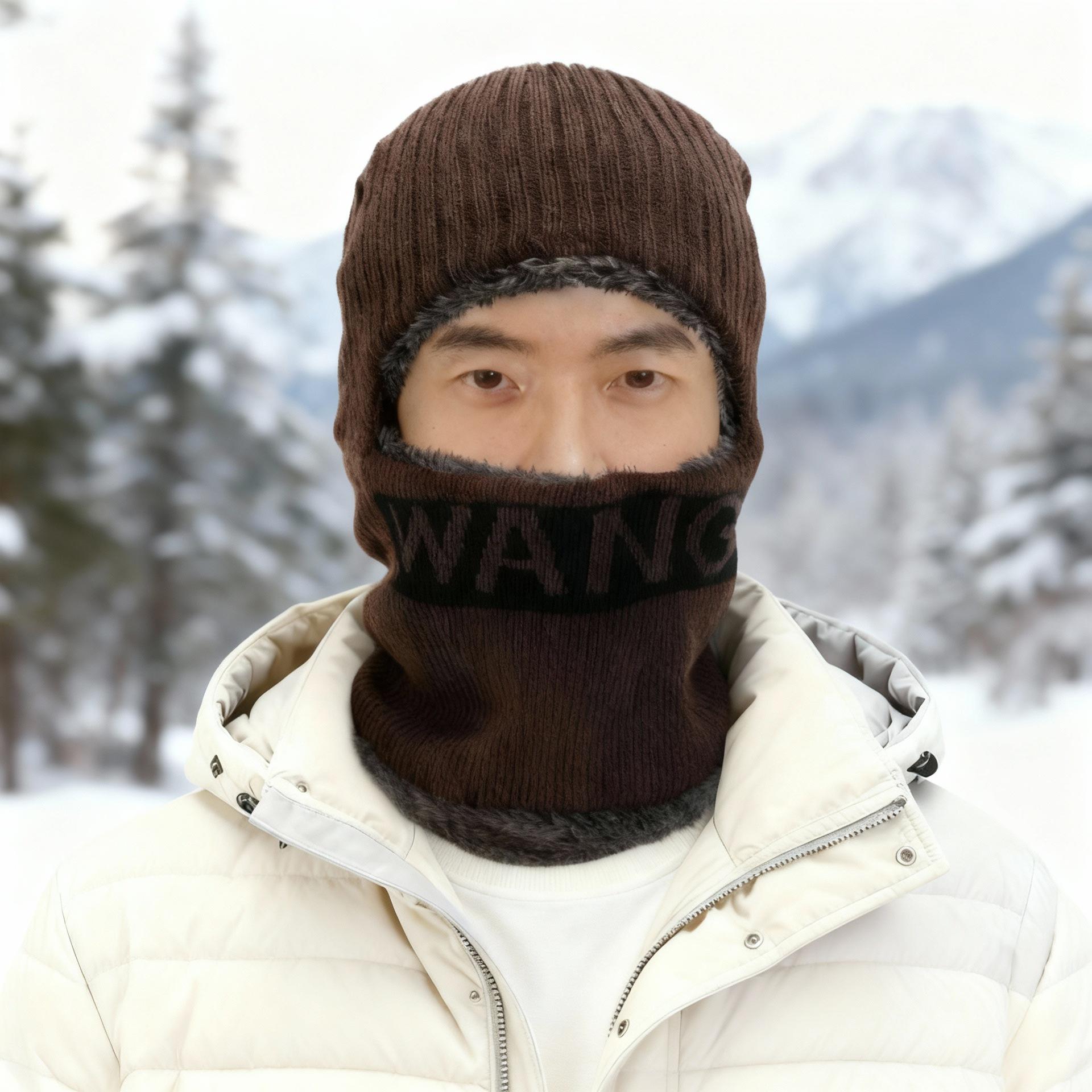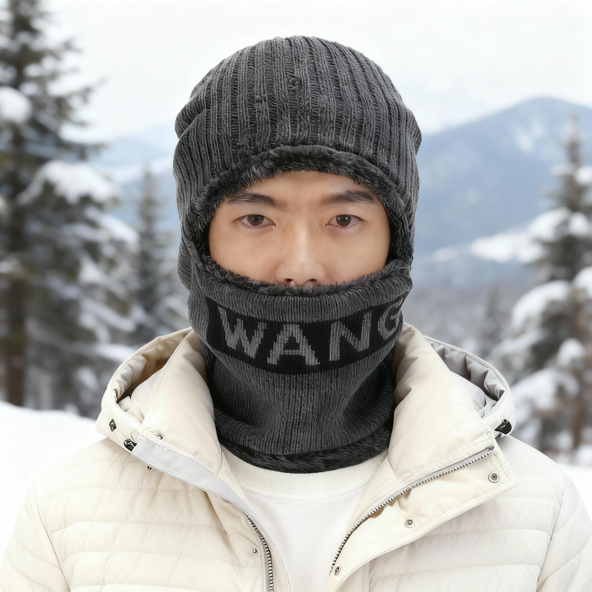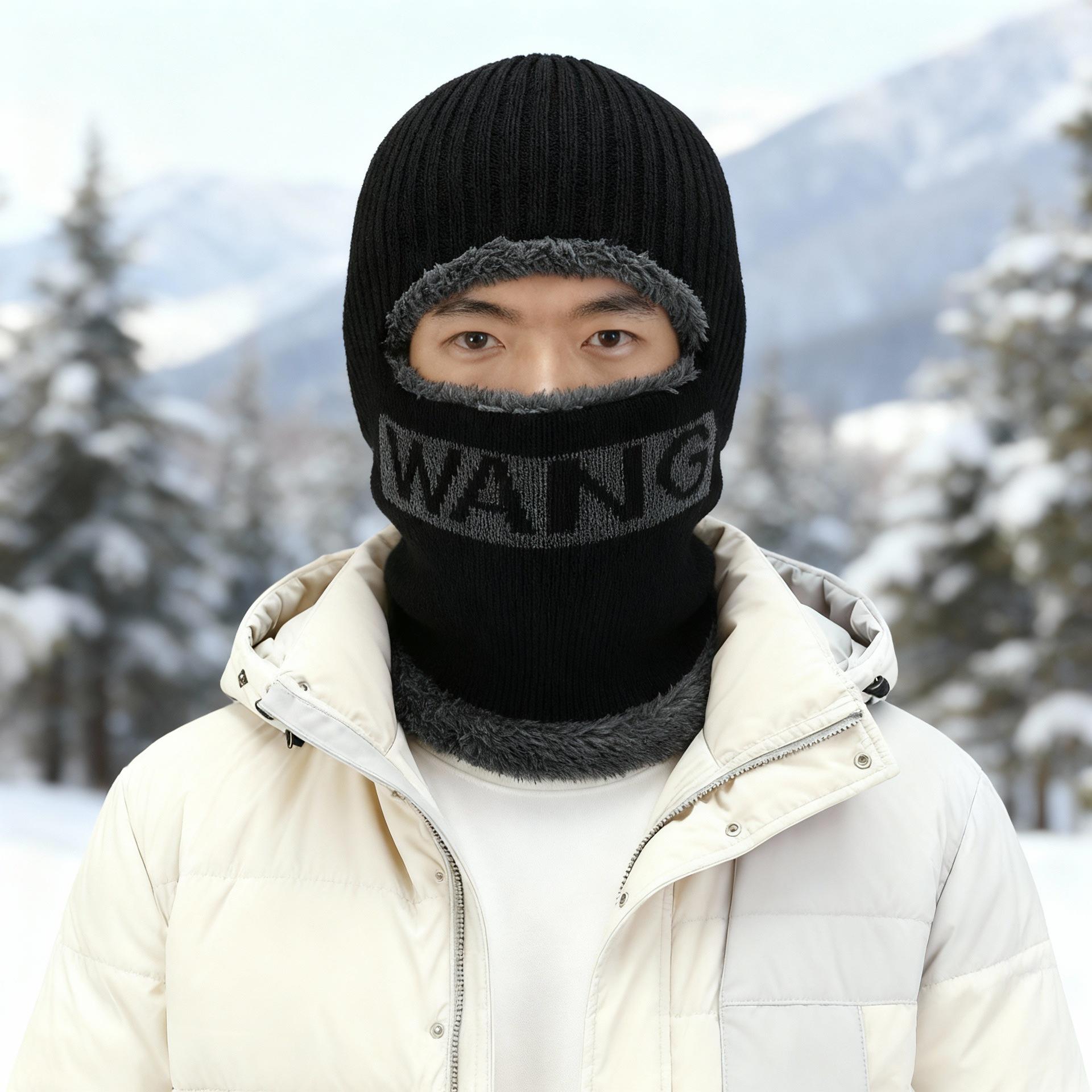 Invierno Espesado Cálido Lana Sombrero Integrado Protección Facial para Hombre A Prueba de Frío Sombrero de Punto Estilo Letra Sombrero Pulóver de Una Pieza
