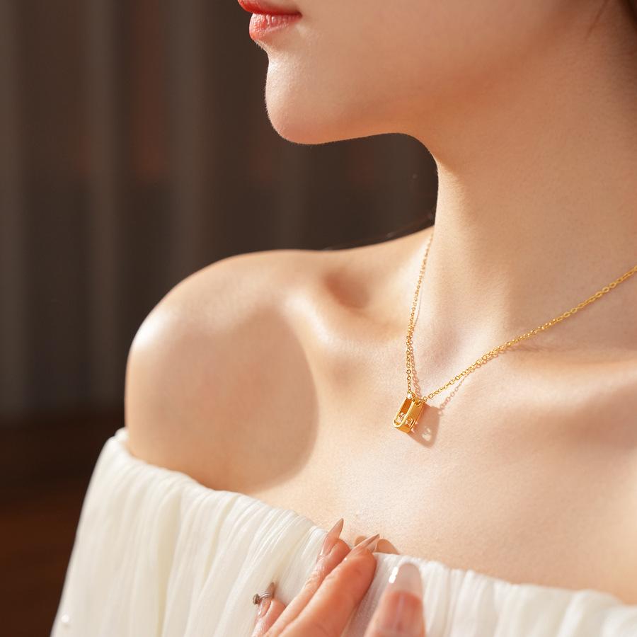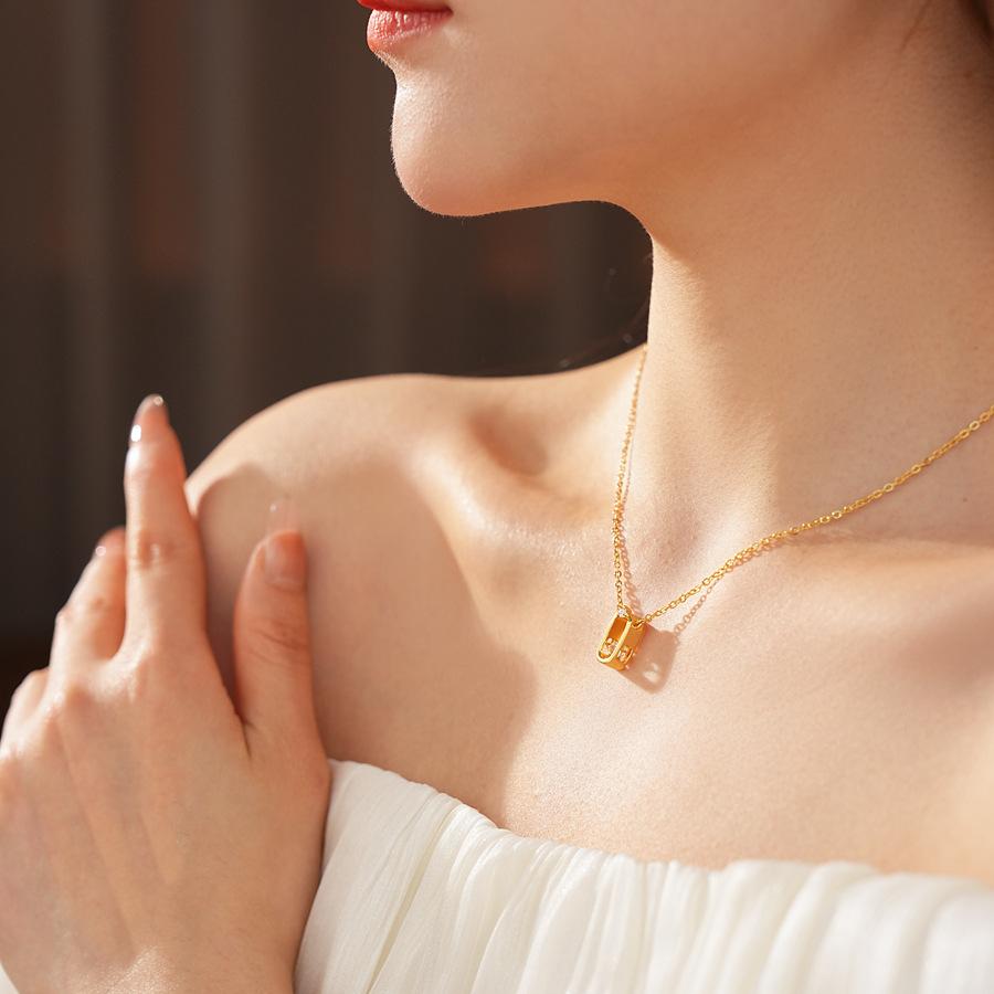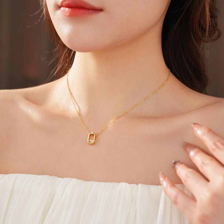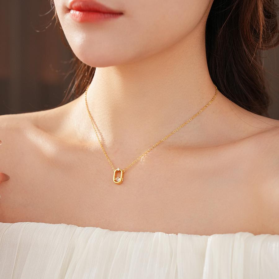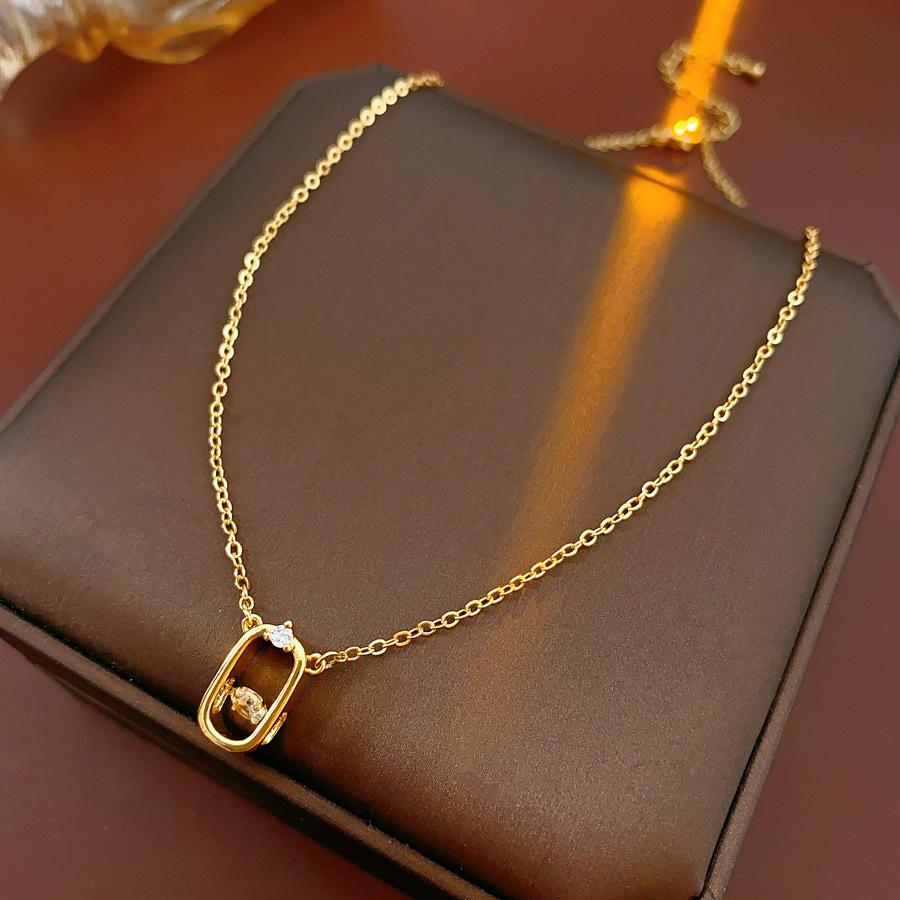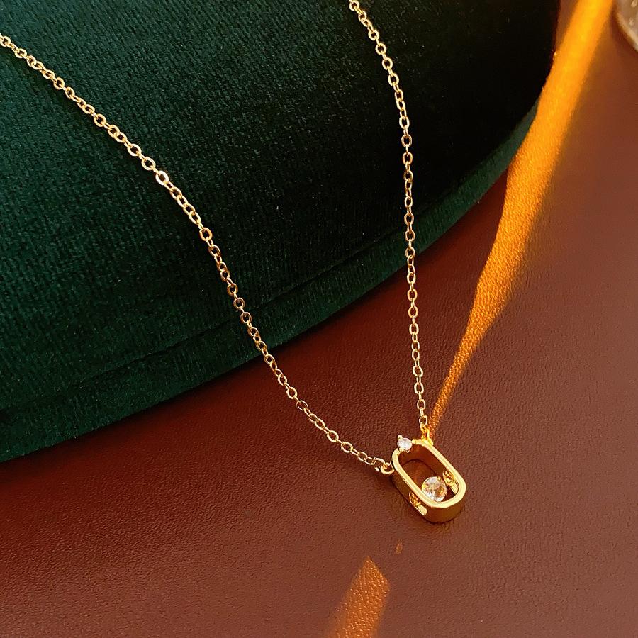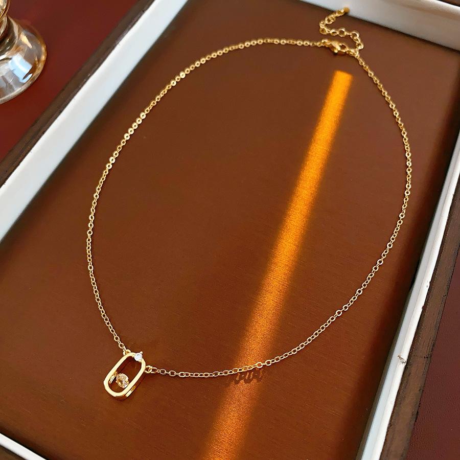Compra Collar con colgante ovalado chapado en oro real de 18k Moda para viajeros Versátil Cadena simple para clavícula Collar de lujo ligero de alta gama al por mayor en Joom.pro