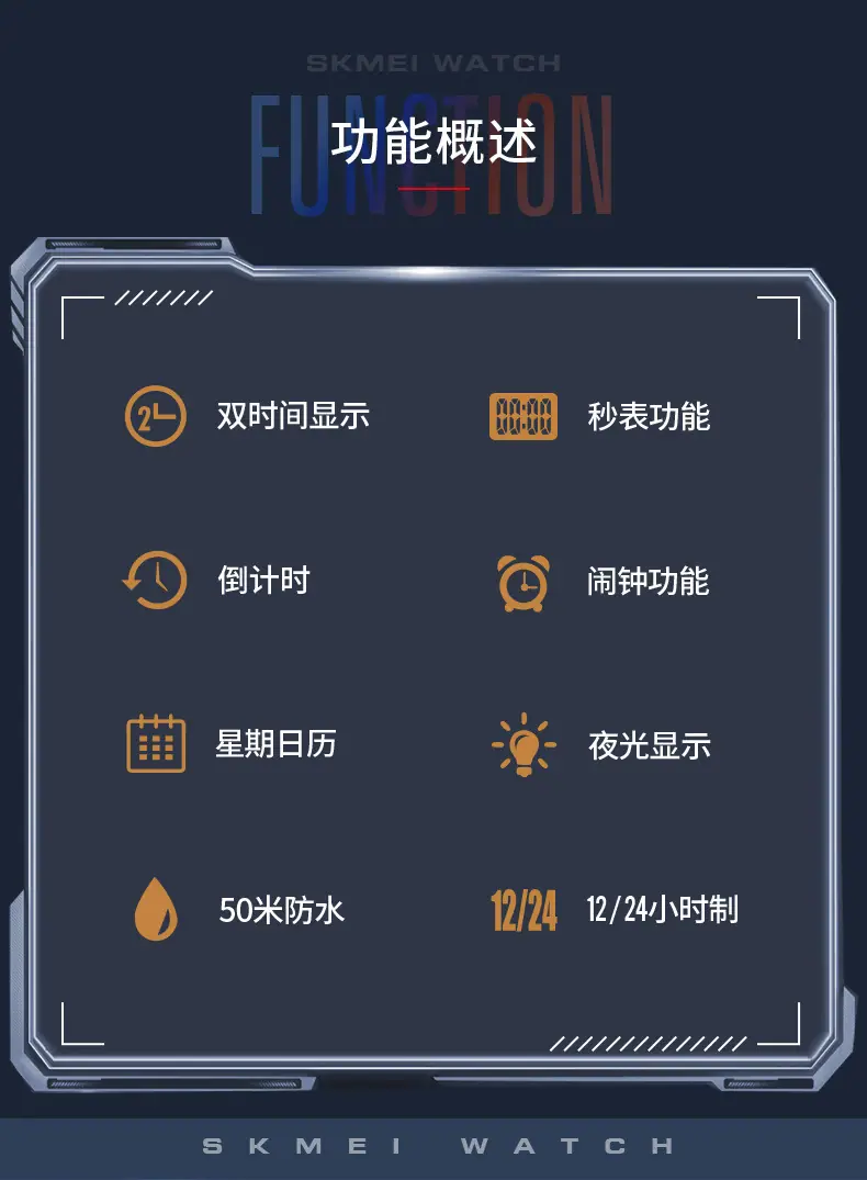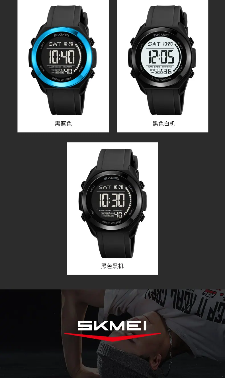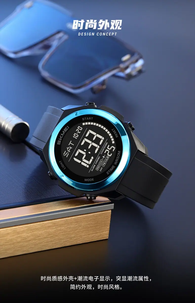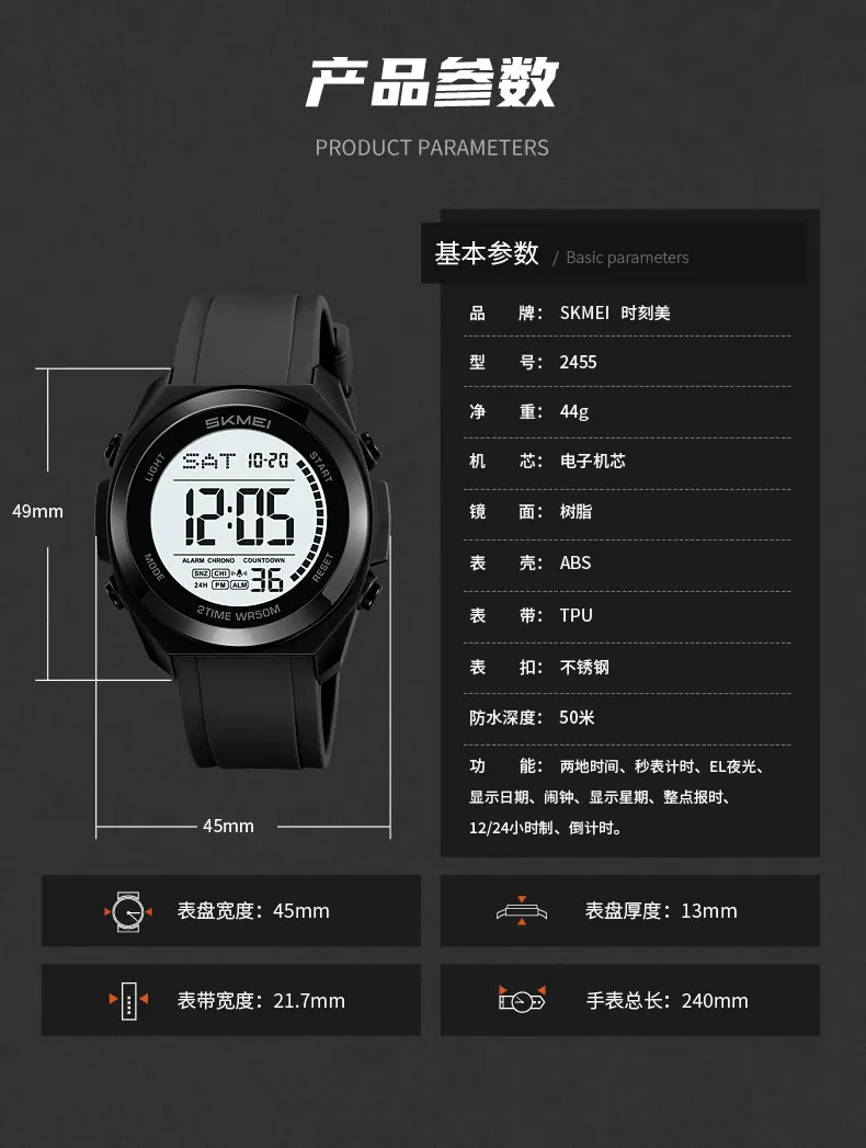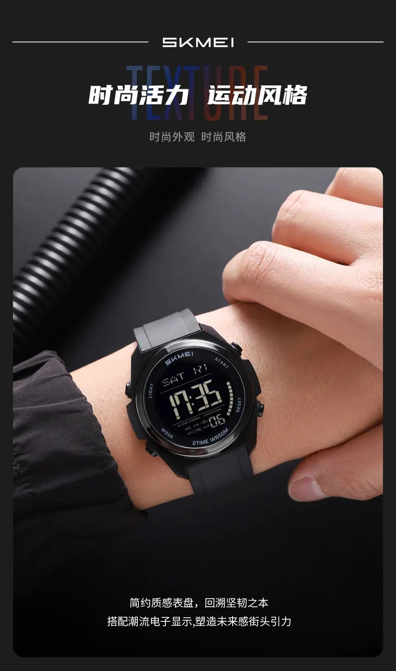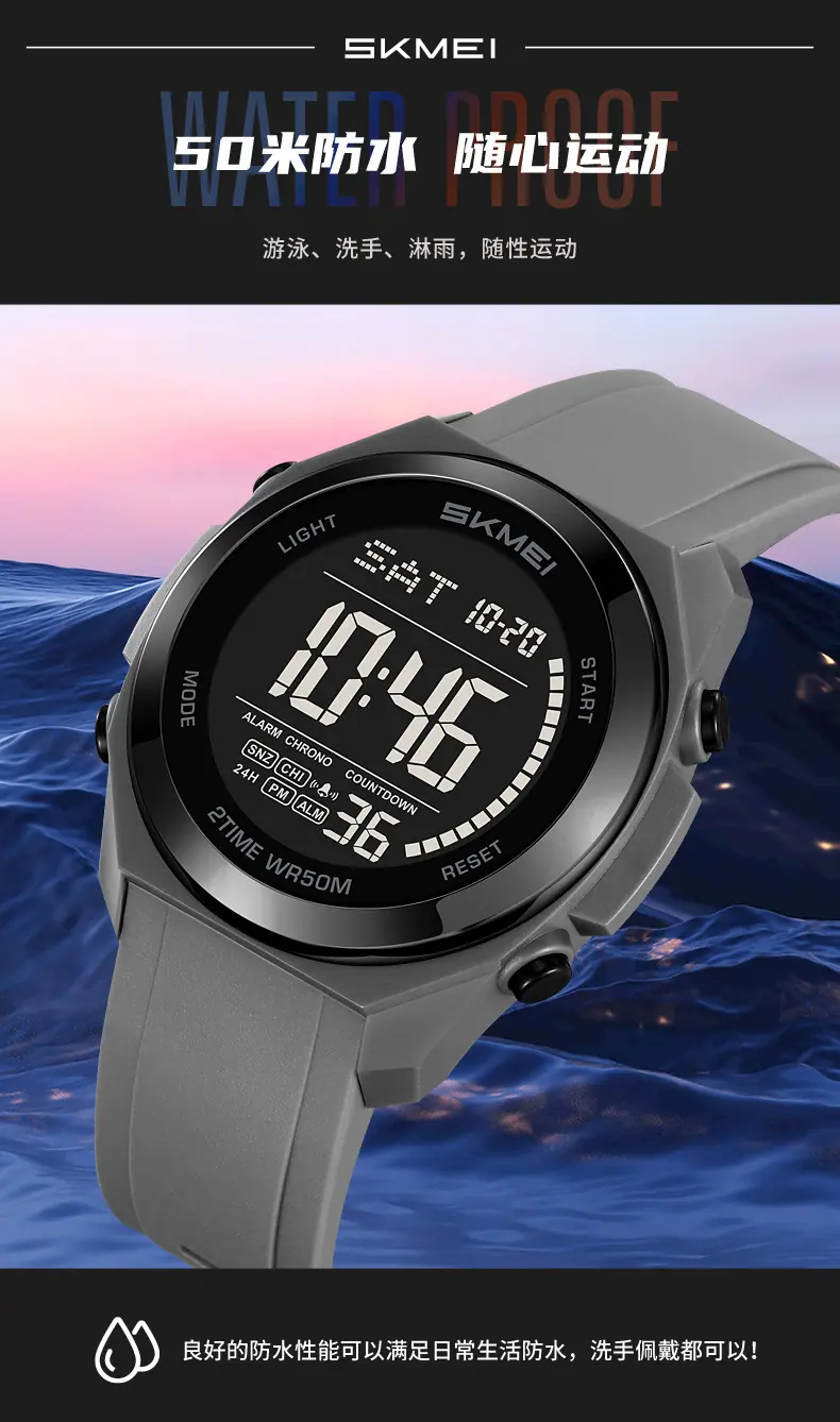 Funciones: 2 tiempos, cronómetro, fecha, alarma temporizador, semana, EL luminoso, señal horaria, formato 12/24 horas, cuenta regresiva.