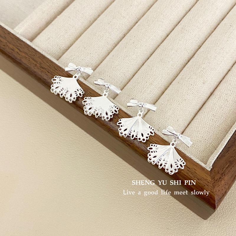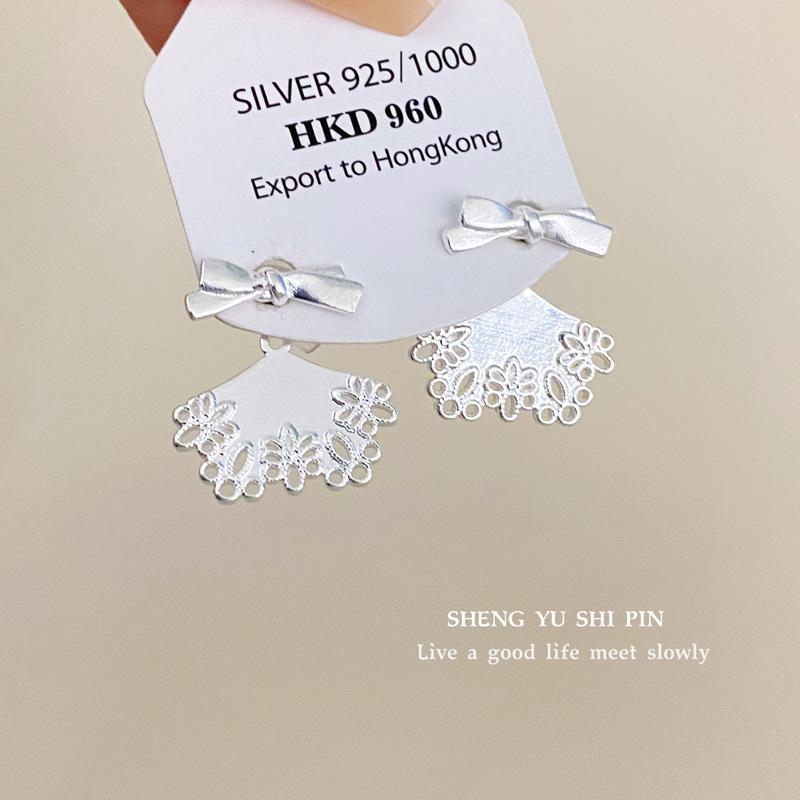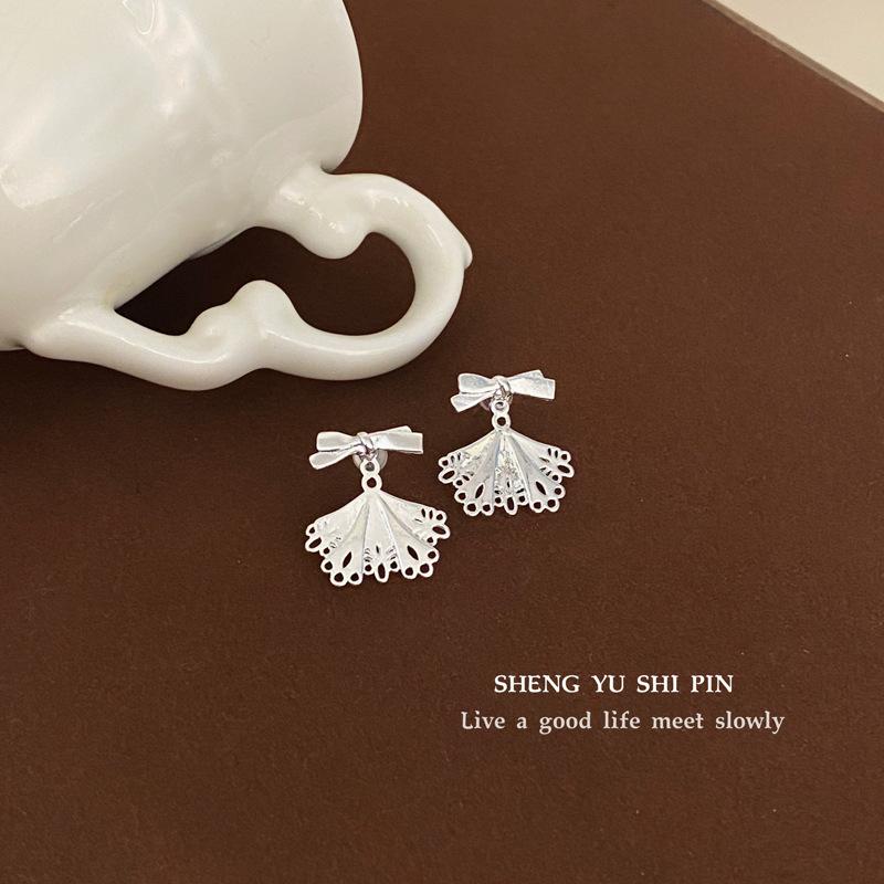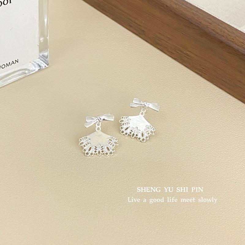 Aretes de Lazo de Encaje Francés Diseño de Metal Dulces y Exquisitos Aretes de Diseño Nicho Cool Ins