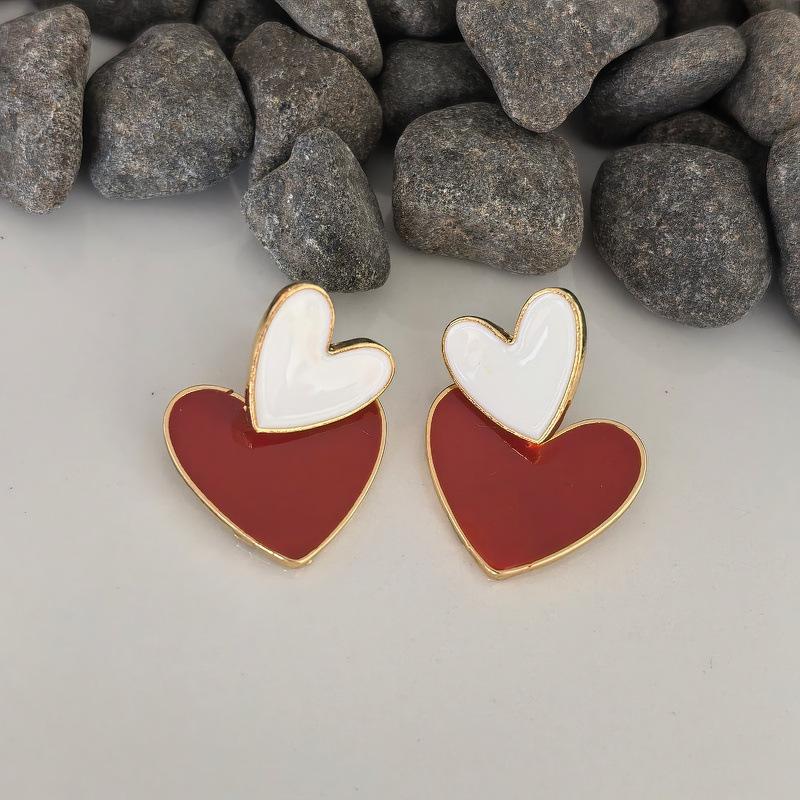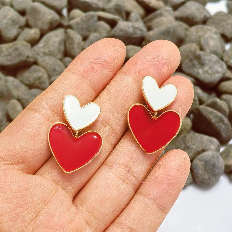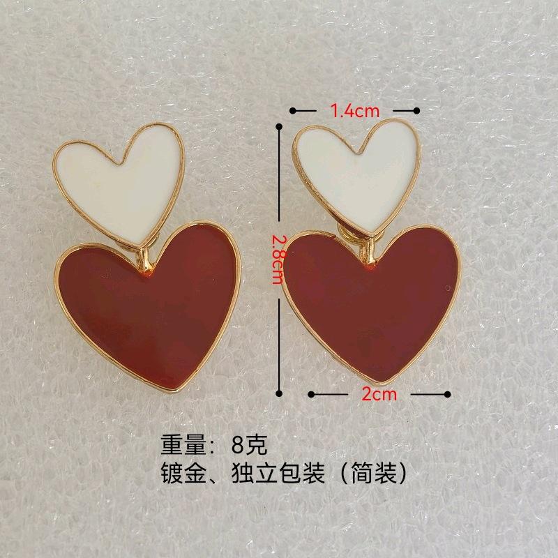 Aretes Colgantes de Corazón de Doble Capa para Comercio Exterior Europeo y Americano, Aretes de Borla de Corazón de Durazno Coloridos, Temperamento Simple, Celebridad de Internet, Adelgazantes para la Oreja