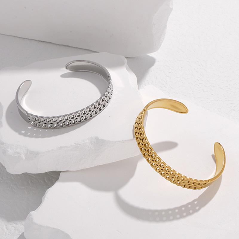 Pulsera minimalista multicapa de línea europea y americana de acero inoxidable 304, versátil transfronteriza, electrochapado al vacío, oro de 18k, brazalete de acero de titanio para mujer