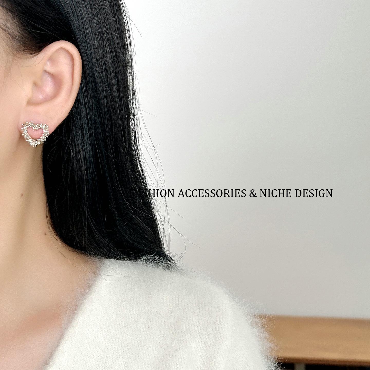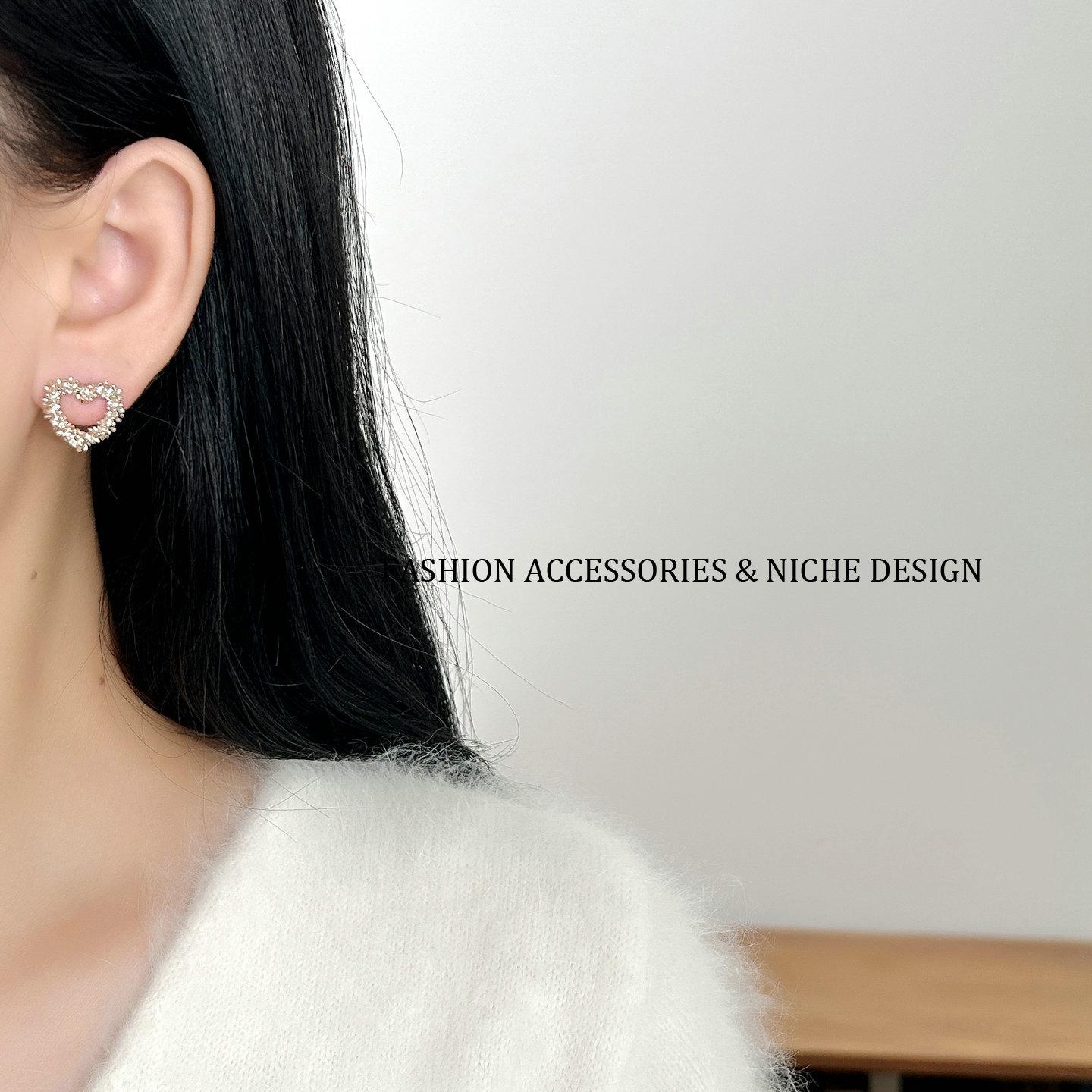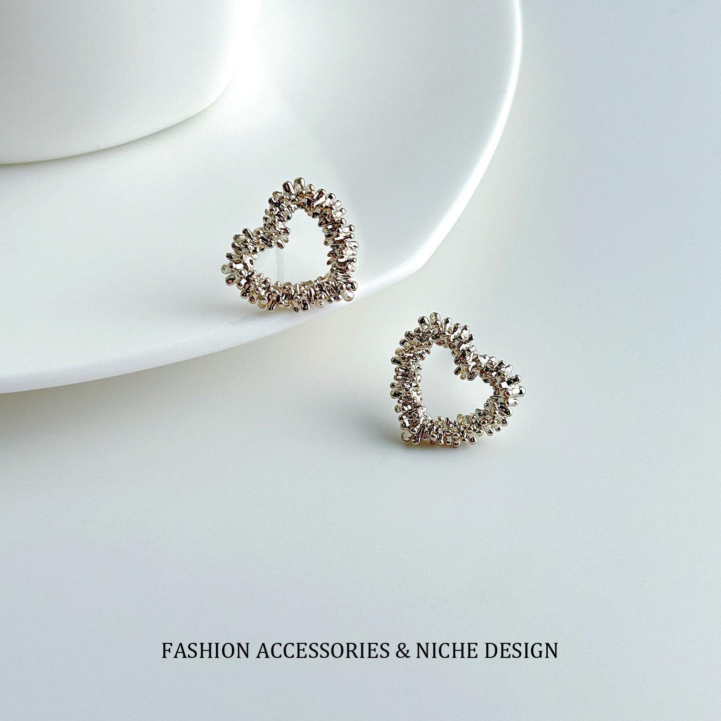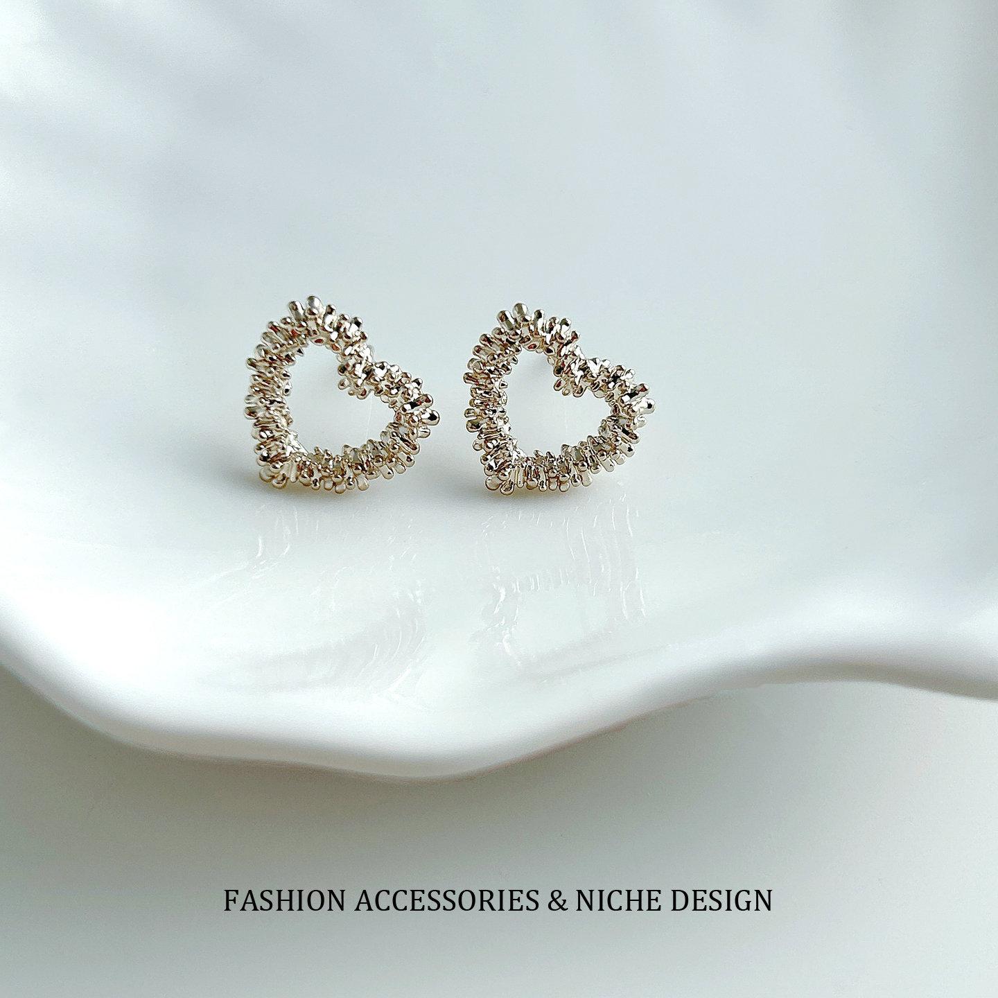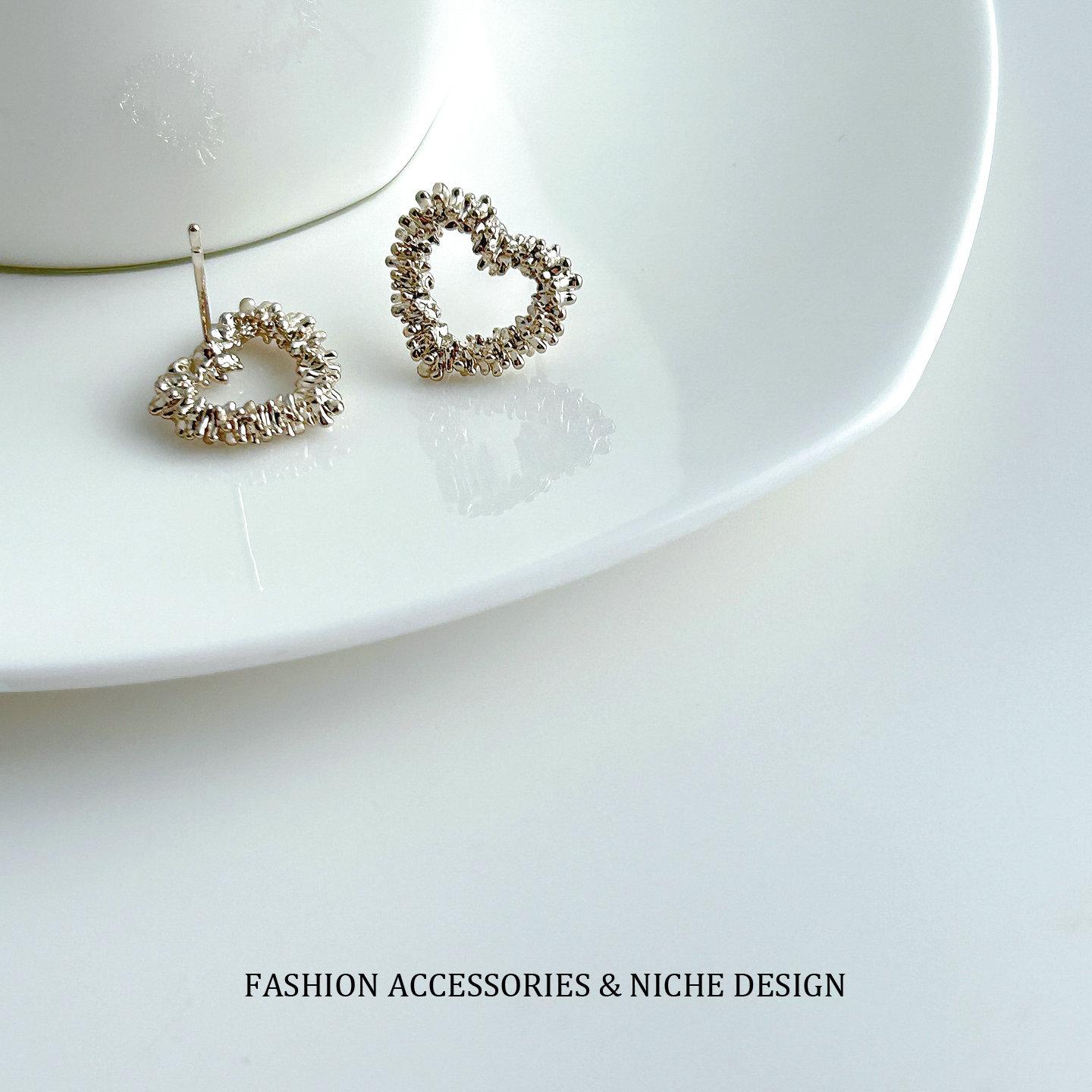 Aretes de Tuerca Corazón Hueco Plata Rota Estilo Coreano ins Oro Café Minimalista Estilo Frío Nicho Temperamento