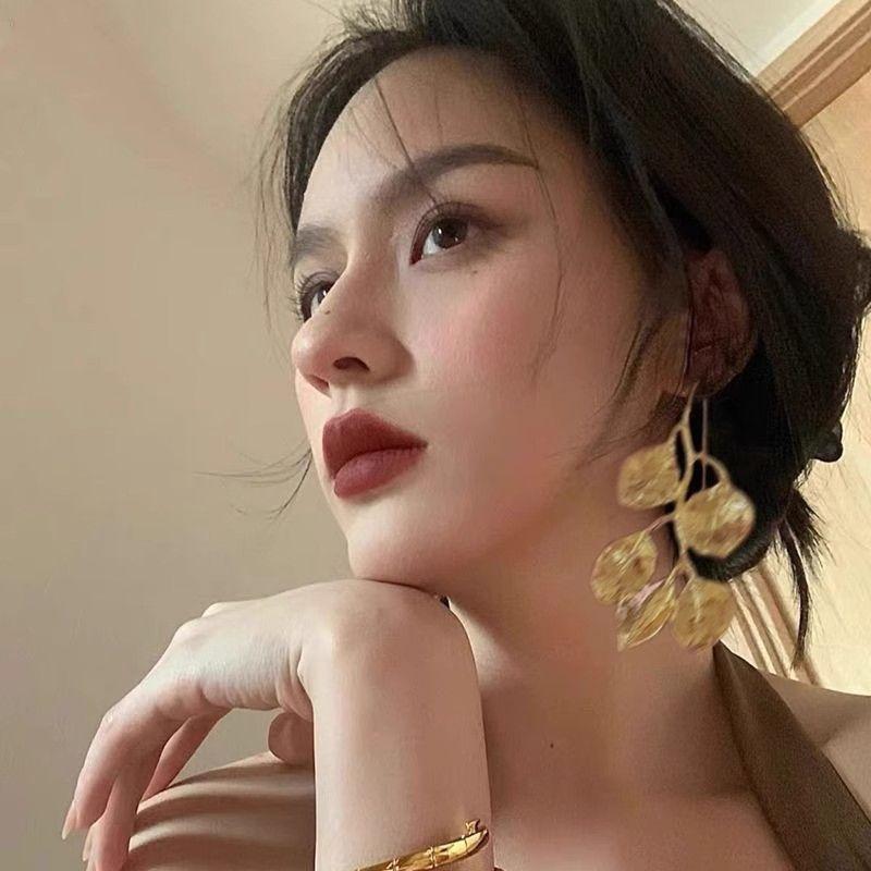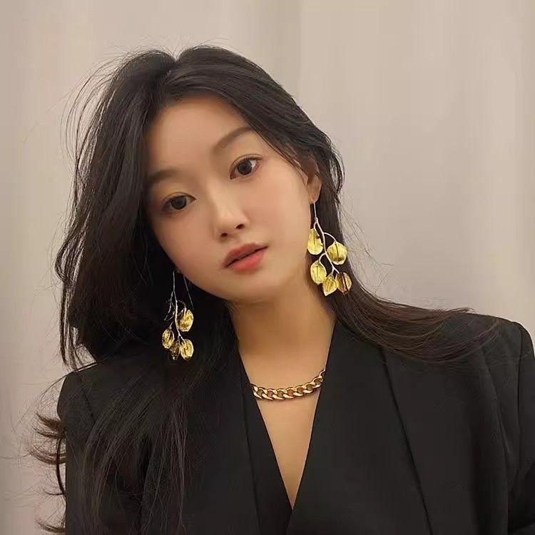 Clips de Oreja de Hoja de Metal Retro Exagerados, Ganchos Largos para Oreja Estilo Europeo y Americano, Aretes de Diseño Nicho Francés