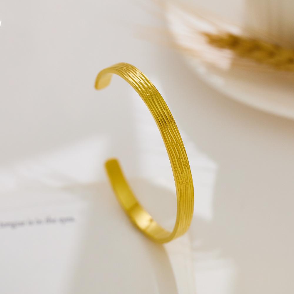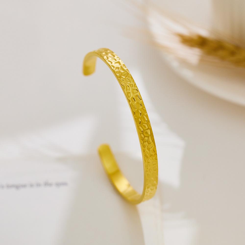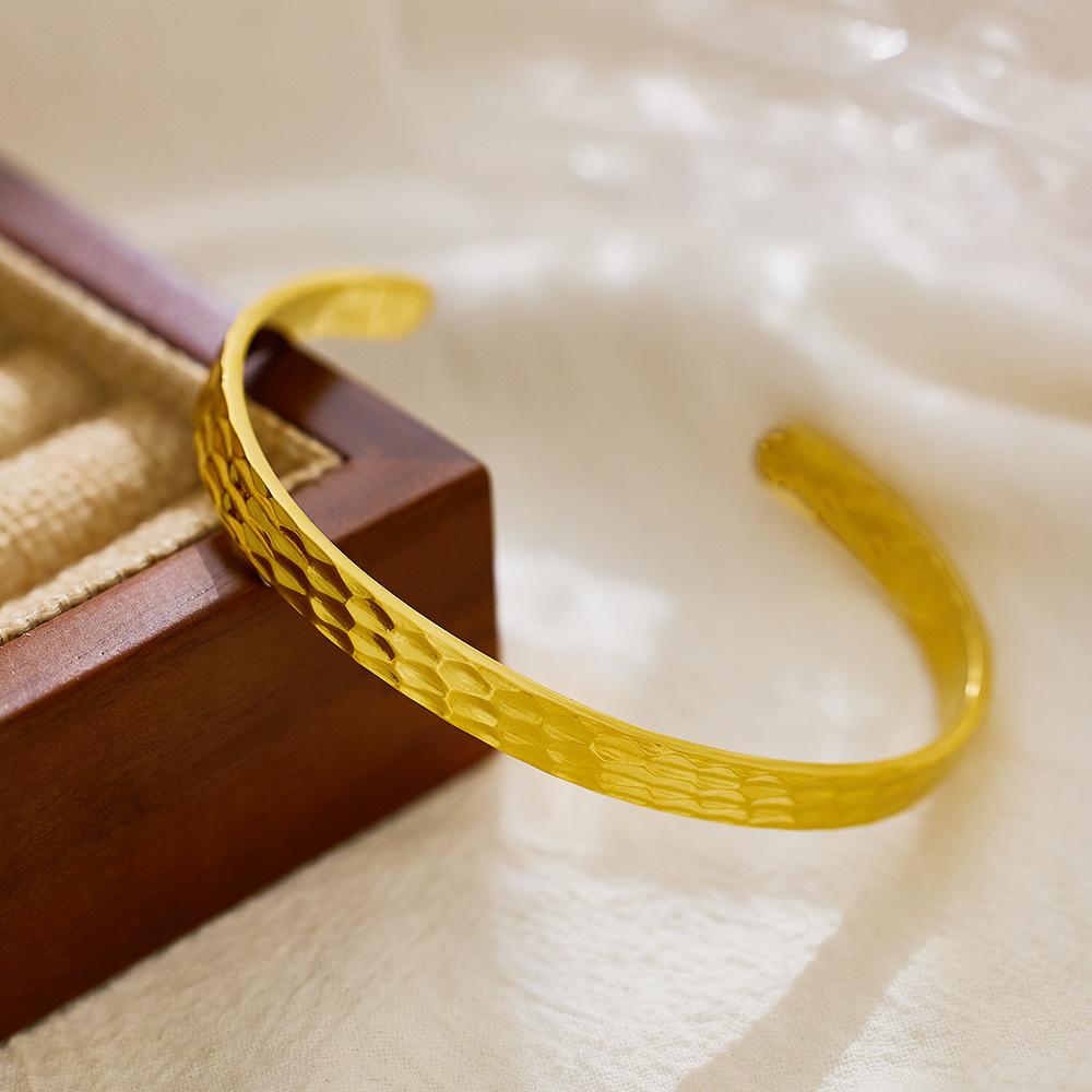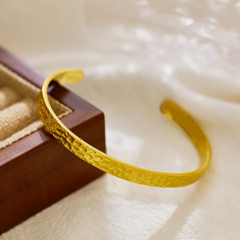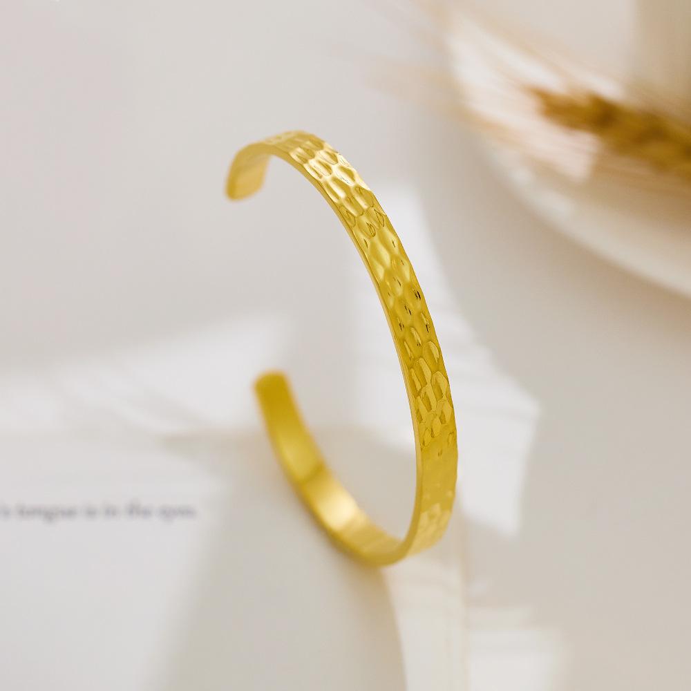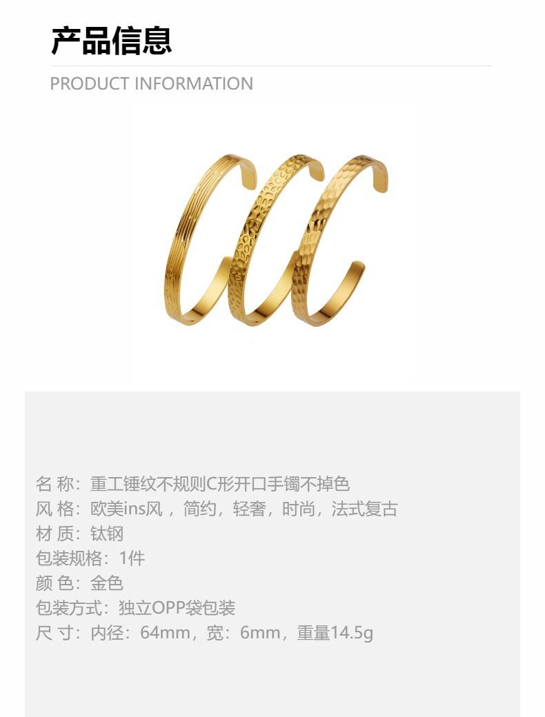 Pulseras Europeas y Americanas Transfronterizas de Alta Gama Pulseras en Forma de C Que No Se Desvanecen Patrón Martillado de Industria Pesada Oro Pulseras Asimétricas de Acero Titanio
