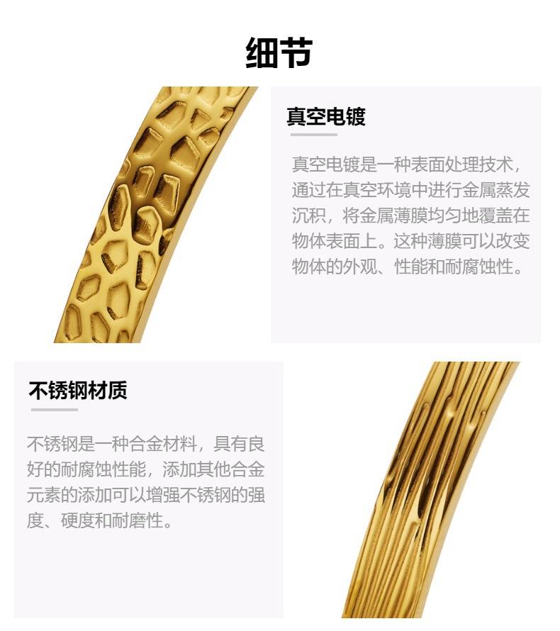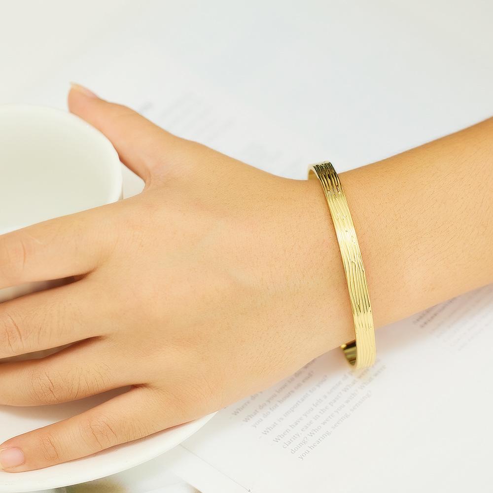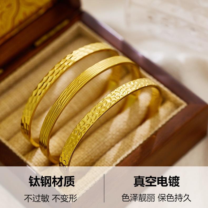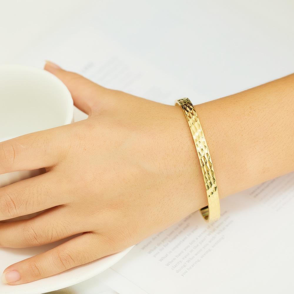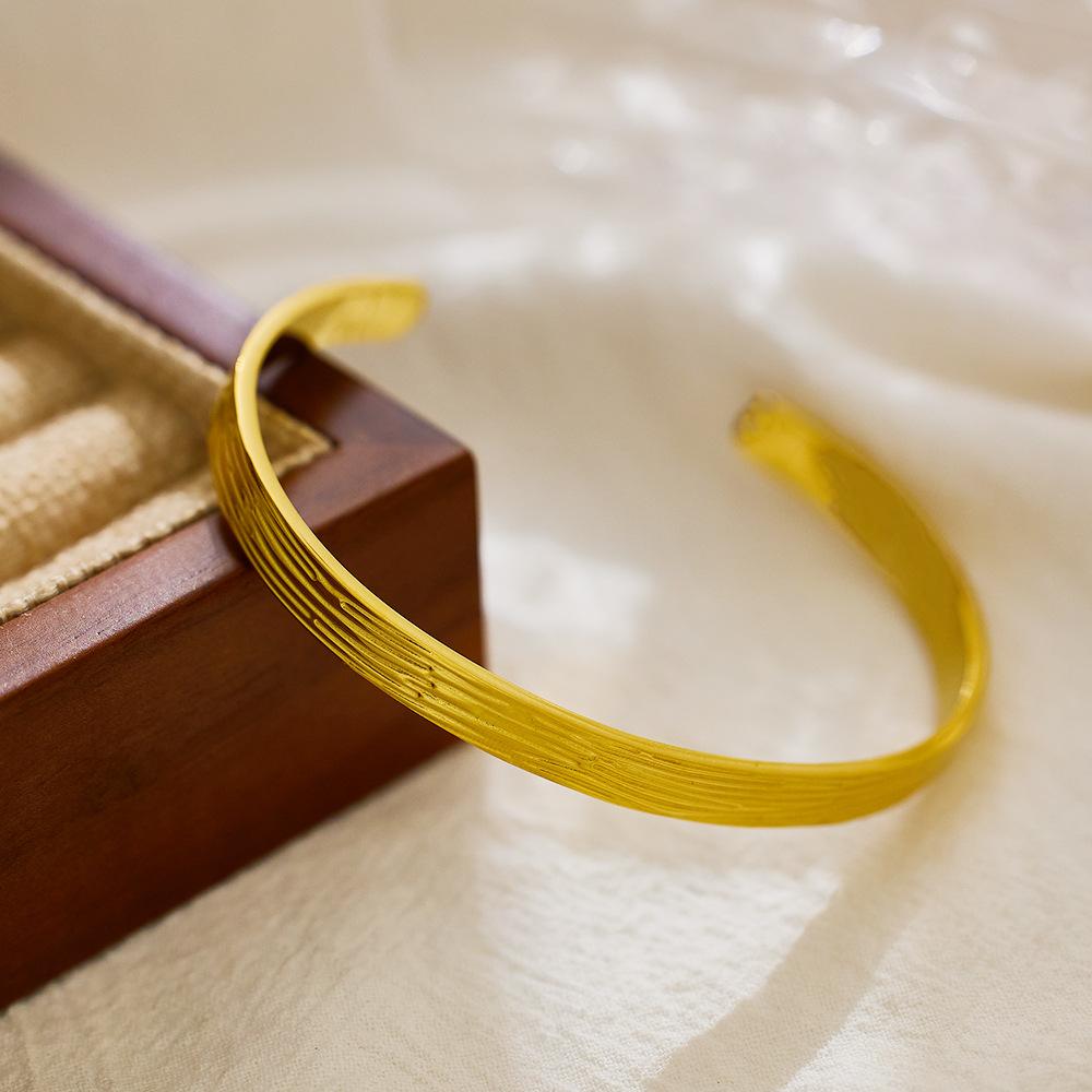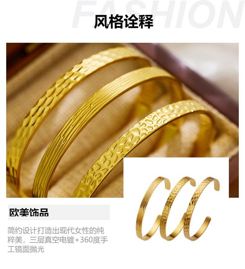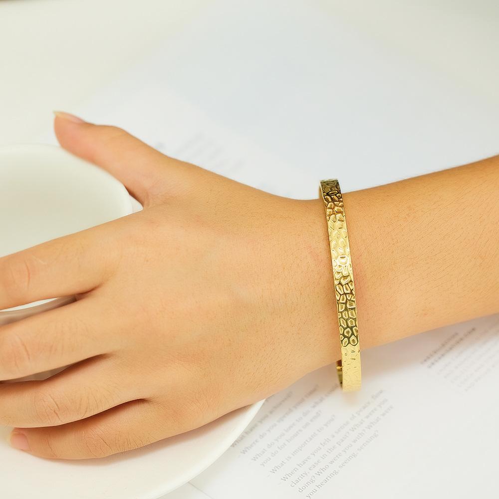 Pulseras Europeas y Americanas Transfronterizas de Alta Gama Pulseras en Forma de C Que No Se Desvanecen Patrón Martillado de Industria Pesada Oro Pulseras Asimétricas de Acero Titanio