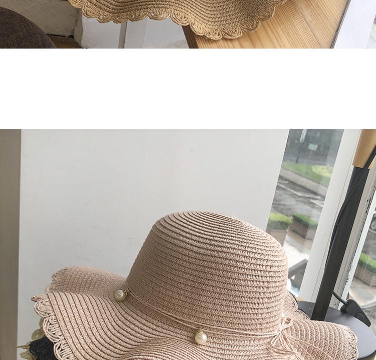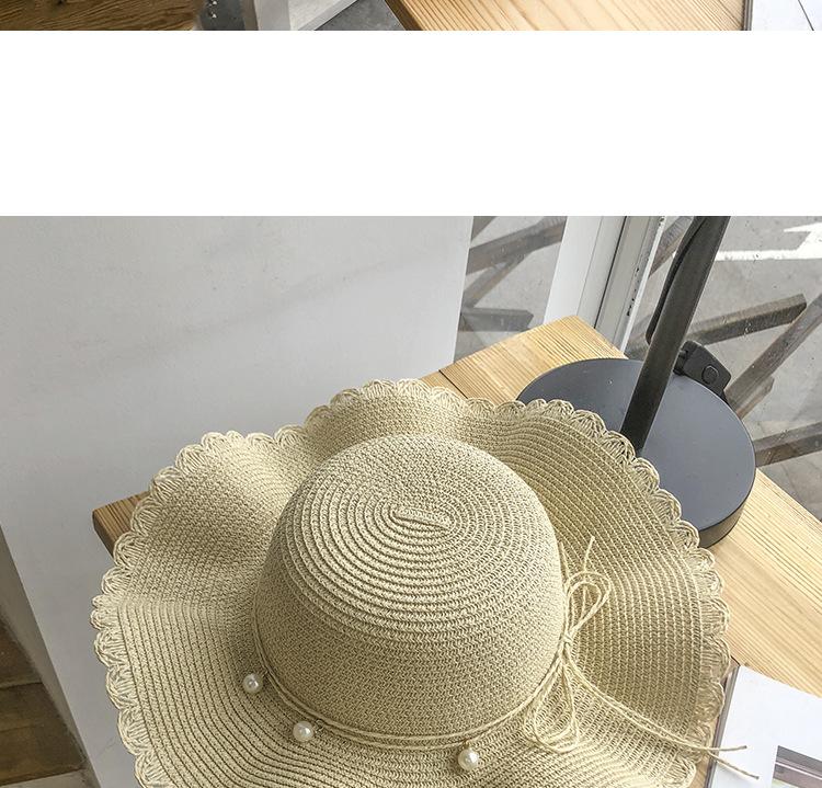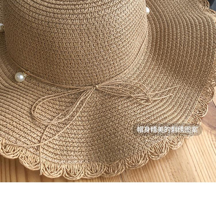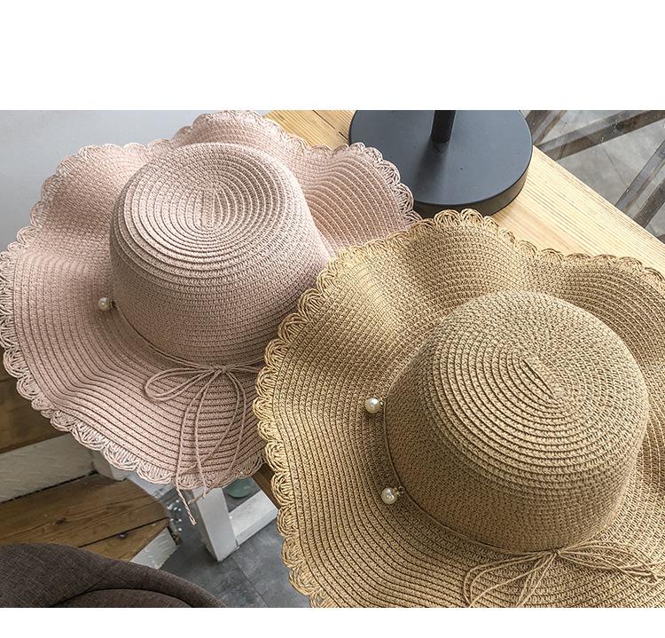 Sombrero de Paja de Ala Ancha Ola Fresca de Verano para Mujer Estilo Coreano Versátil Perla Casual Protección Solar Sombrero de Sol para Playa Moderno