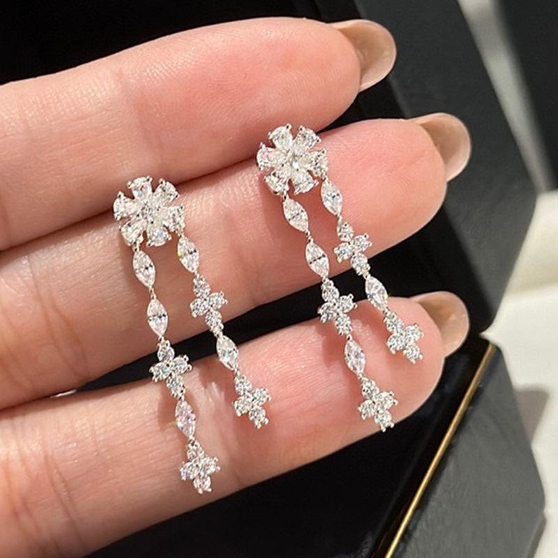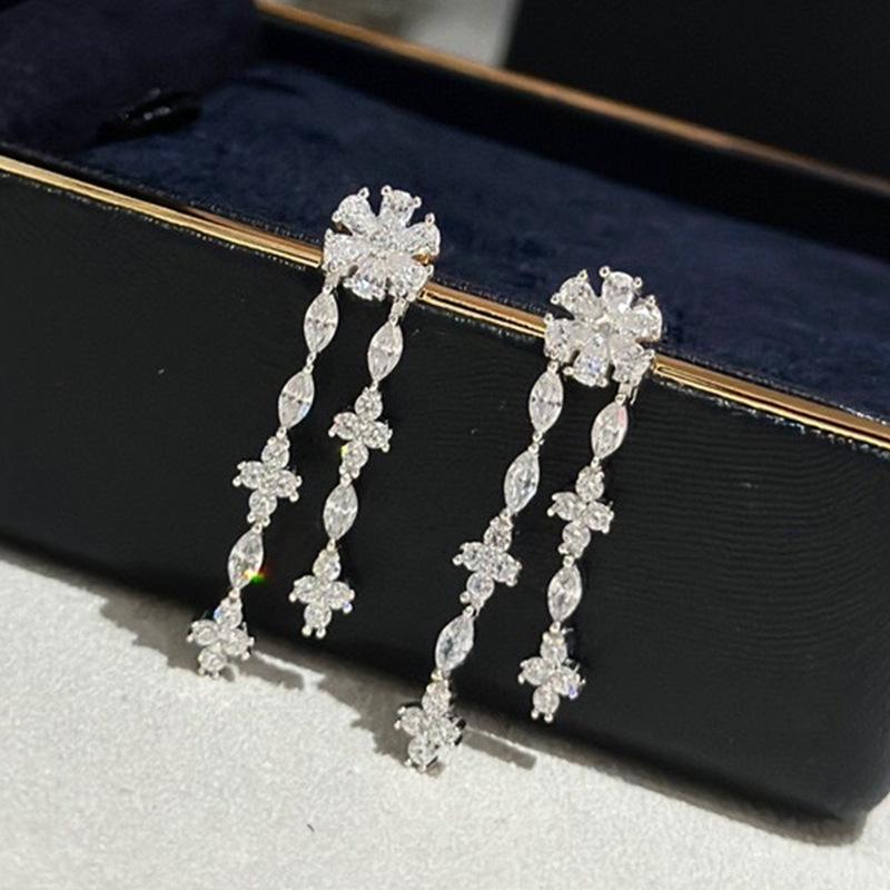 Plata S925 Diamante de Alto Carbono Joyería Importada Artesanía Pétalo de Flor Aretes de Borla Nicho de Alta Gama Aretes Dulces