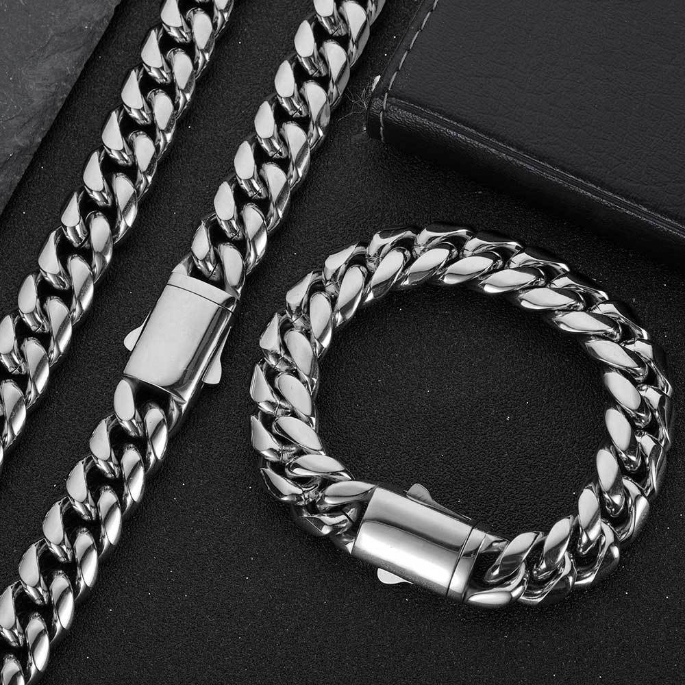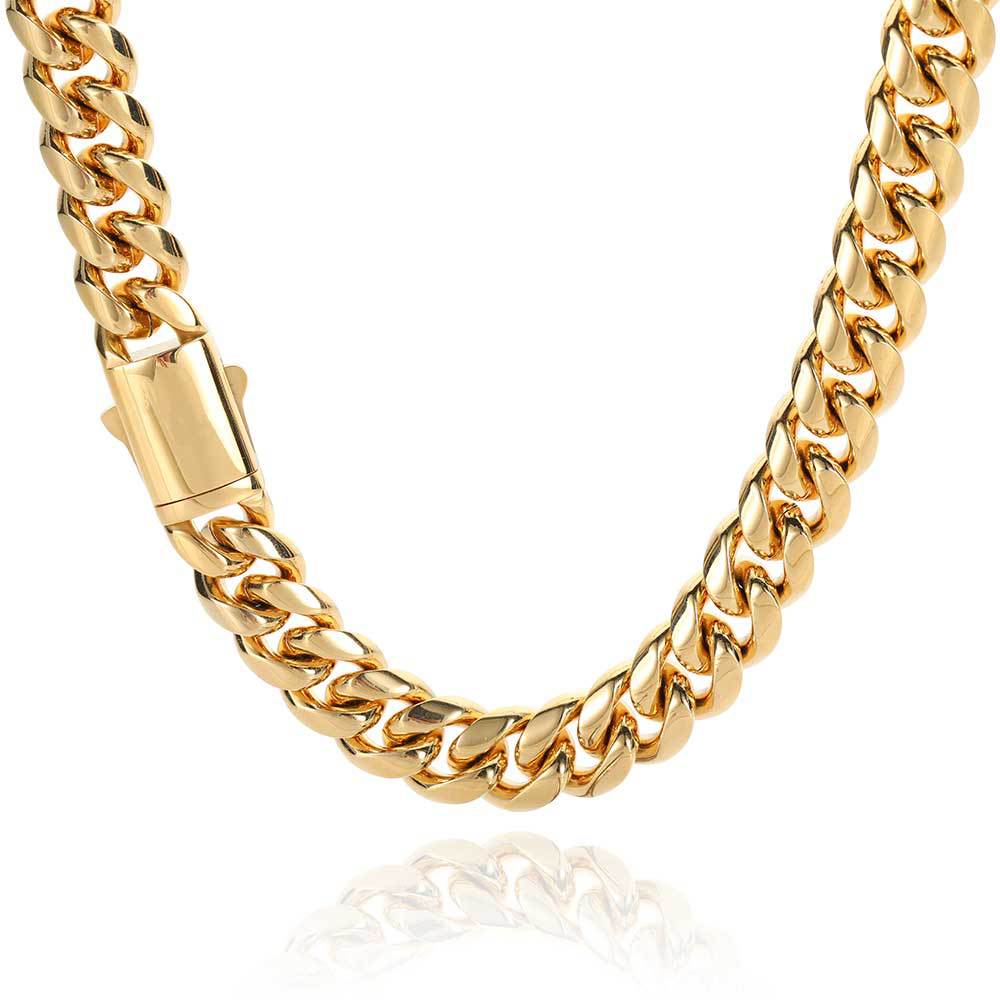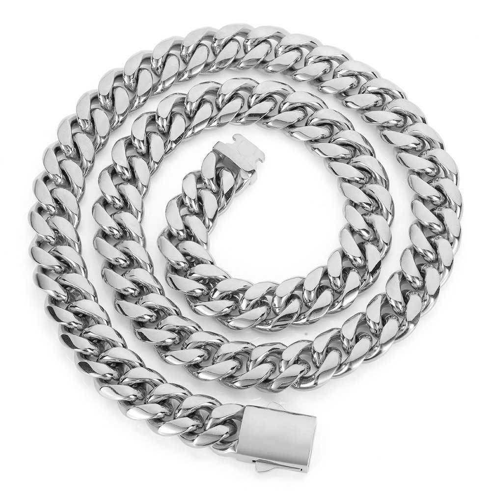 Hip-hop europeo y americano hebilla de resorte redondo esmerilado encriptado cadena cubana accesorios atuendo tendencia collar hombres joyería de acero de titanio personalización