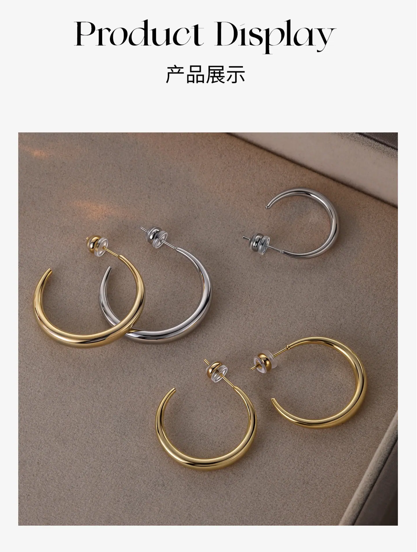 Pendientes de Aro Grandes de Círculo Liso Pequeño Exquisito de Alta Gama Oro Plata Retro Aguja de Plata Círculo Mujeres Simples Generosos Pendientes de Aro