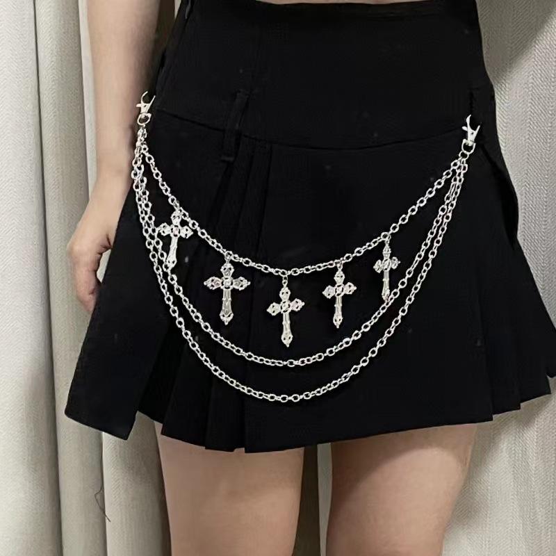 Estilo Gótico Temperamento Europeo y Americano Cruz Cadena de Cintura Multicapa Personalidad Cool Dulce Picante Hip-Hop Accesorio de Cadena para Pantalones para Mujer