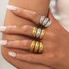 Joyería transfronteriza europea y americana acero inoxidable geométrico línea hueca anillo abierto diseño simple sentido de la moda joyería de mano venta al por mayor