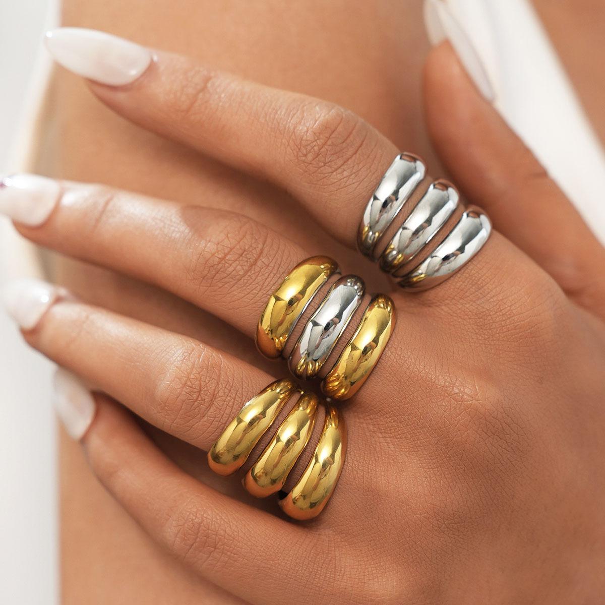 Compra Joyería transfronteriza europea y americana acero inoxidable geométrico línea hueca anillo abierto diseño simple sentido de la moda joyería de mano venta al por mayor al por mayor en Joom.pro
