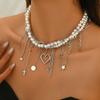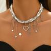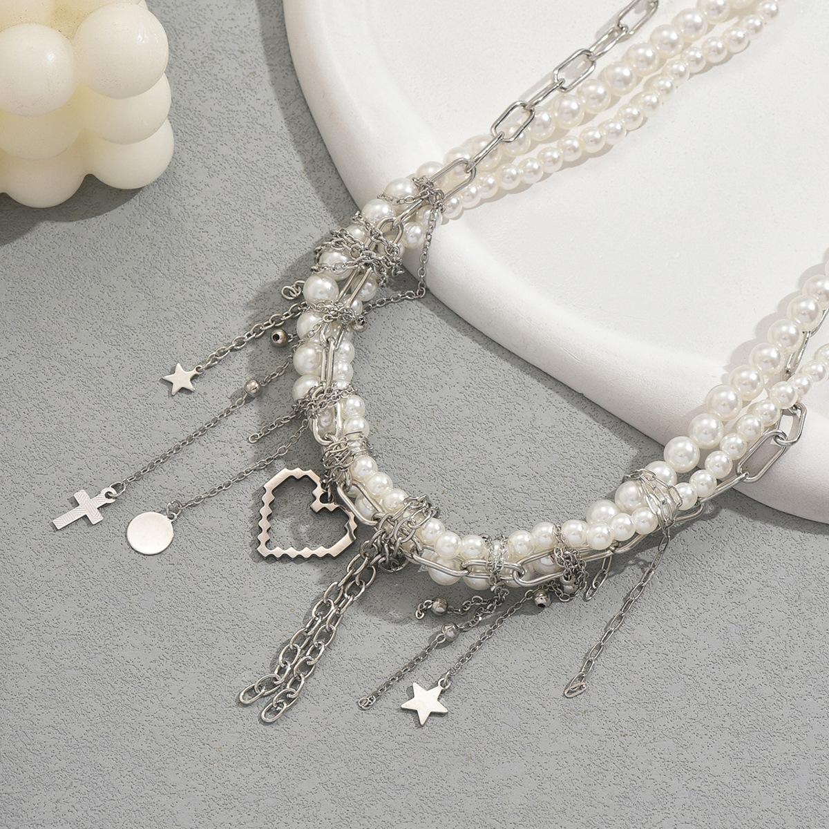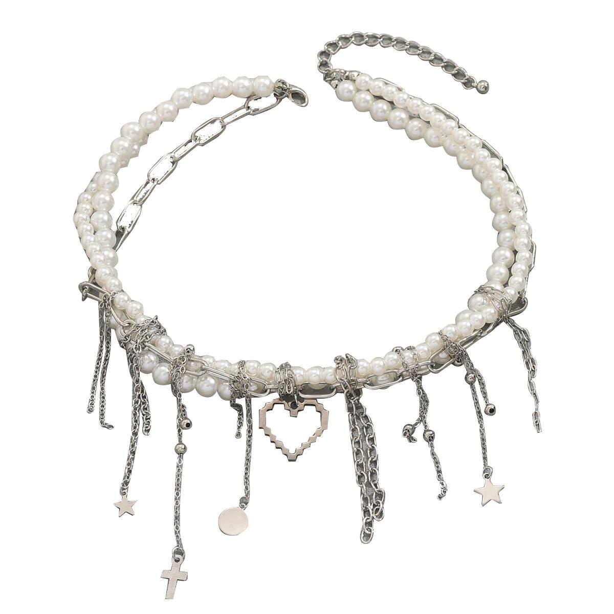 Collar Transfronterizo Estilo Europeo y Americano para Mujer Sensación de Alta Gama Envoltura de Perlas de Cuerda Cadena de Clavícula Multicapa Moda Borla Collar de Amor