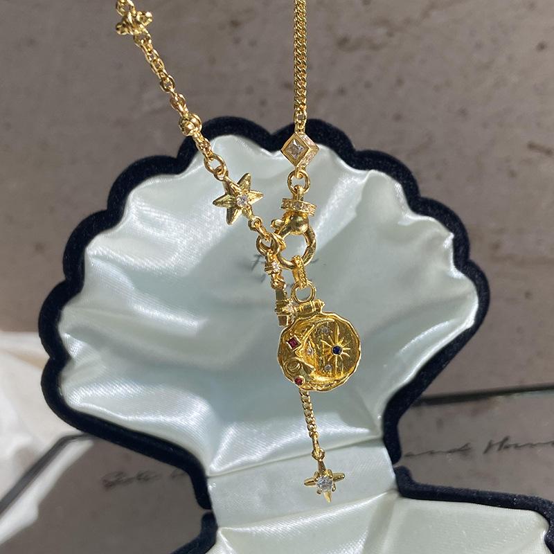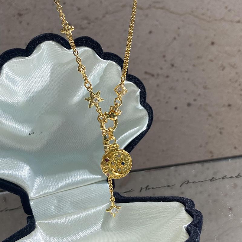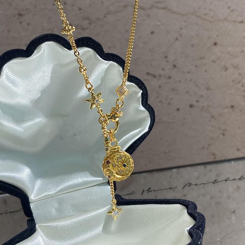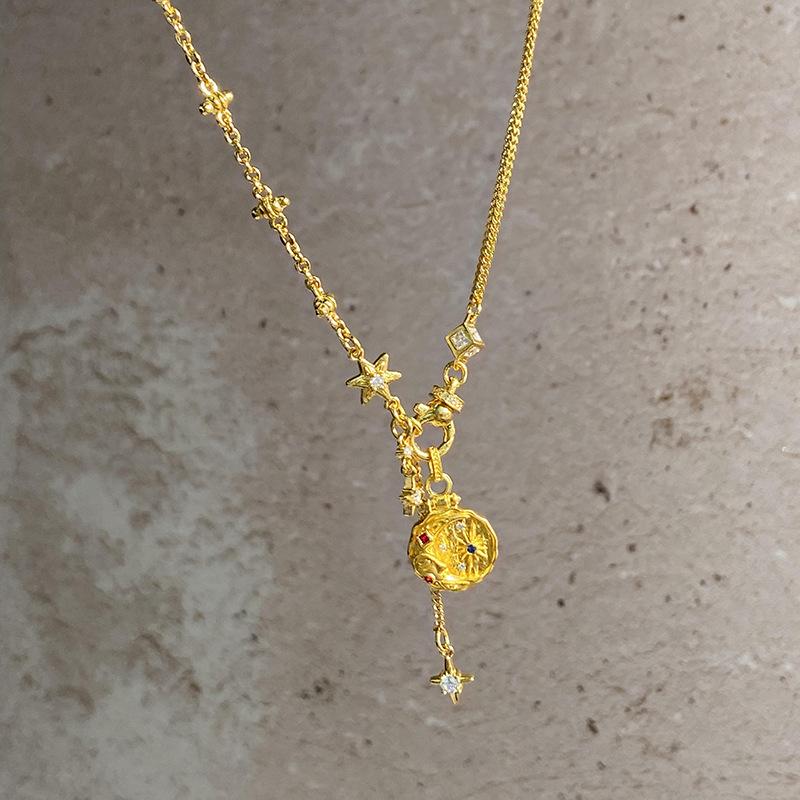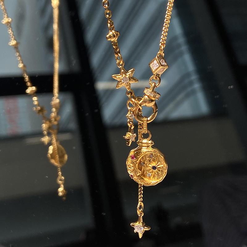 Collar con Colgante Redondo de Estrella de Zircón Moda Transfronteriza Nicho Cadena Clavicular Lujo Ligero Retro Joyería de Alta Gama al Por Mayor