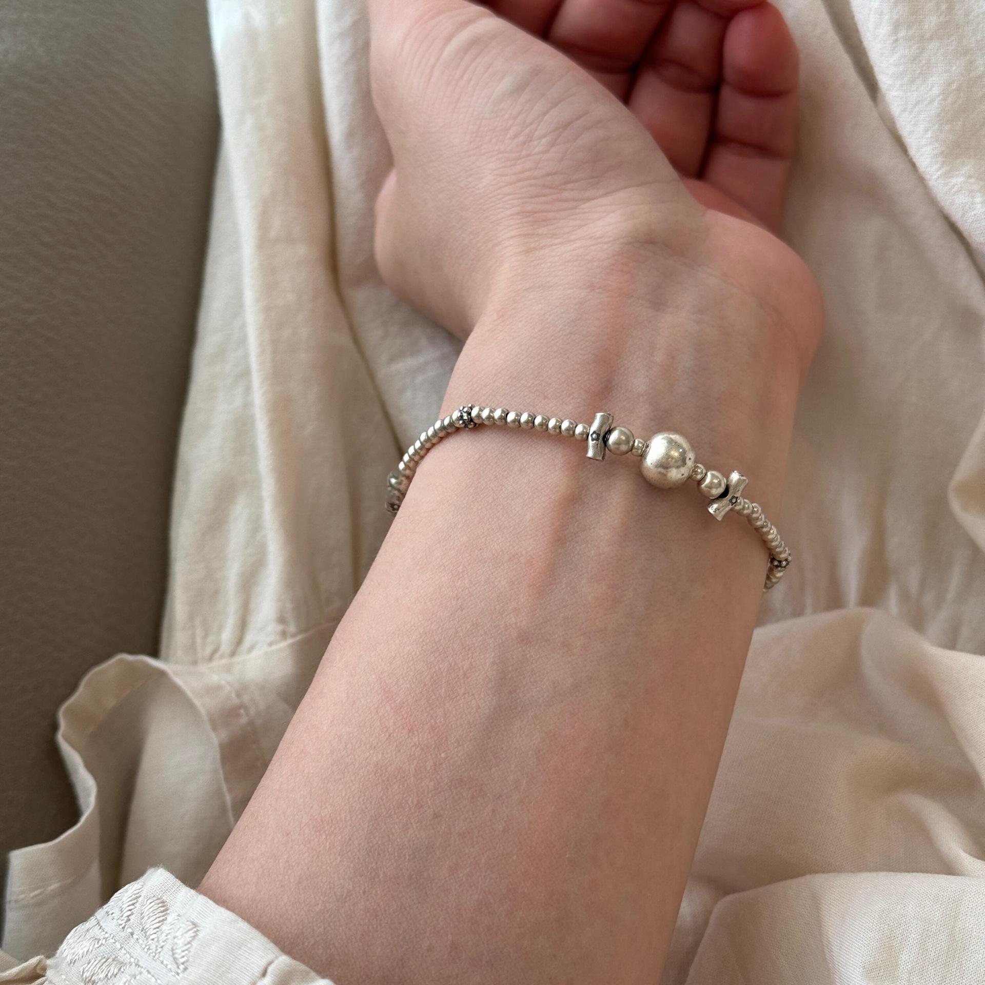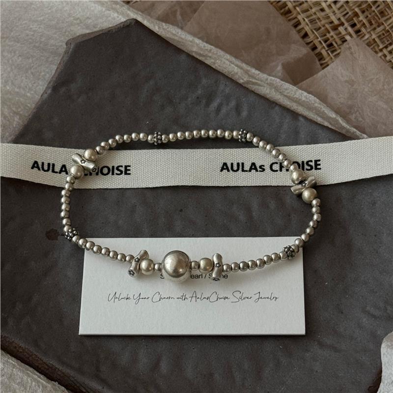 Pulsera de Cuentas Plateadas Envejecidas Estilo Coreano Diseño Nicho Retro Sentido de Alta Gama Corea ins Versátil Temperamento Joyería de Pulsera con Cuentas