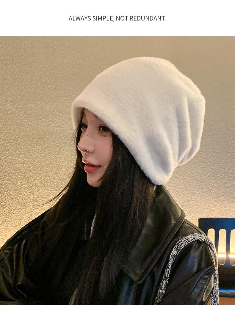 Color Sólido Simple Combinable Suave Felpa Jersey Gorro Otoño e Invierno Nuevo Doble Capa Grueso Cálido A Prueba de Frío Montón
