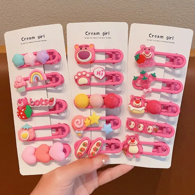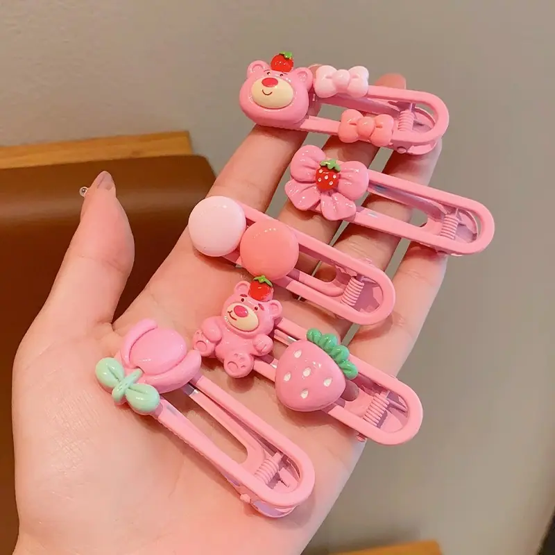 Accesorios para el Cabello de Niña Lindo Pasador para el Cabello de Dibujos Animados de Fresa y Oso para Niñas Tocado Dulce para Bebé Clip para Flequillo Lateral