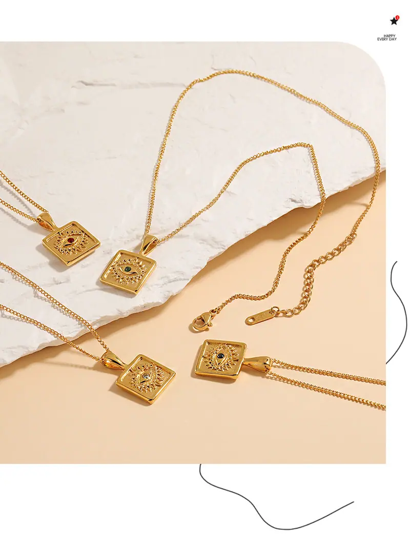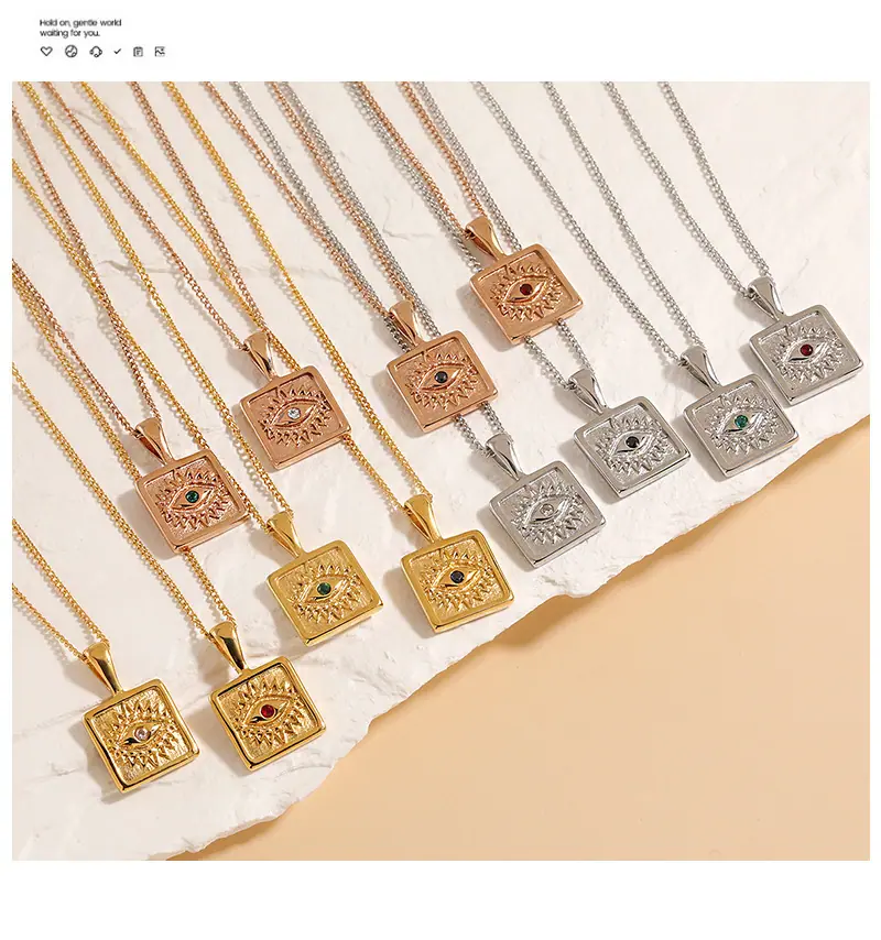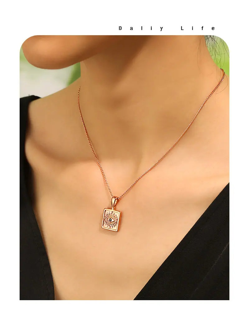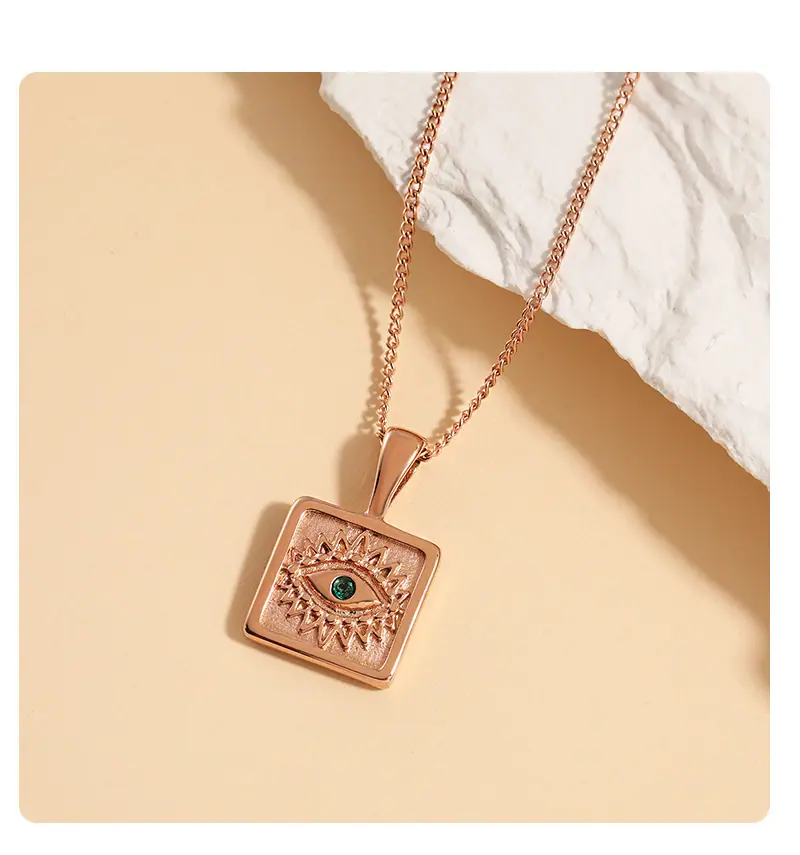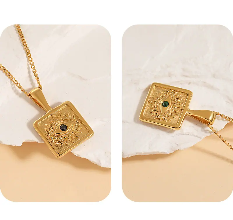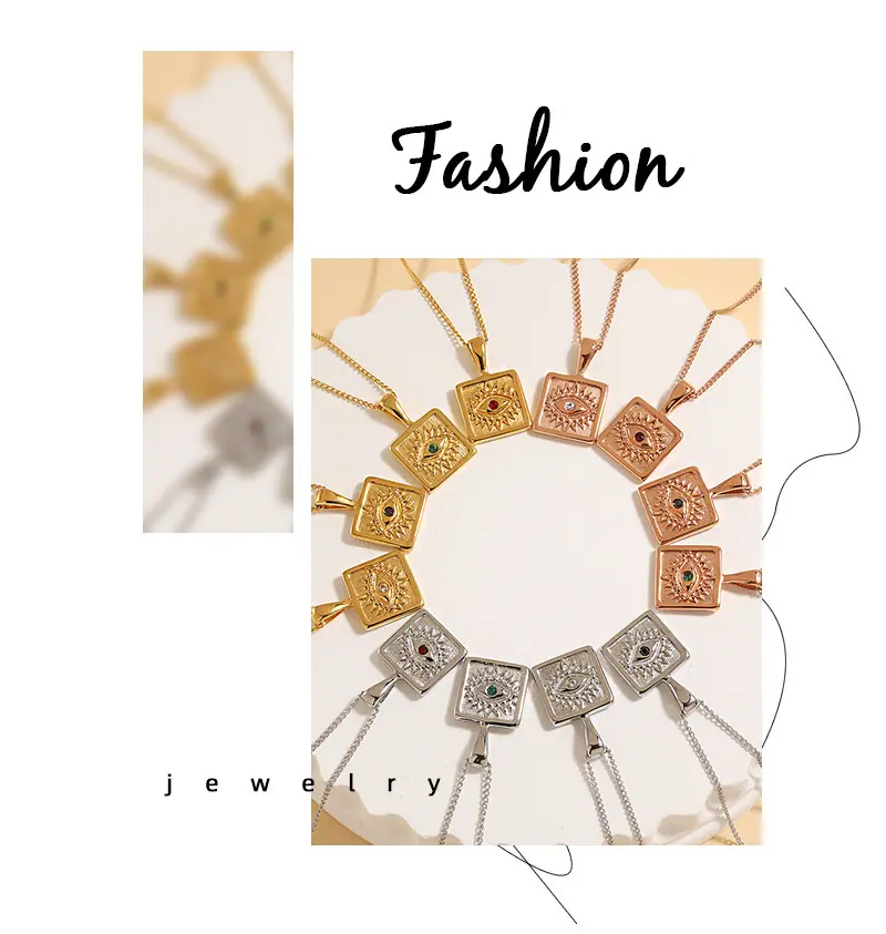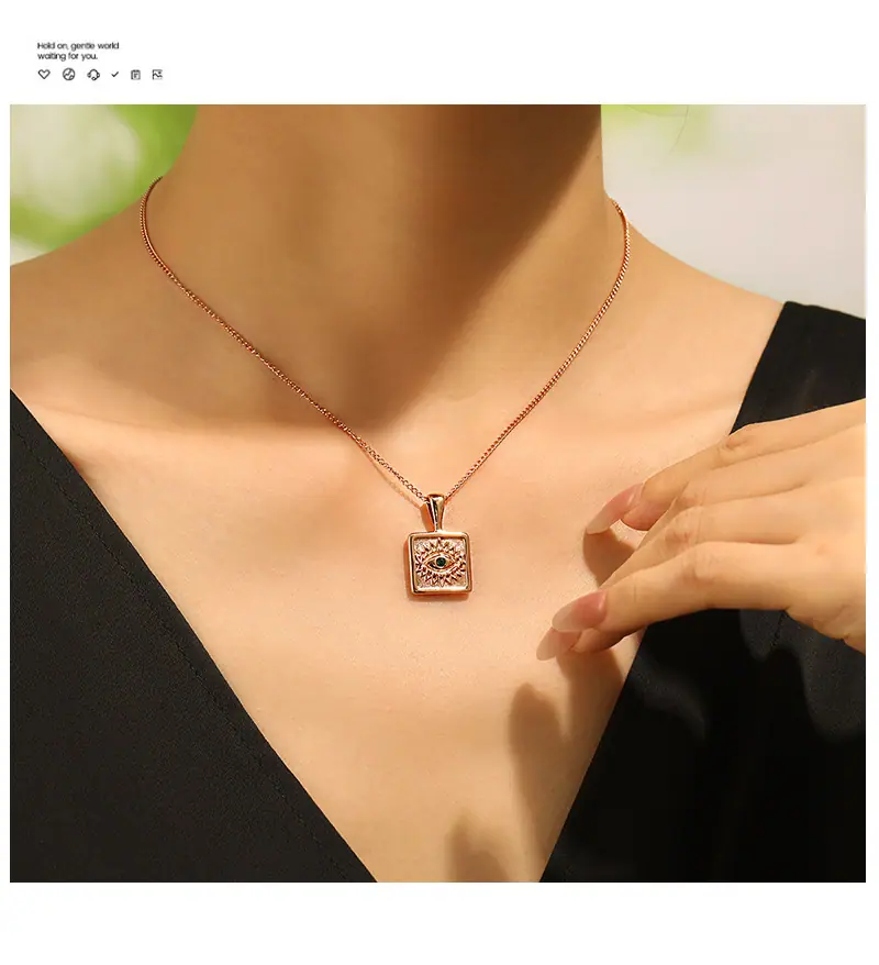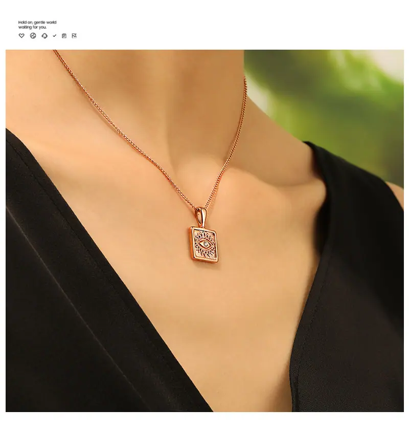 Collar con colgante cuadrado de ojos nuevos de moda estilo ins europeo y americano para mujer, cadena de clavícula de acero inoxidable chapado en oro PVD de 18 quilates