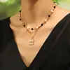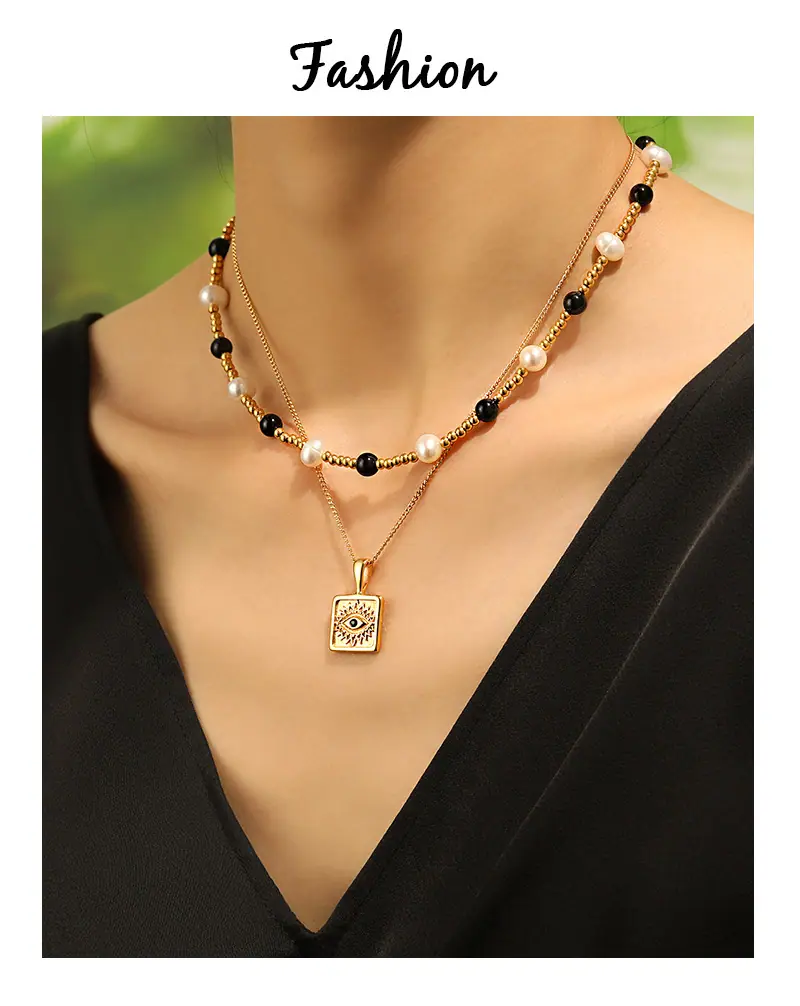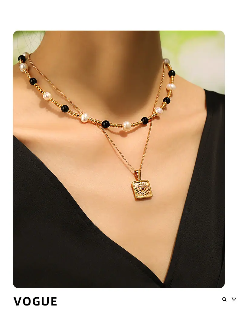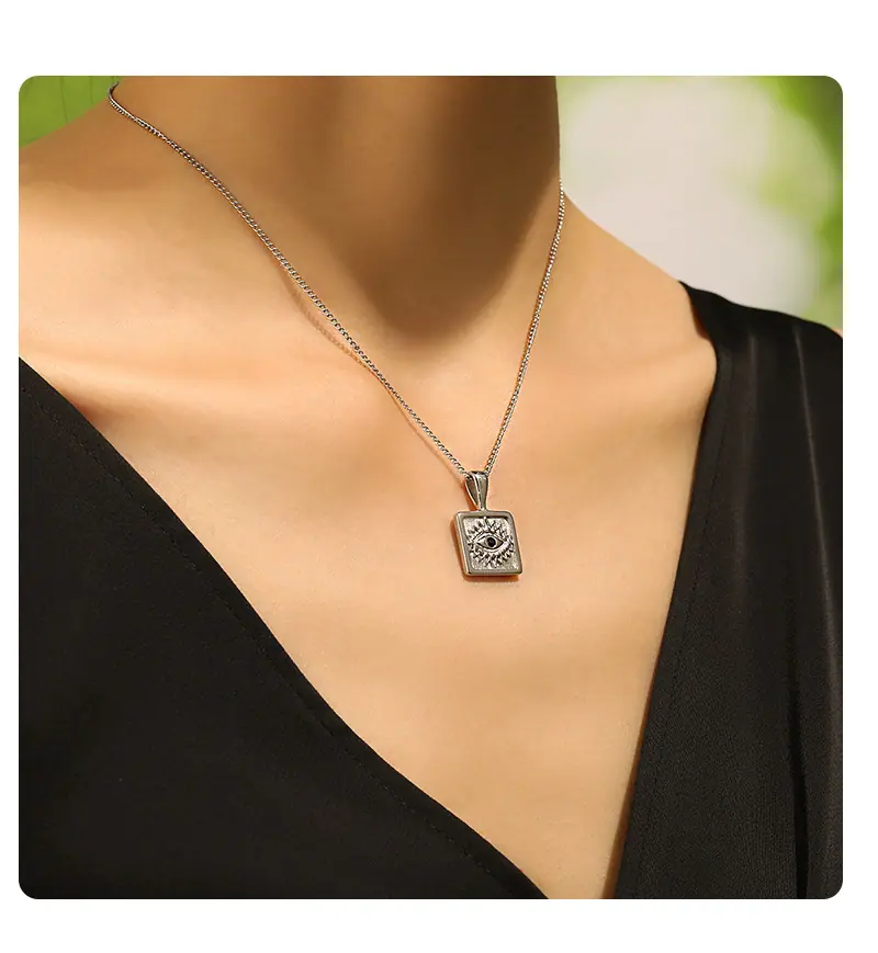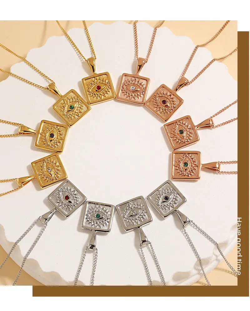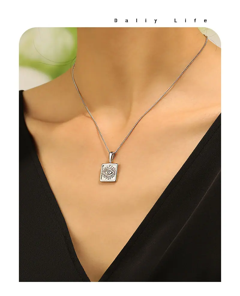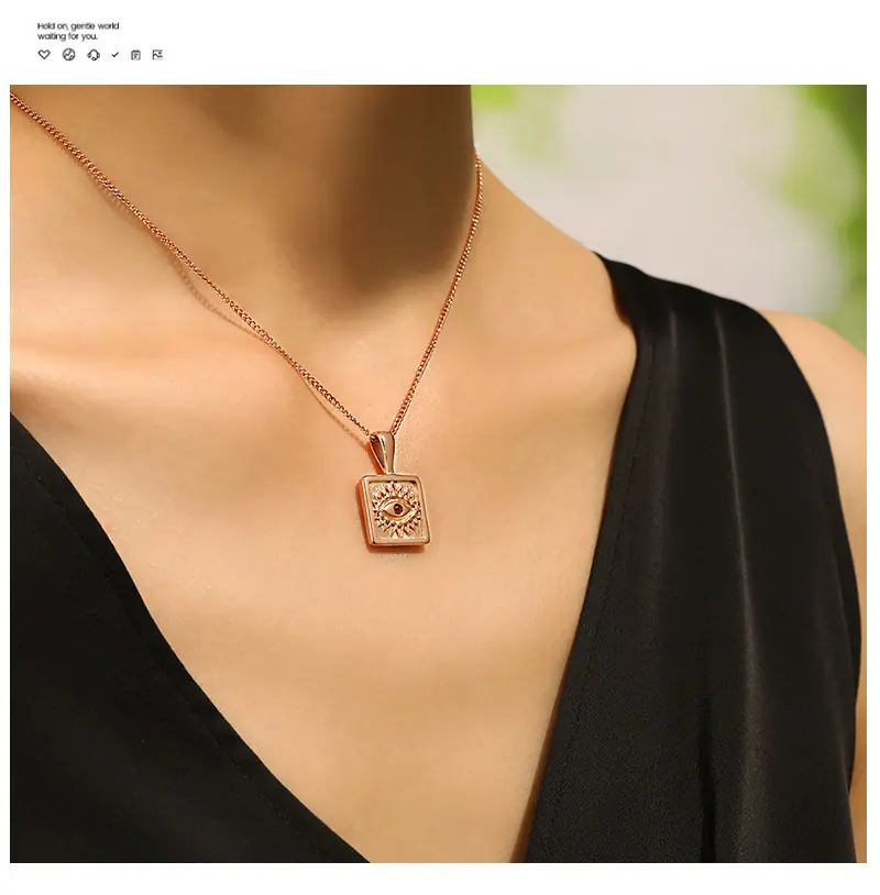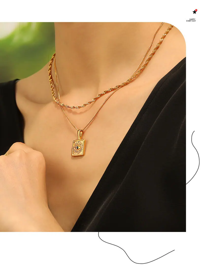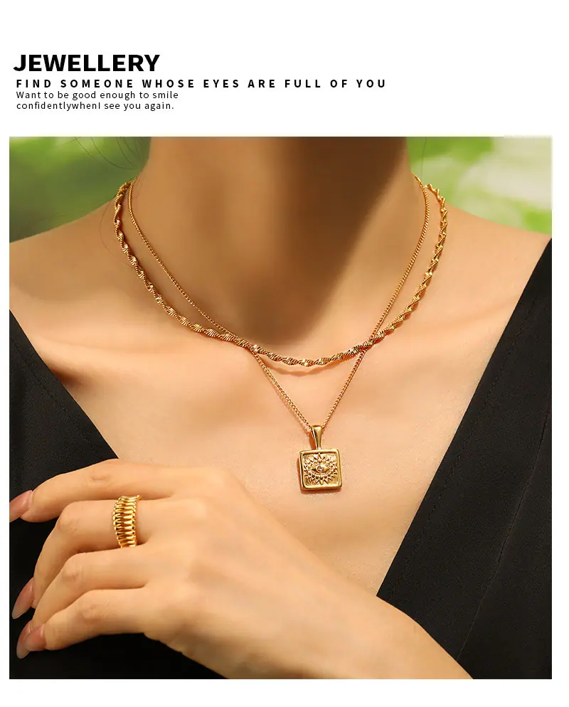 Collar con colgante cuadrado de ojos nuevos de moda estilo ins europeo y americano para mujer, cadena de clavícula de acero inoxidable chapado en oro PVD de 18 quilates