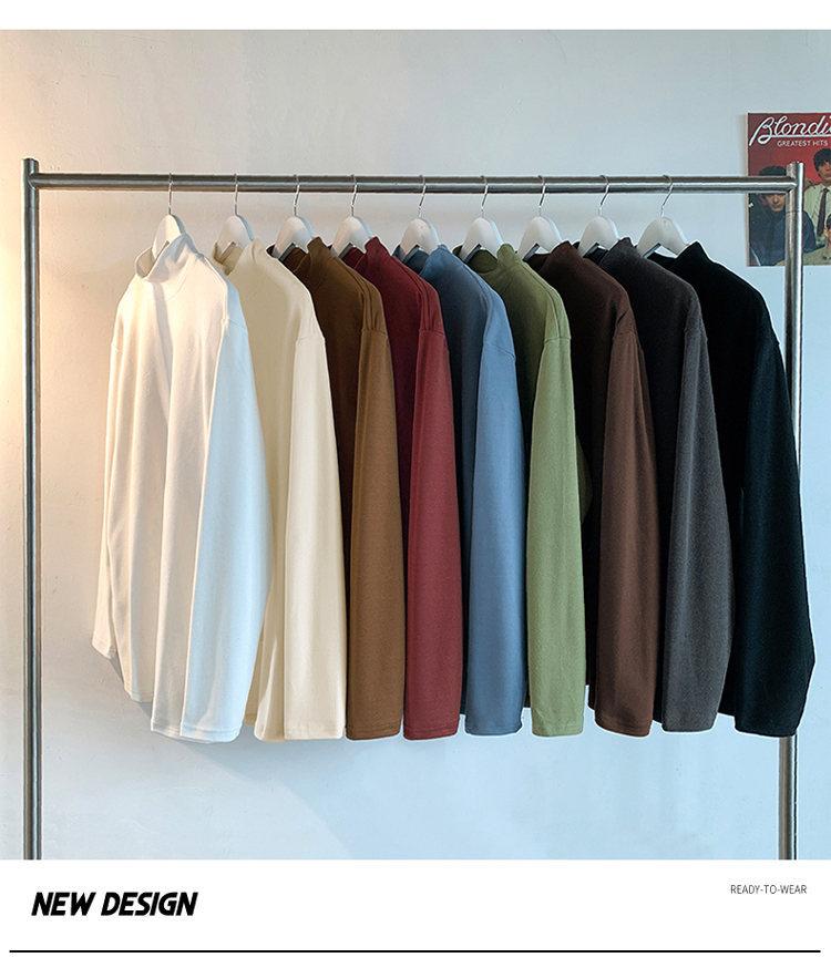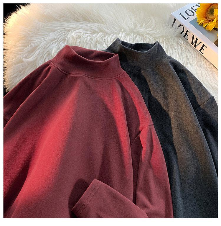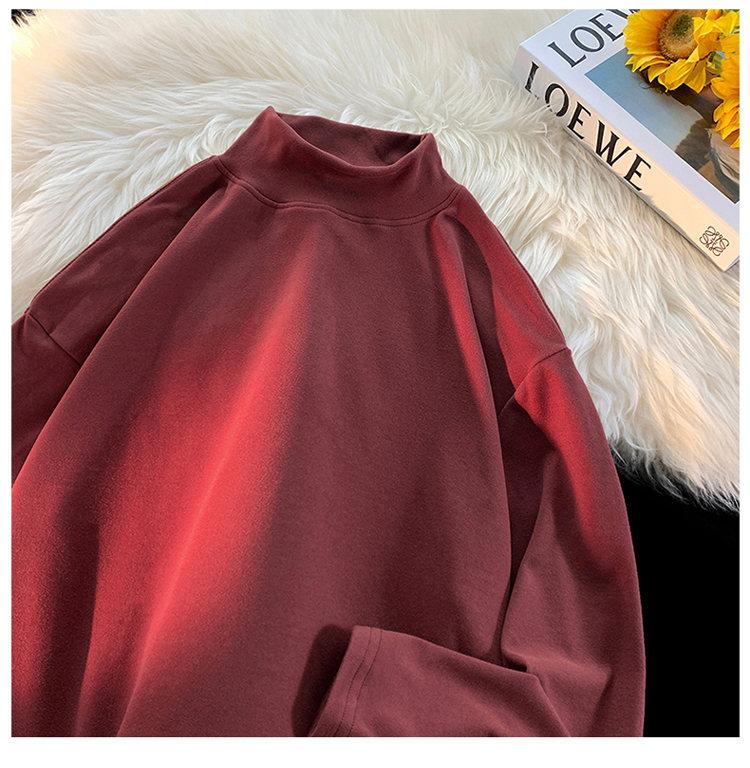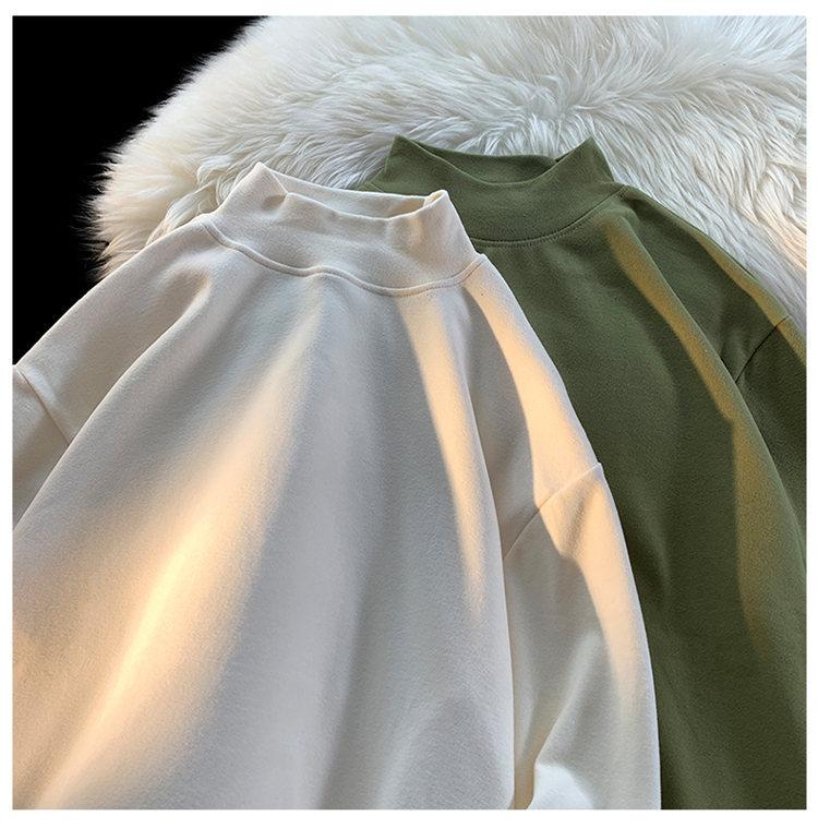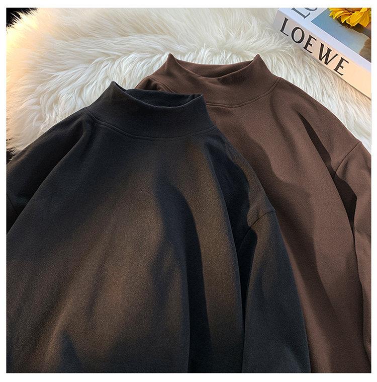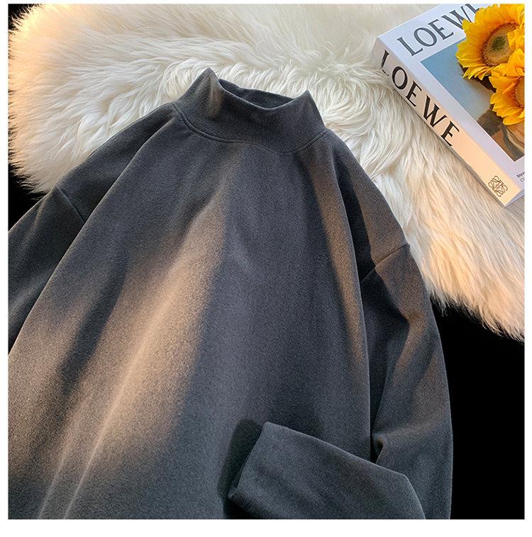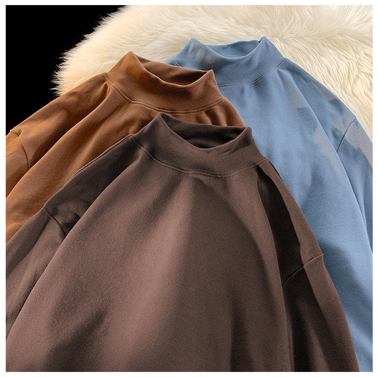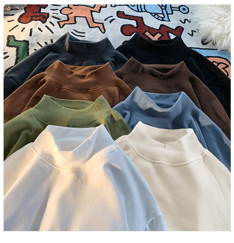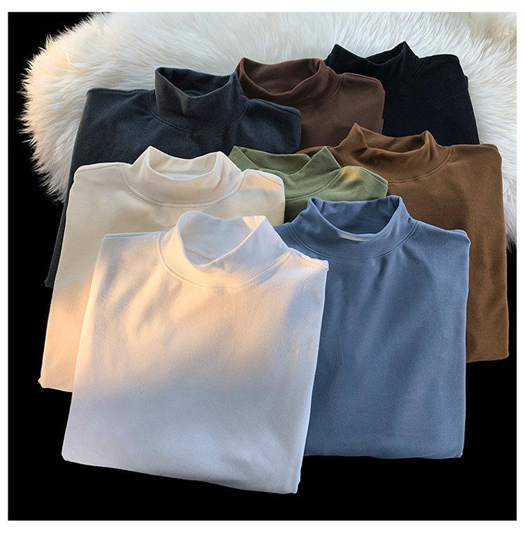 2025 Nueva Camiseta Interior de Cuello Alto para Hombre Terciopelo Alemán Cálida Color Puro Simple Holgada Casual Camiseta Base