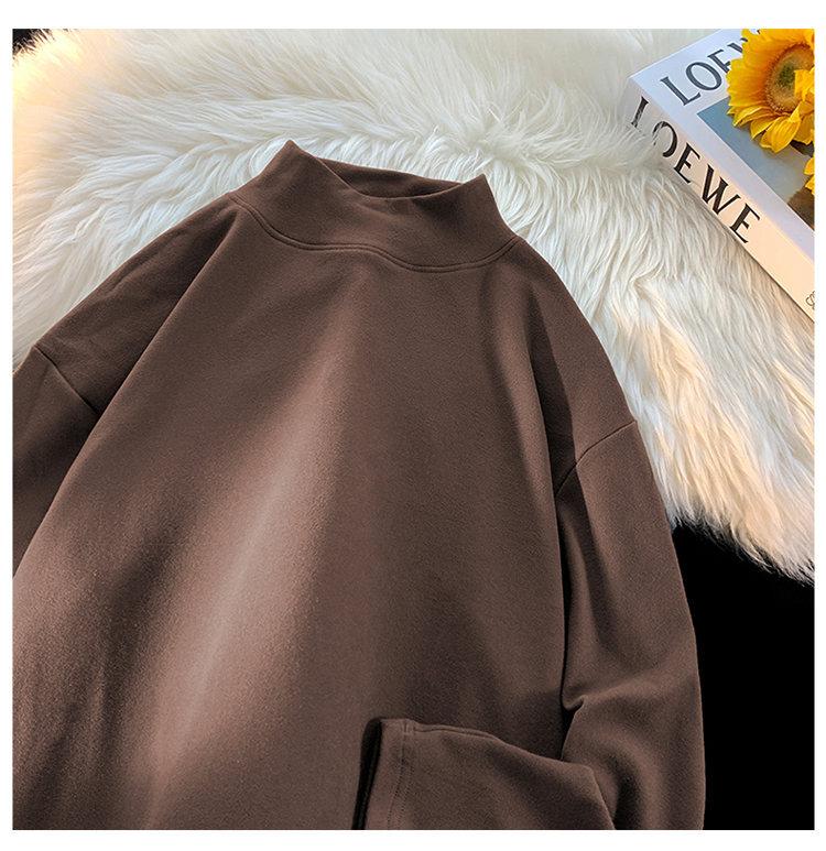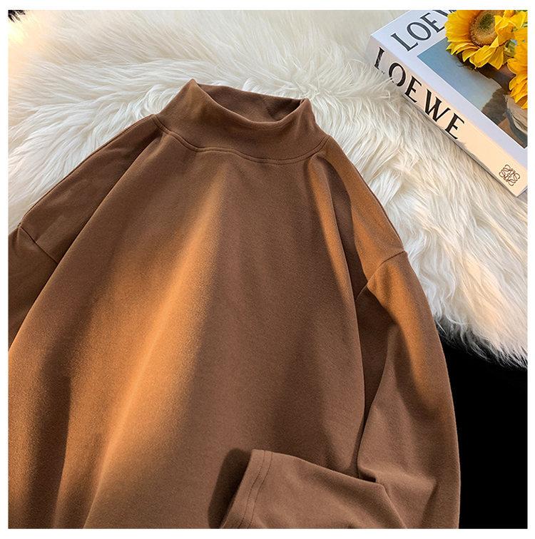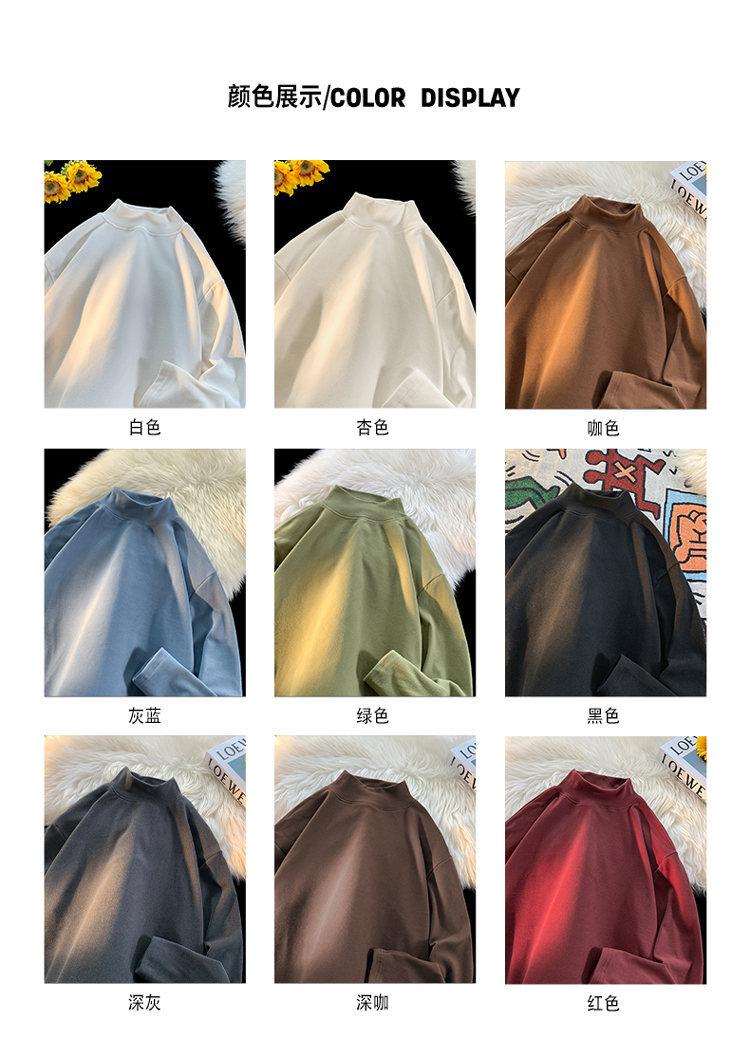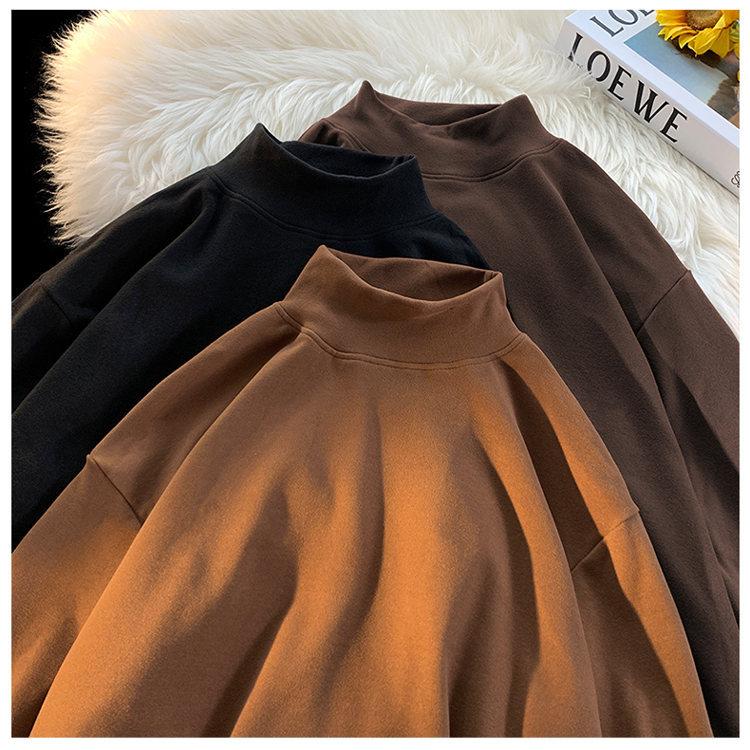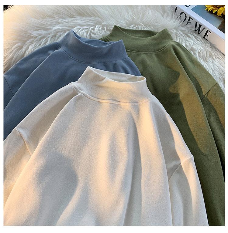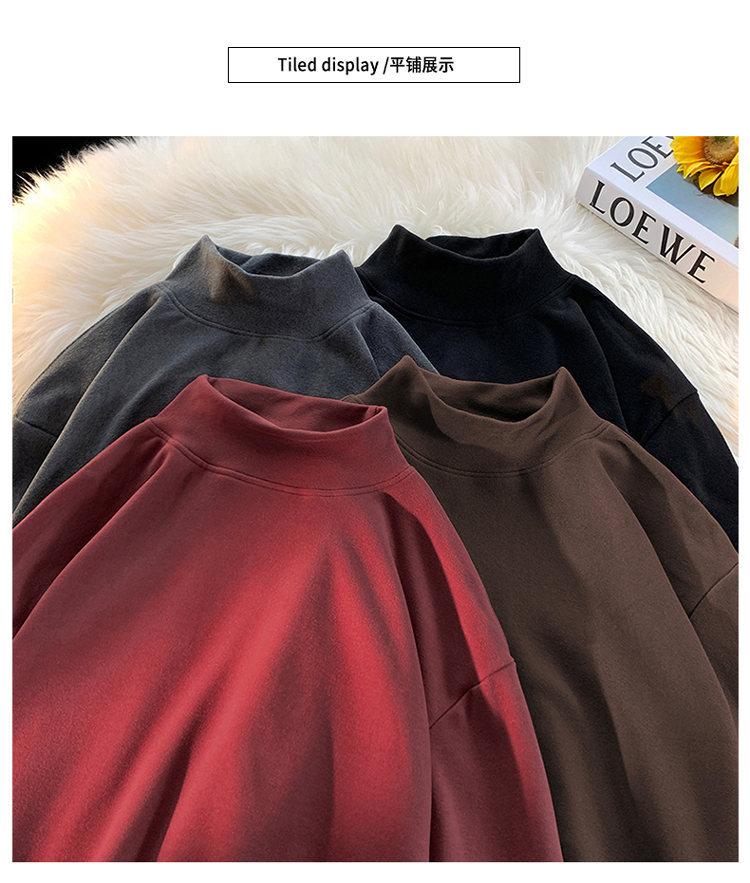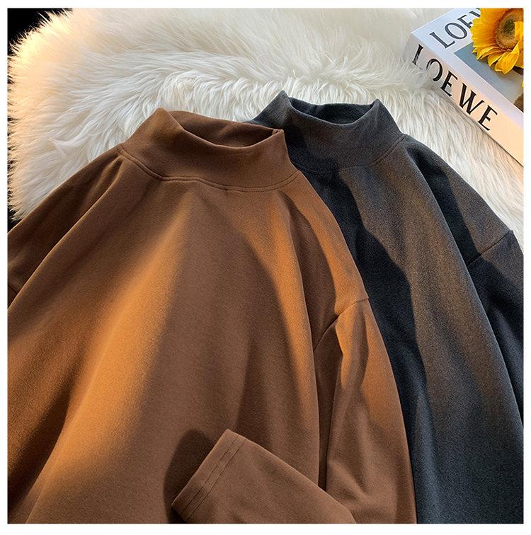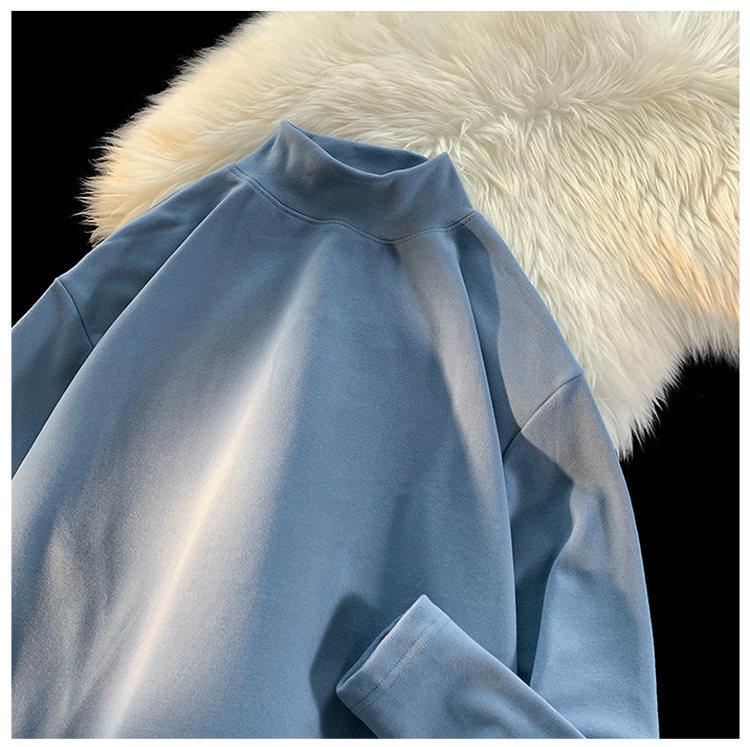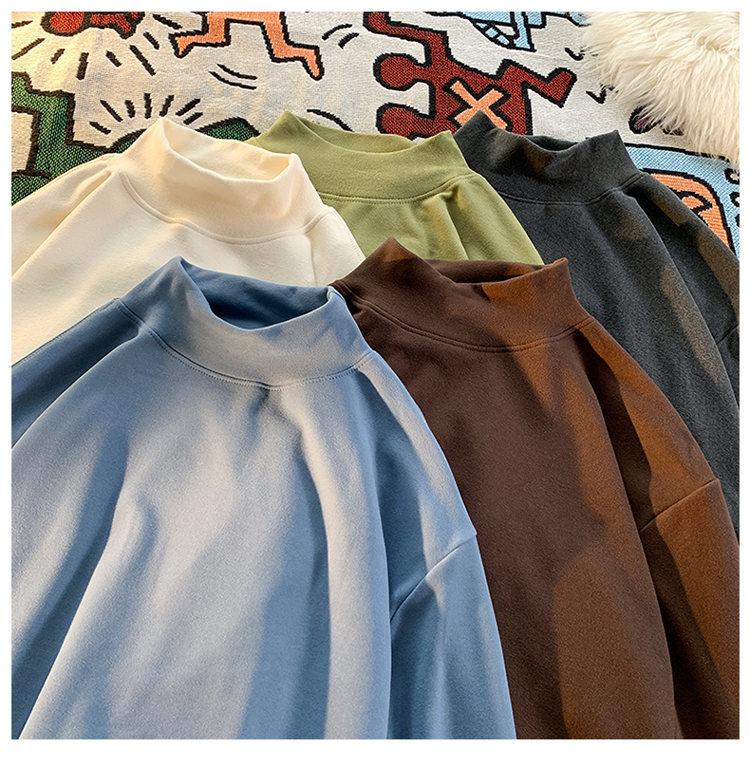 2025 Nueva Camiseta Interior de Cuello Alto para Hombre Terciopelo Alemán Cálida Color Puro Simple Holgada Casual Camiseta Base