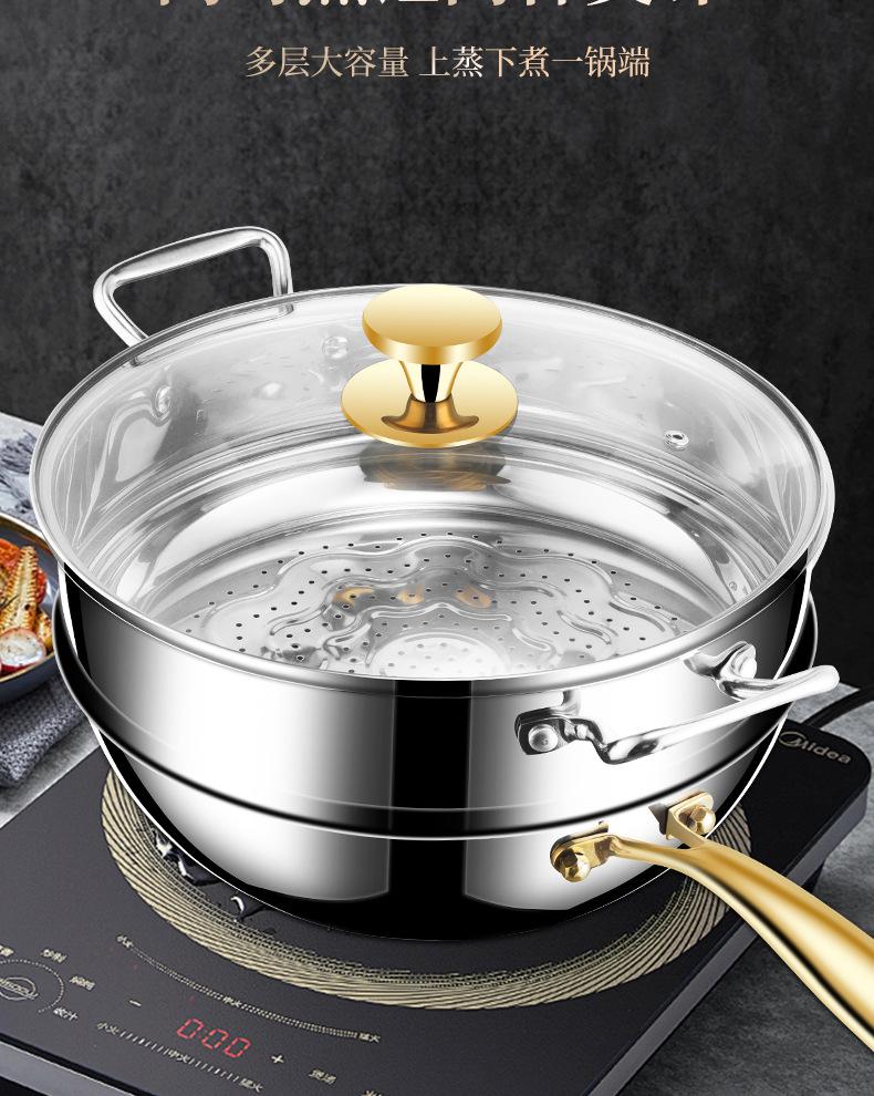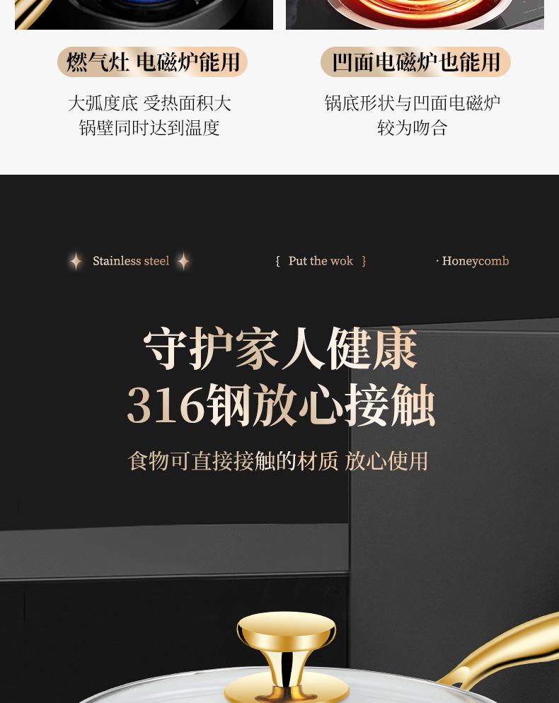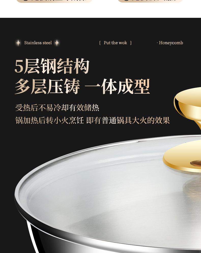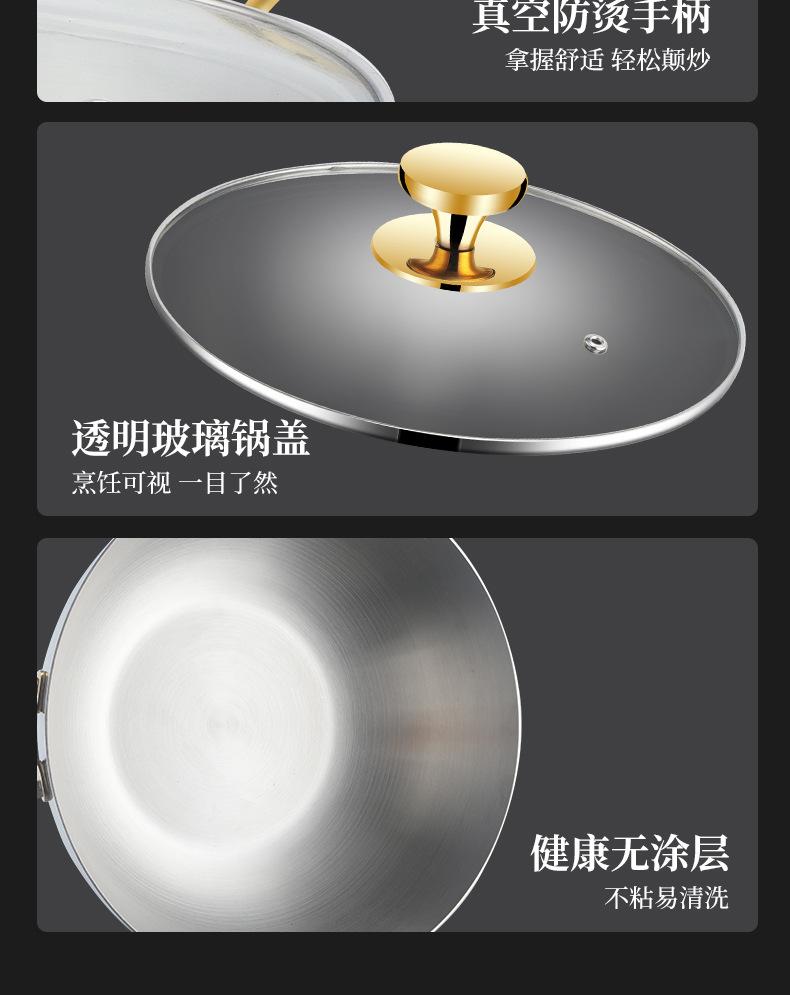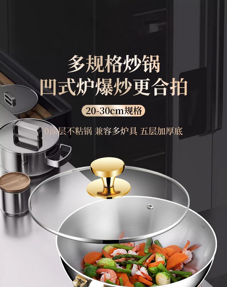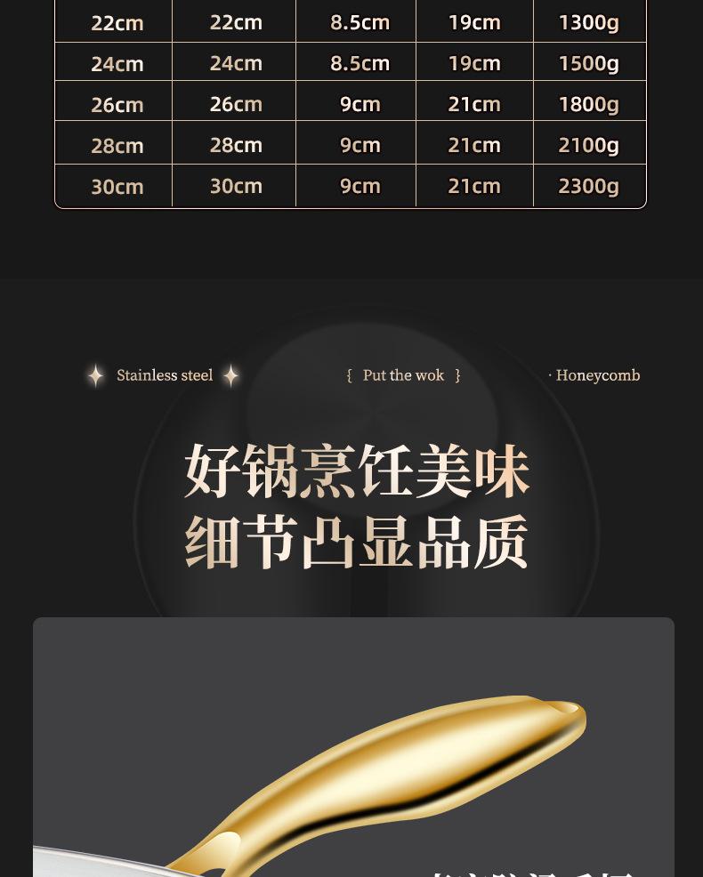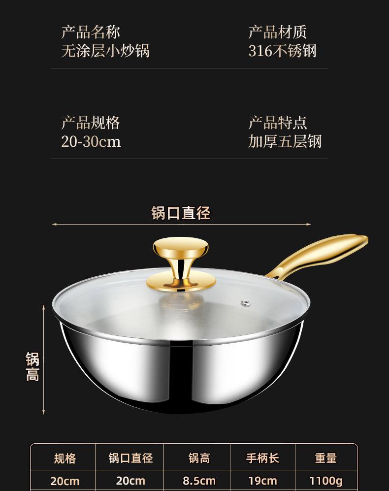 Gold handle-20cm mirror small wok (with lid), Gold handle-22cm mirror small wok (with lid), Gold handle-24cm m...