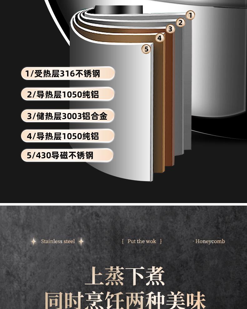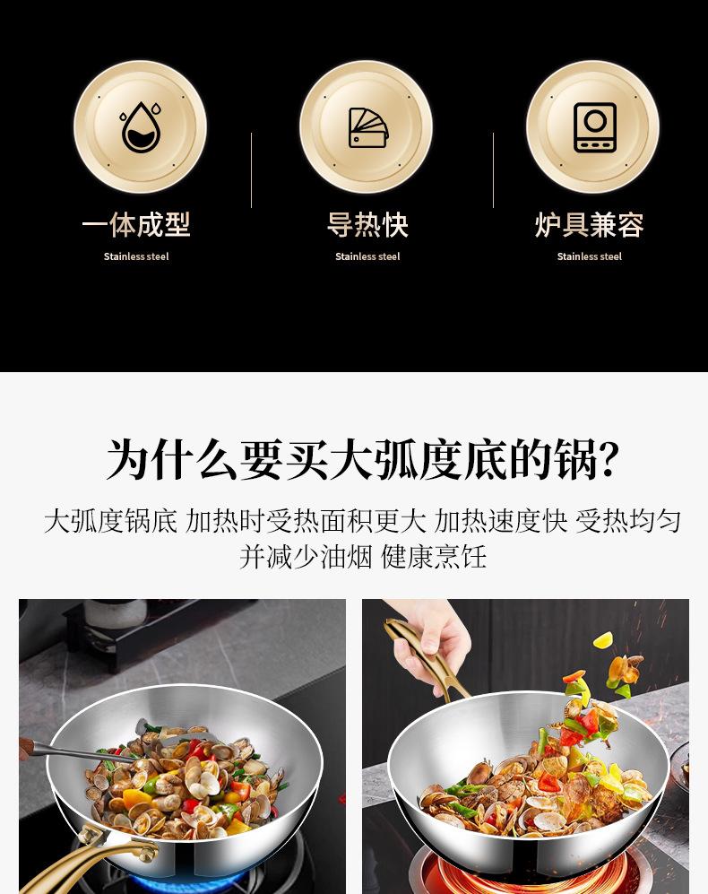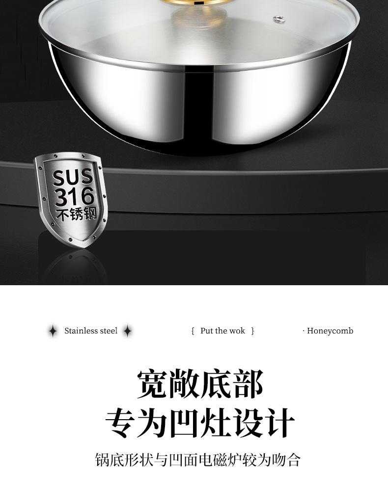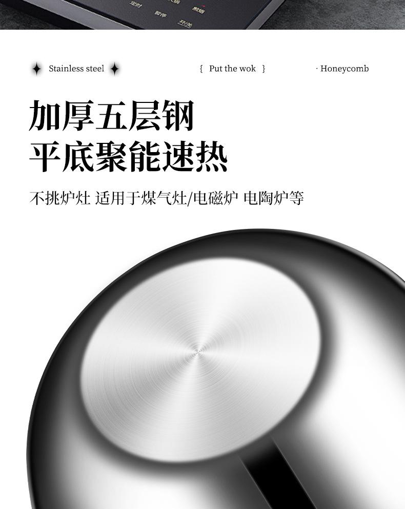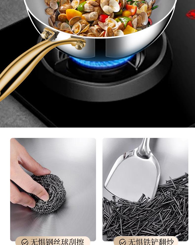 Wok de Acero Inoxidable 316 para Hogar Fondo Plano Sartén sin Recubrimiento Sartén para Freír Sartén Antiadherente Espesor Especial para Cocina de Inducción