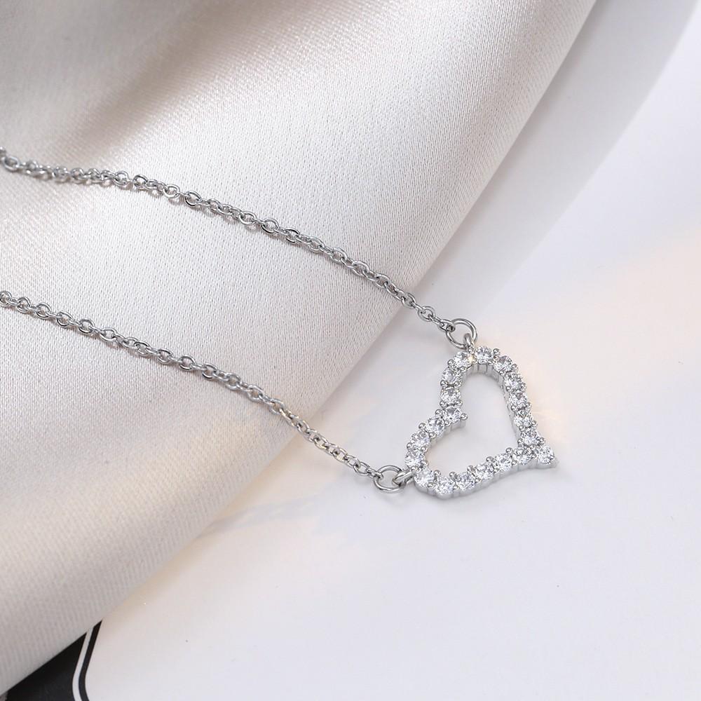 Collar de Acero de Titanio que las Mujeres Aman Zirconia Estilo Ins Red Temperamento Corazón de Durazno Dulce Colgante Hueco en Forma de Corazón Cadena para Clavícula Mujer