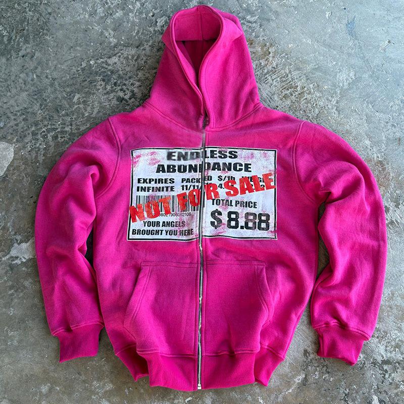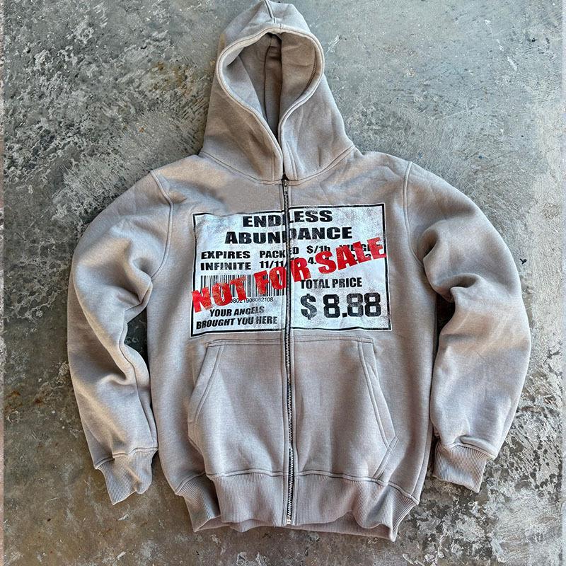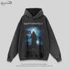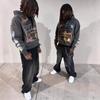 Moda Hip Hop Americana Street Retro Tendencia Estampado de Letras Cárdigan con Capucha Sudadera Suelta Casual Chaqueta con Cierre