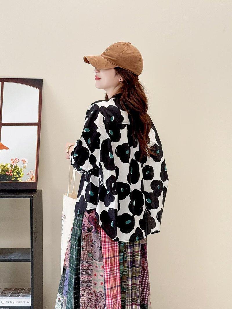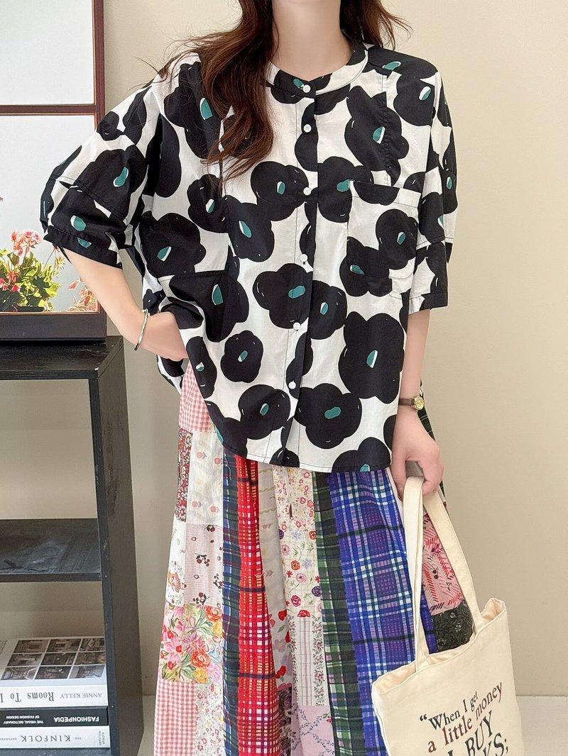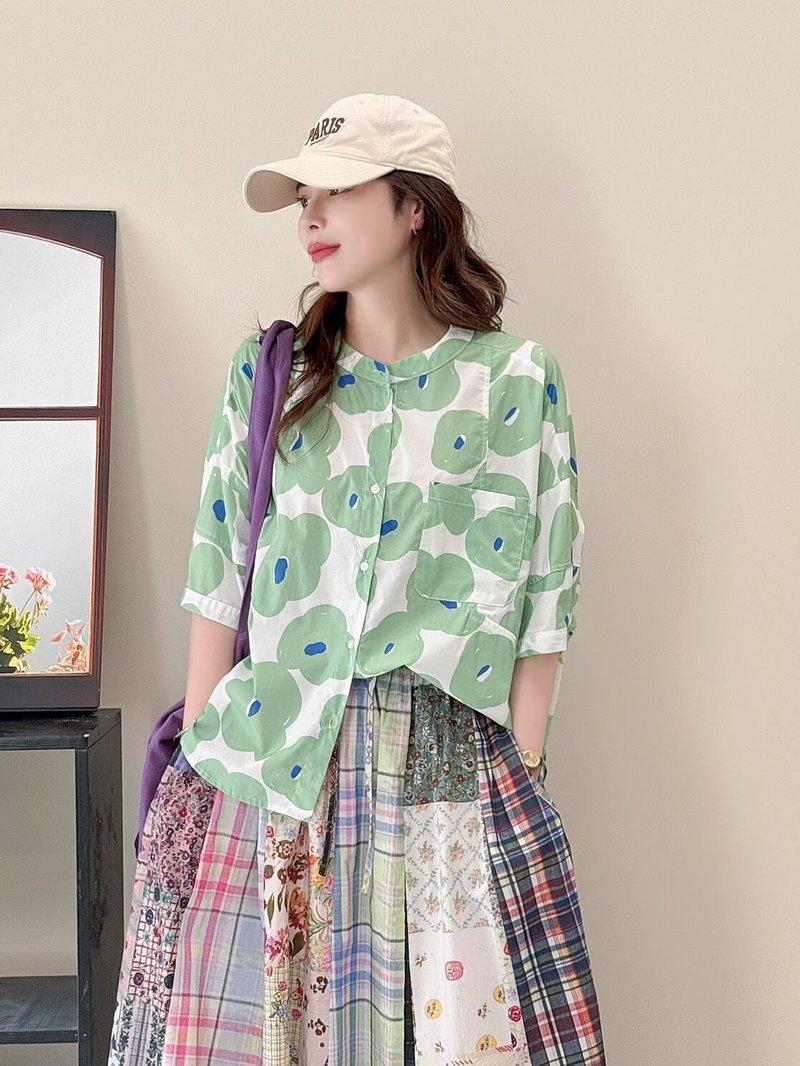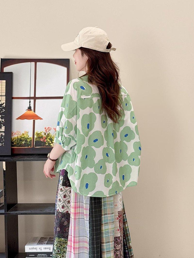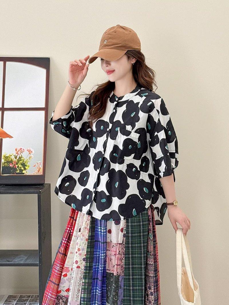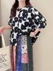 Camiseta de Manga Corta para Mujer Estilo Coreano Verano 2025 Estampado de Flores Graffiti Versión Holgada Grande