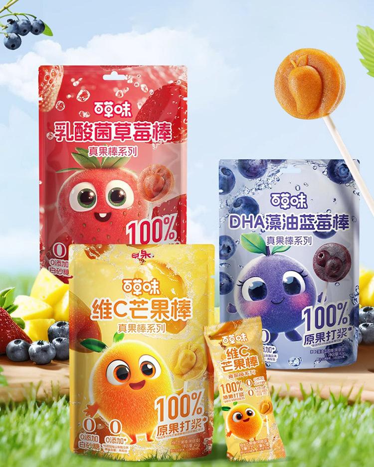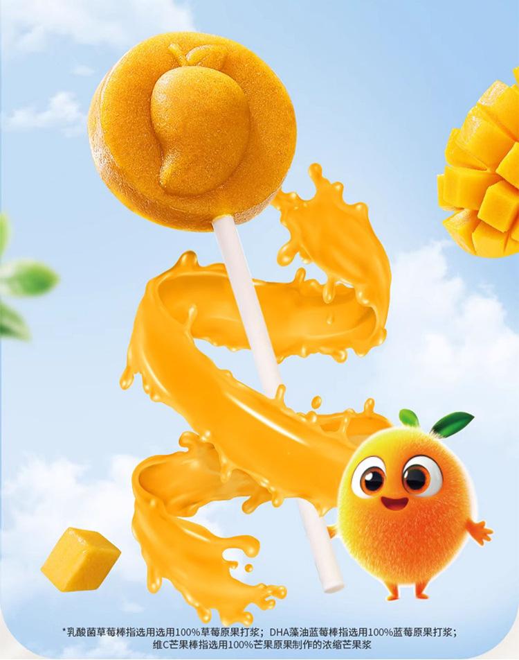Baicao Wei Vitamina C Mango Stick Aceite de Algas DHA Arándano Stick Bacterias Lácticas Fresa Stick 42g Snacks para Niños Barra de Fruta