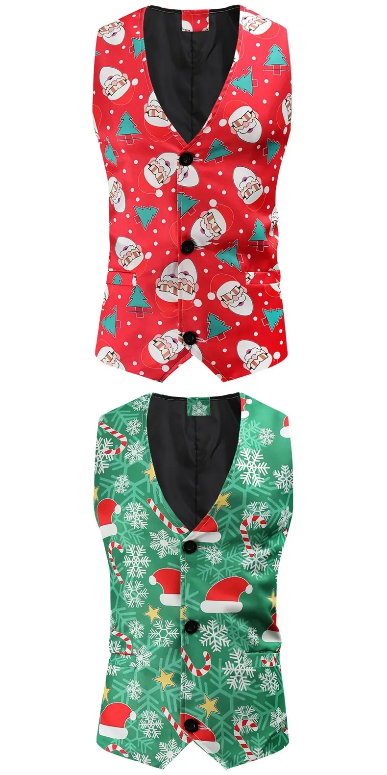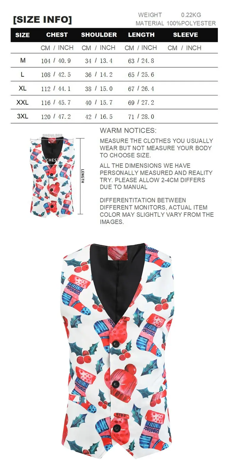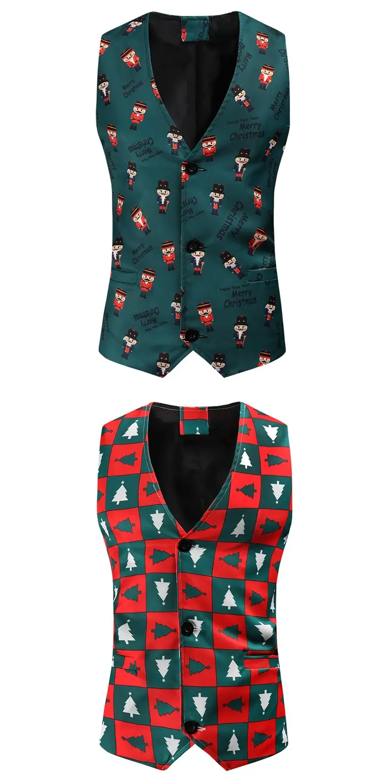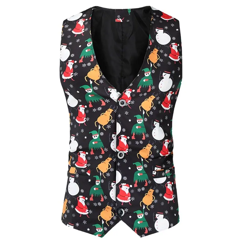 Chaleco de Traje Nuevo para Hombre 2021 Estampado Navideño Chaleco Casual Algodón de Pierna Recta Ajustado para Hombre