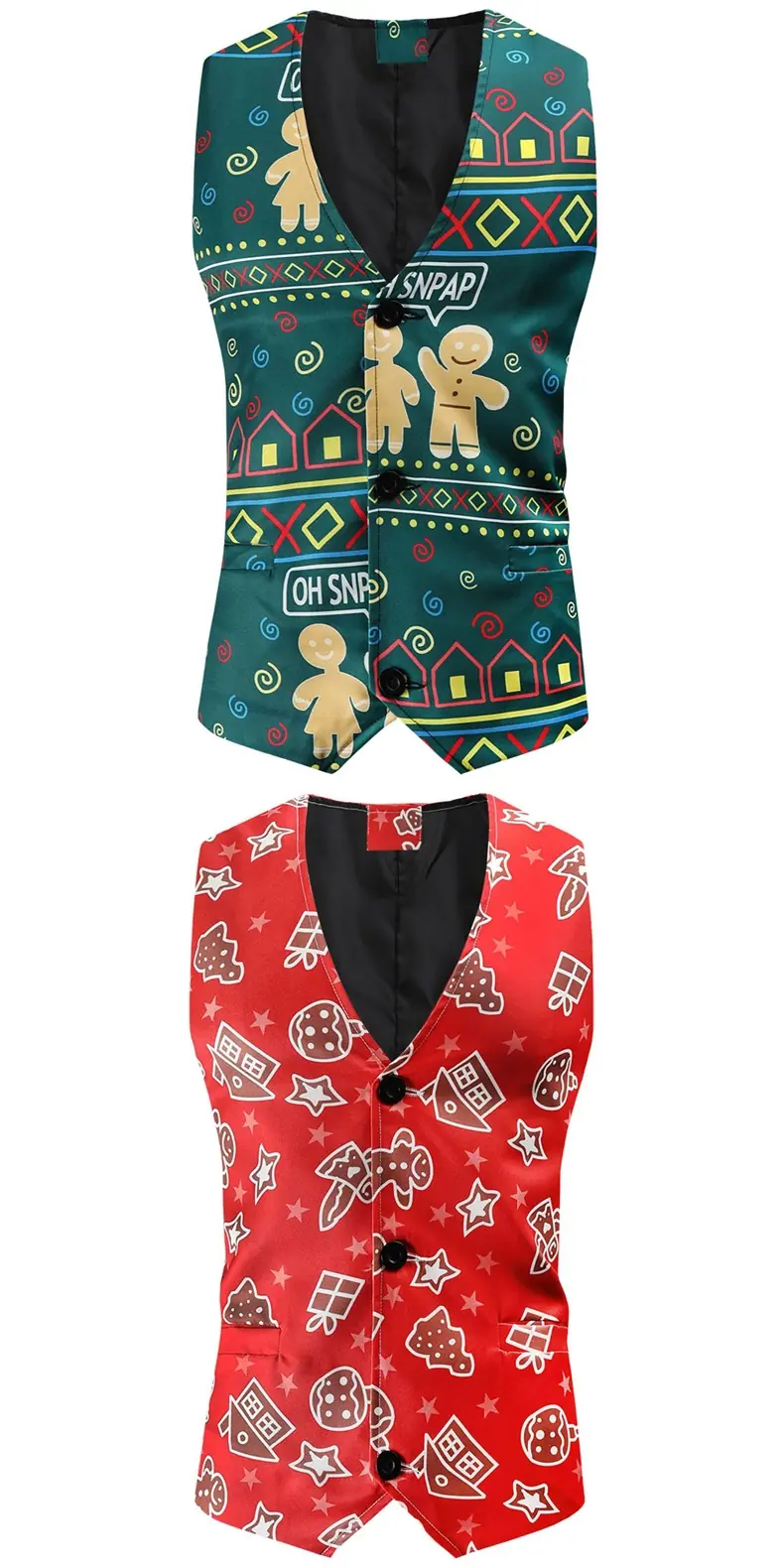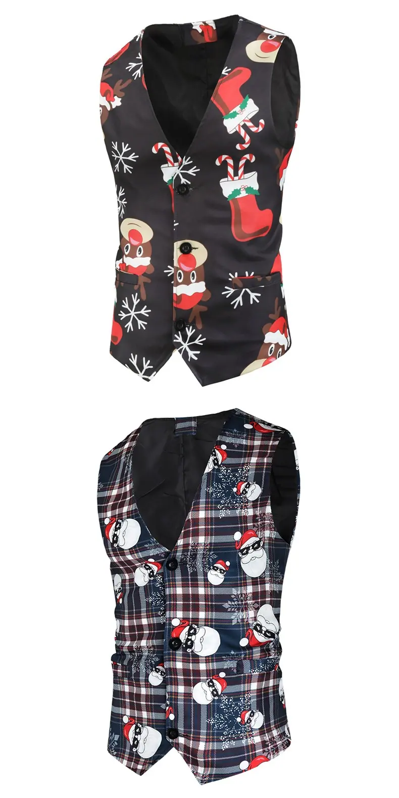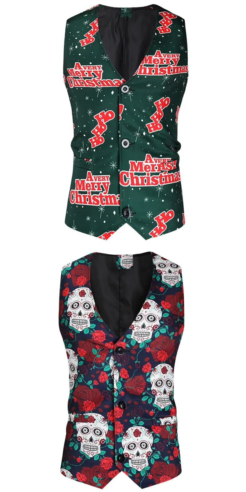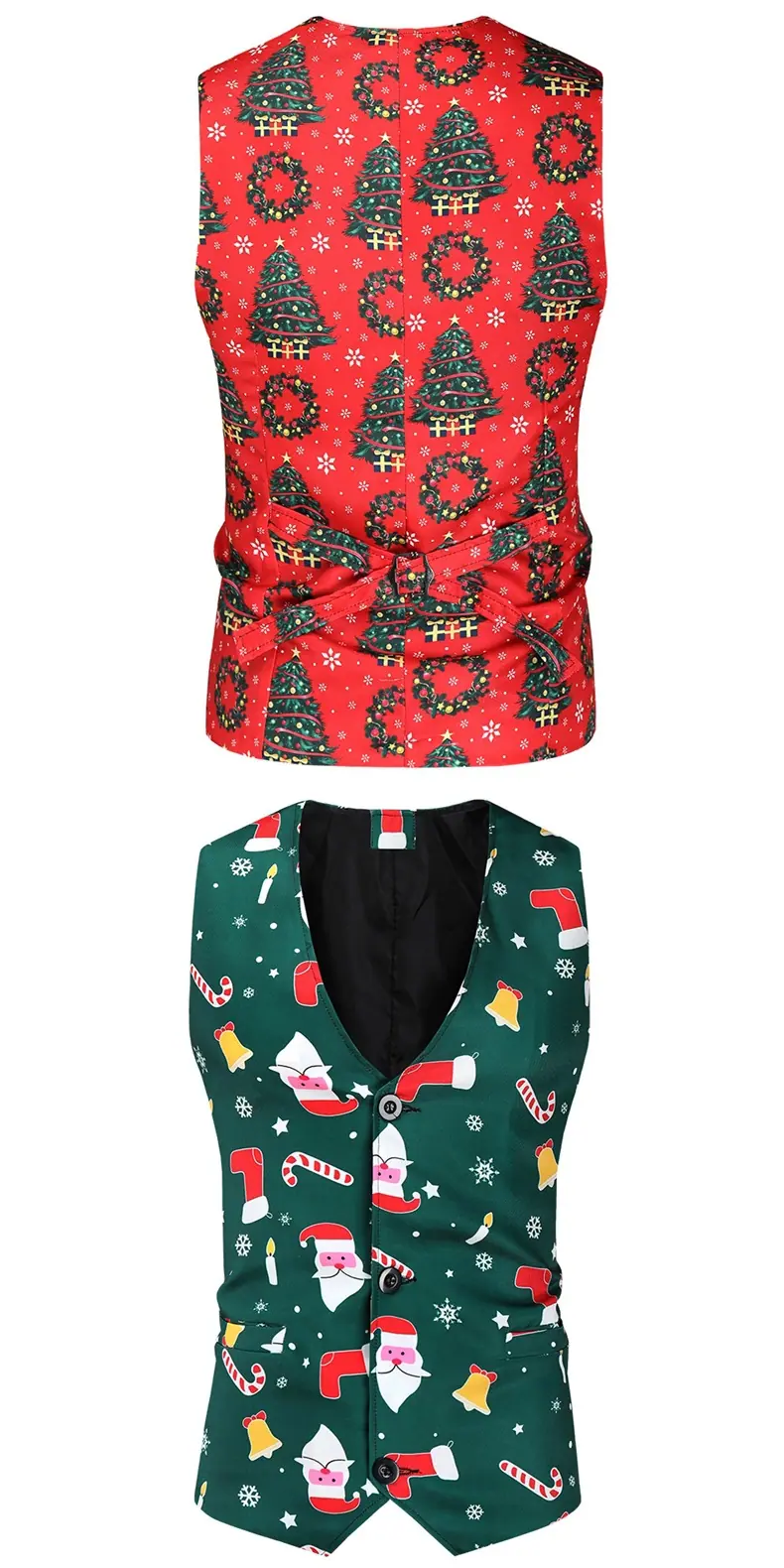 Chaleco de Traje Nuevo para Hombre 2021 Estampado Navideño Chaleco Casual Algodón de Pierna Recta Ajustado para Hombre