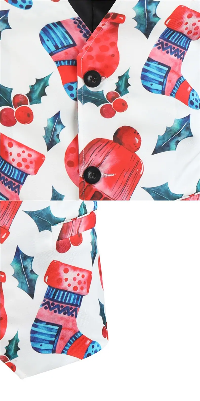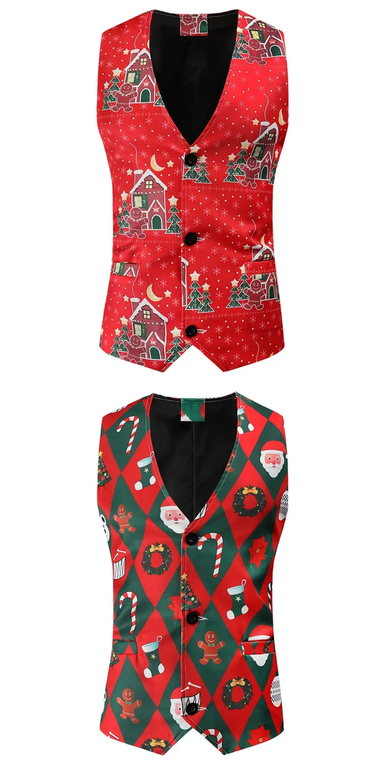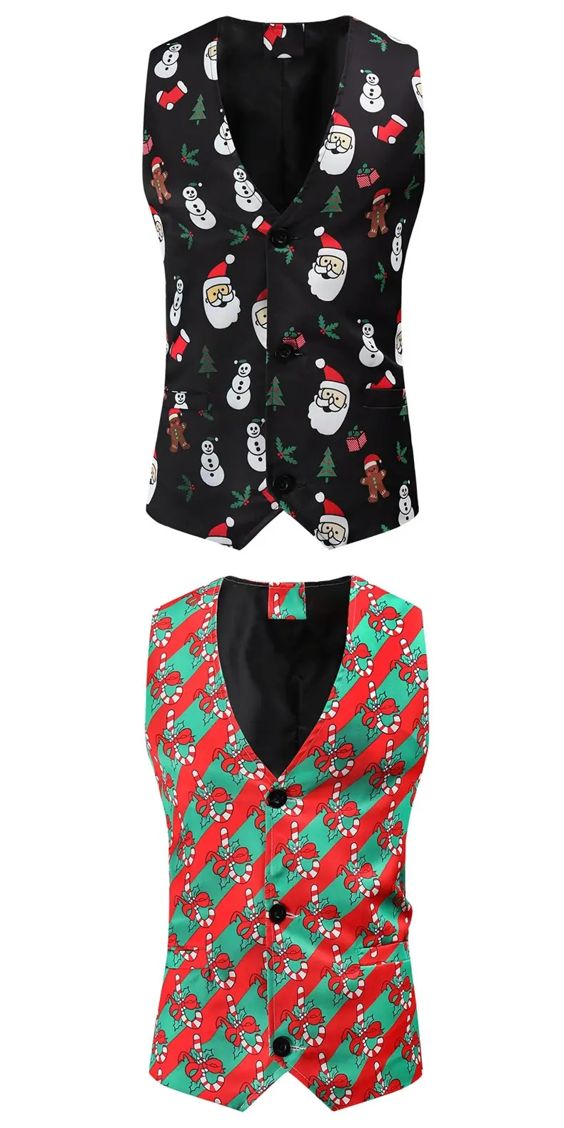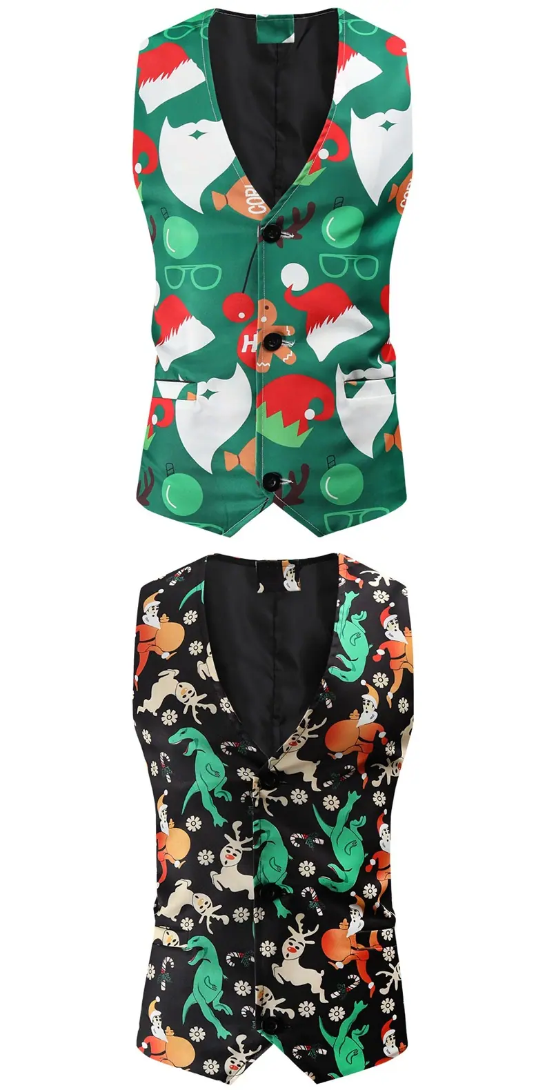 Chaleco de Traje Nuevo para Hombre 2021 Estampado Navideño Chaleco Casual Algodón de Pierna Recta Ajustado para Hombre