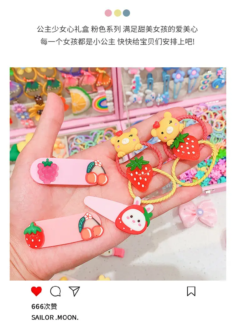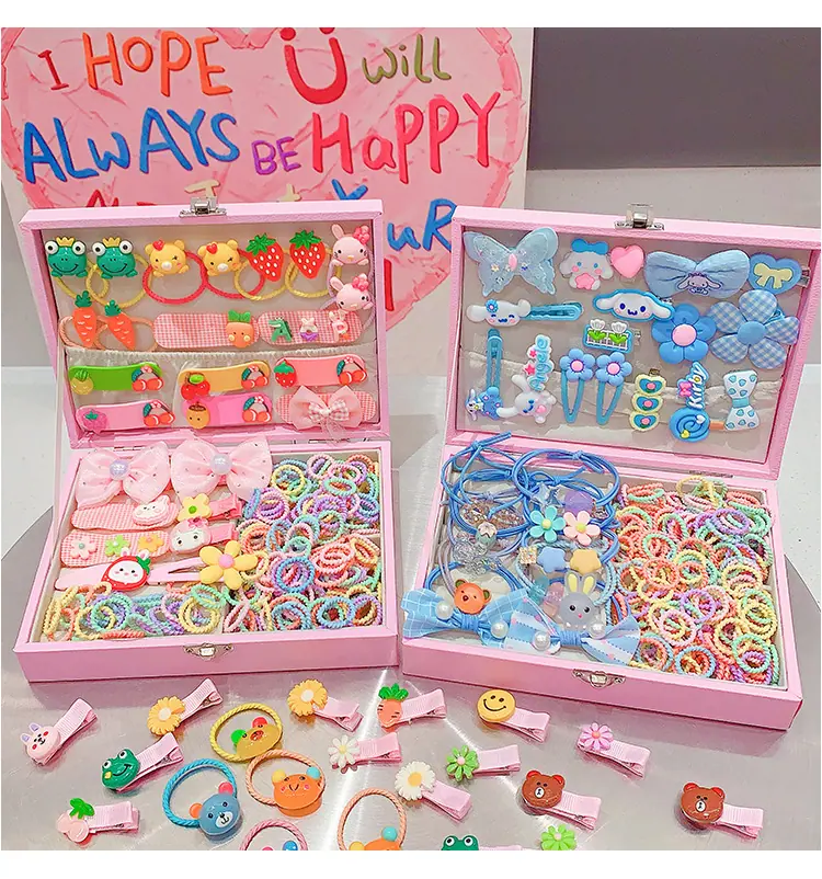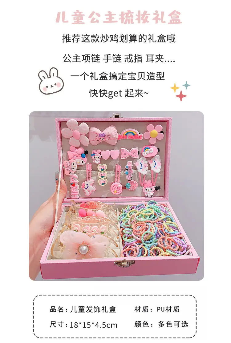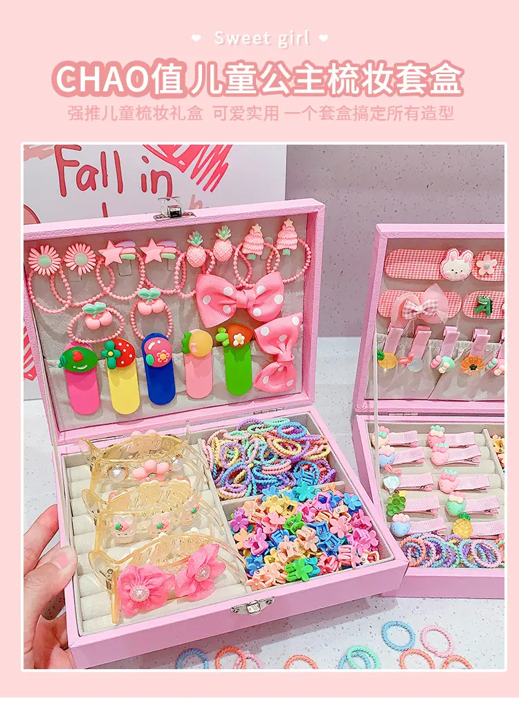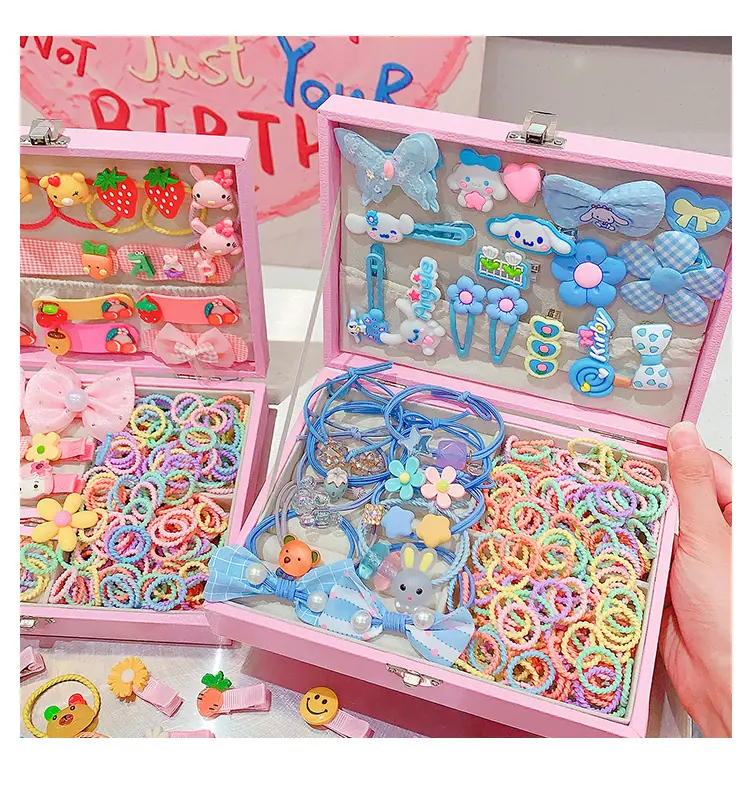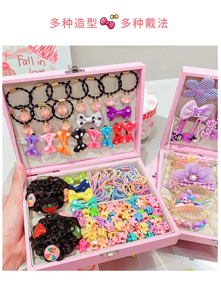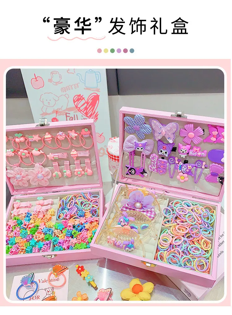 Set de accesorios para el cabello para niños caja de regalo niñas princesa niña pequeña joyería cumpleaños horquilla horquilla banda de goma para bebé tocado