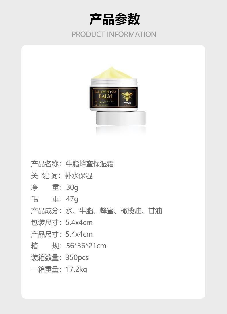 Crema Hidratante Wiyun Grasa de Vaca Miel Piel Facial Suave y Lisa Hidratante Nutritiva Refrescante Crema Hidratante para el Cuidado de la Piel